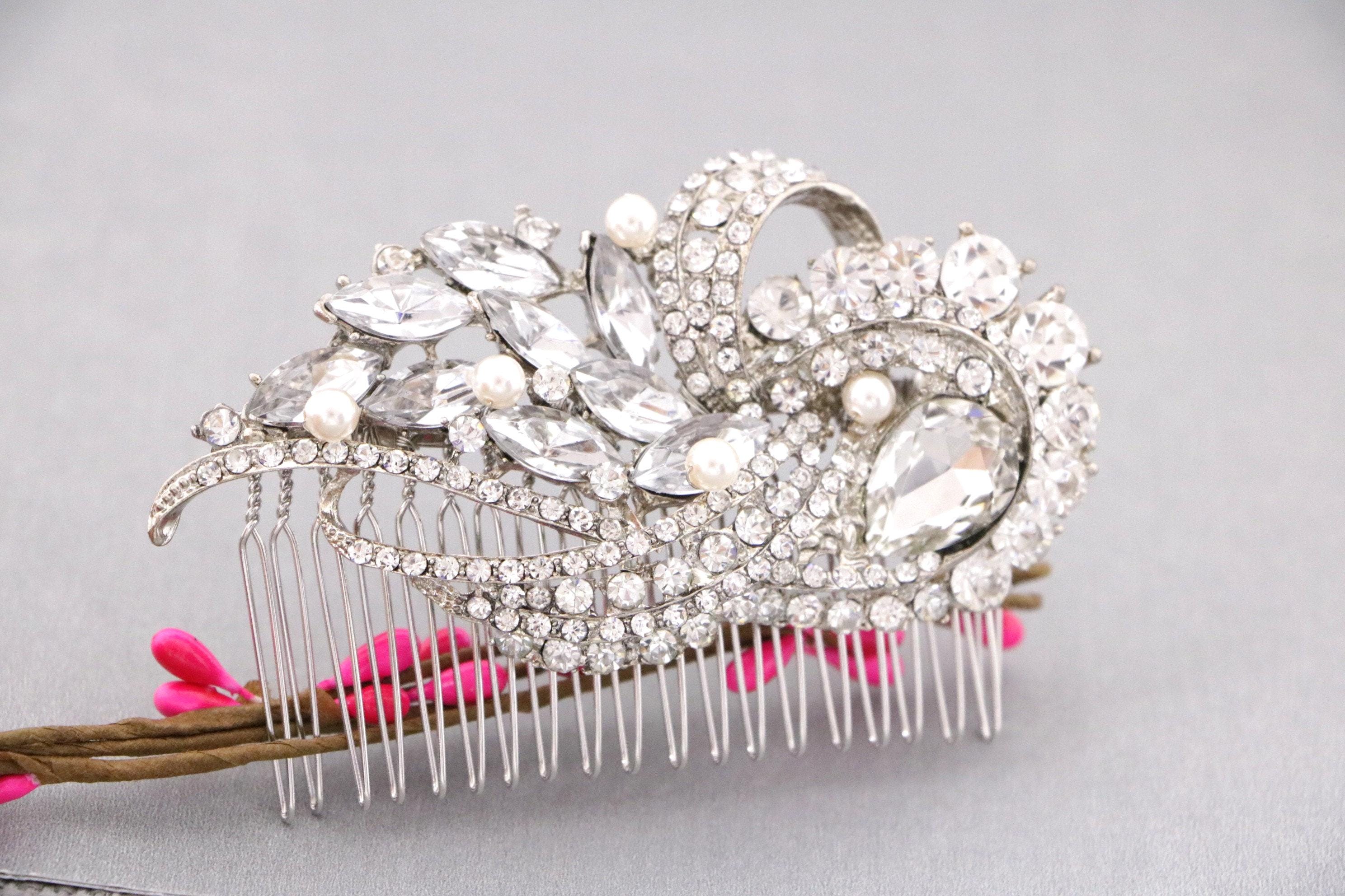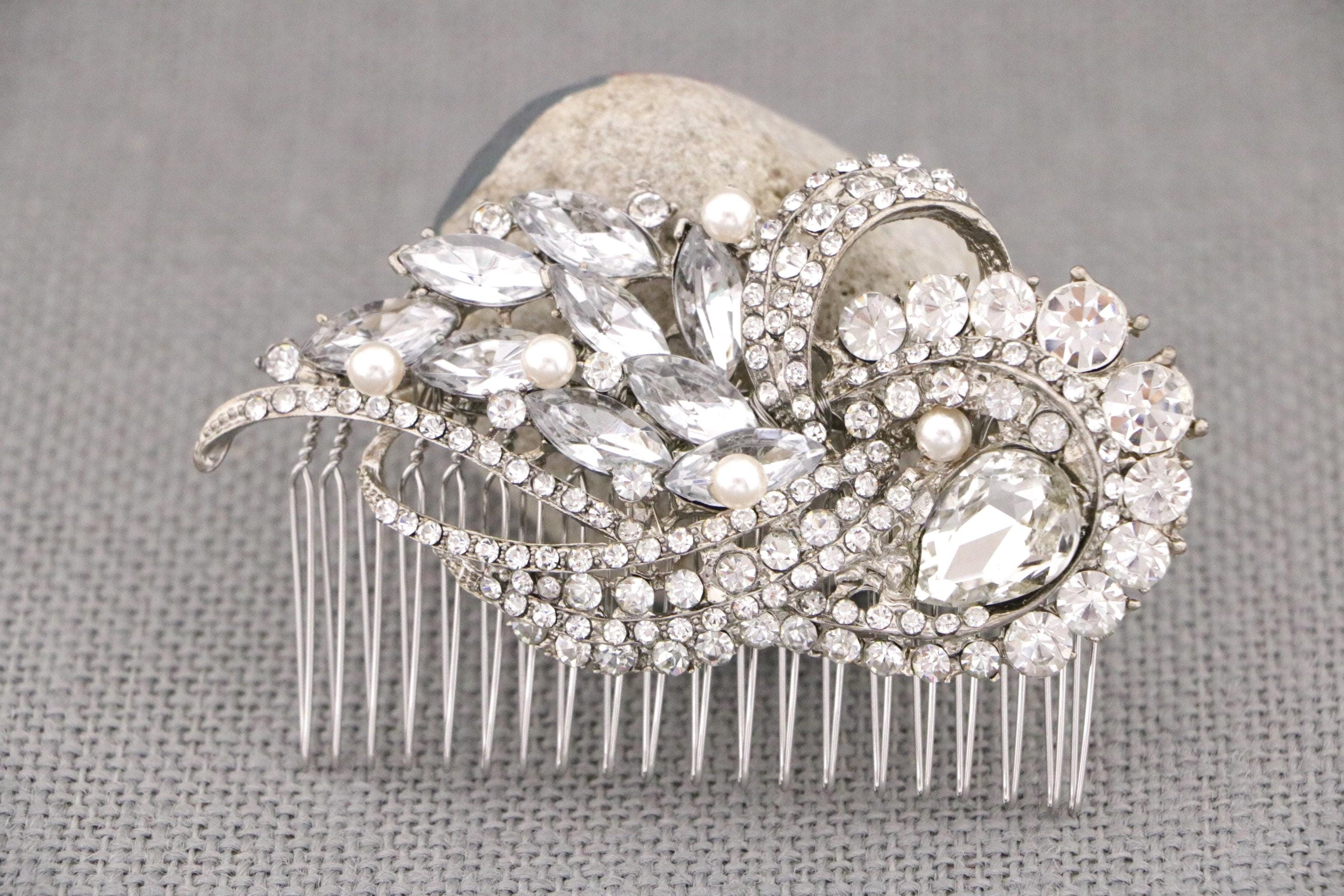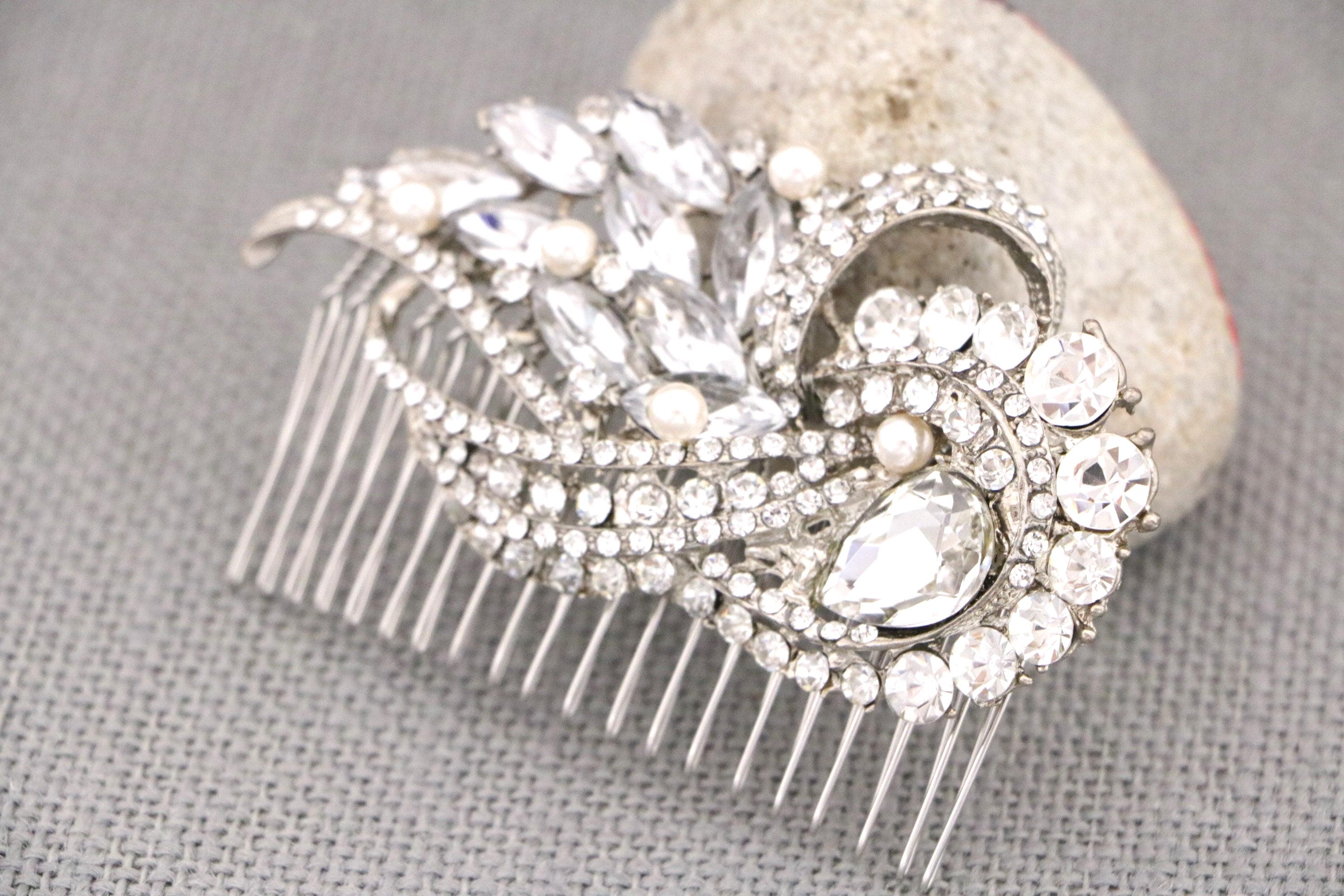 Pearl Bridal Hair Comb, Vintage style Wedding Hair Comb, Bridal Hair Accessory, Rhinestone Hair Comb, Bride Headpiece, Bridal Hair Piece