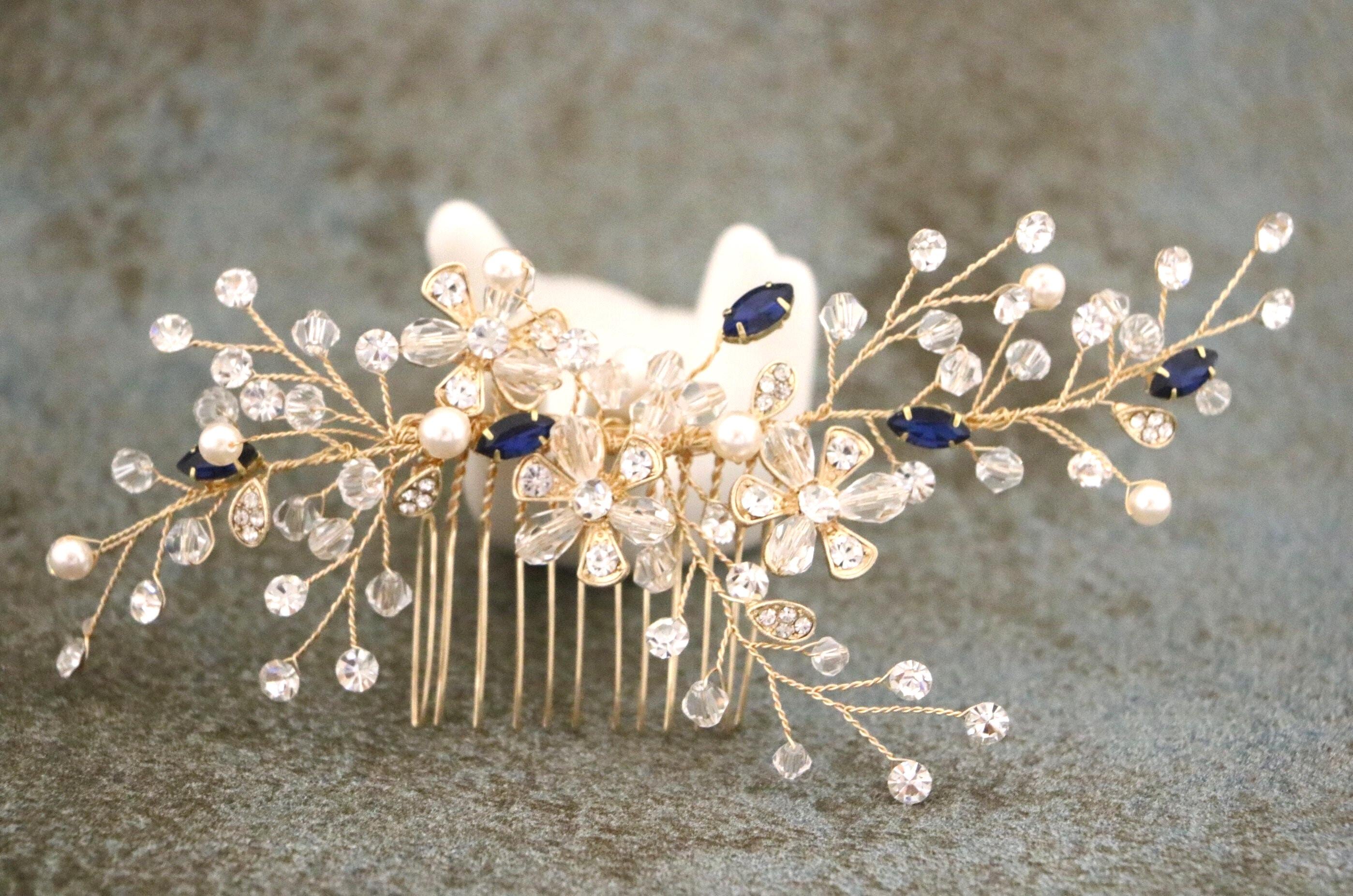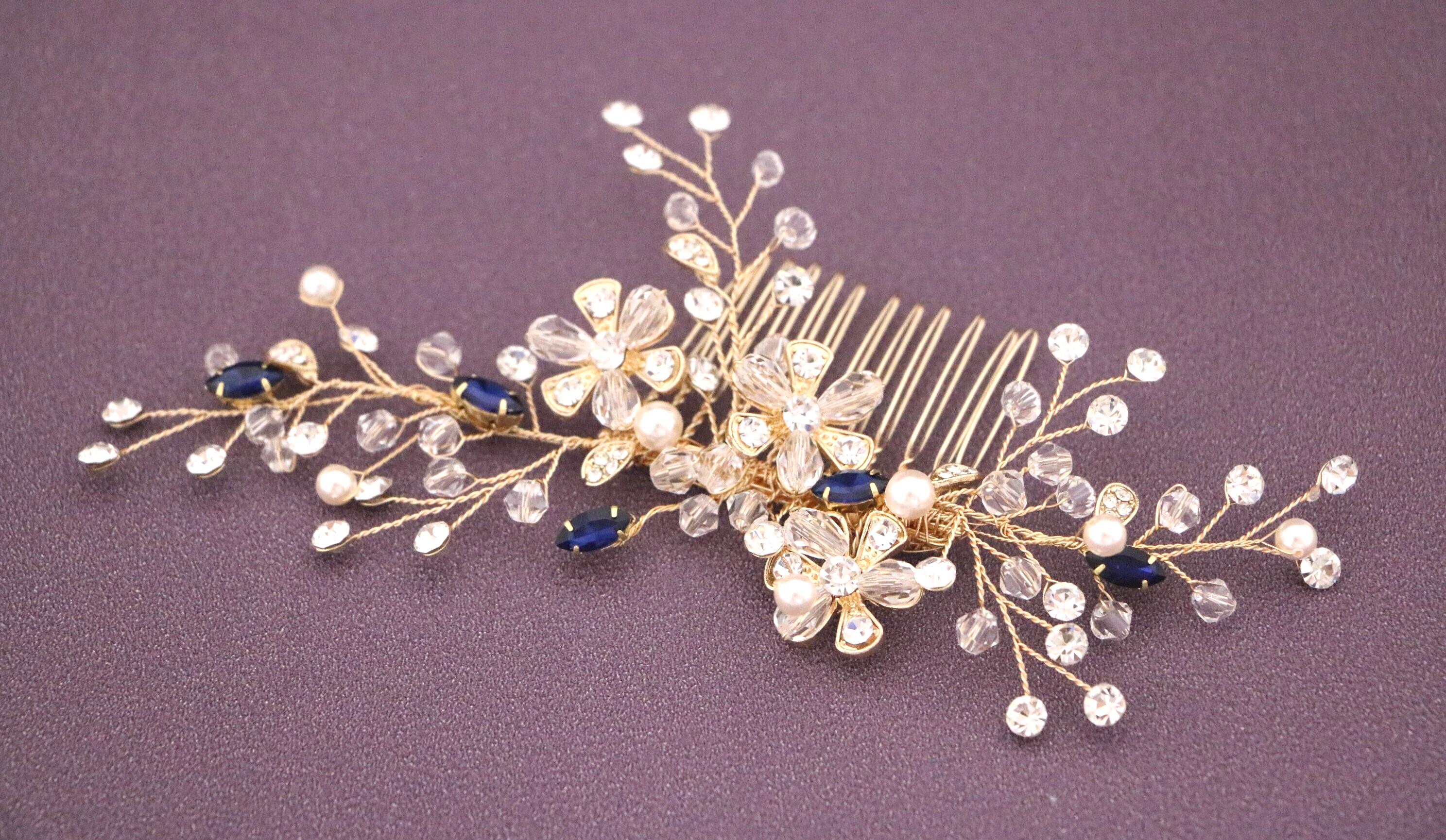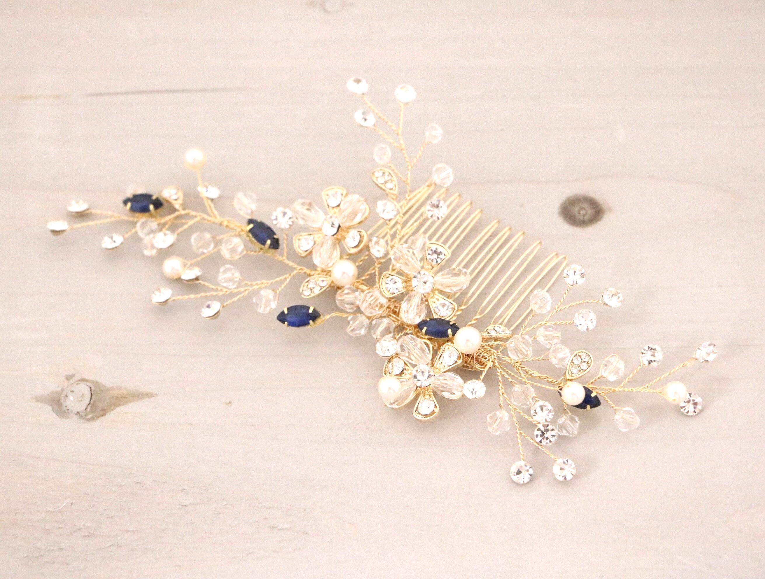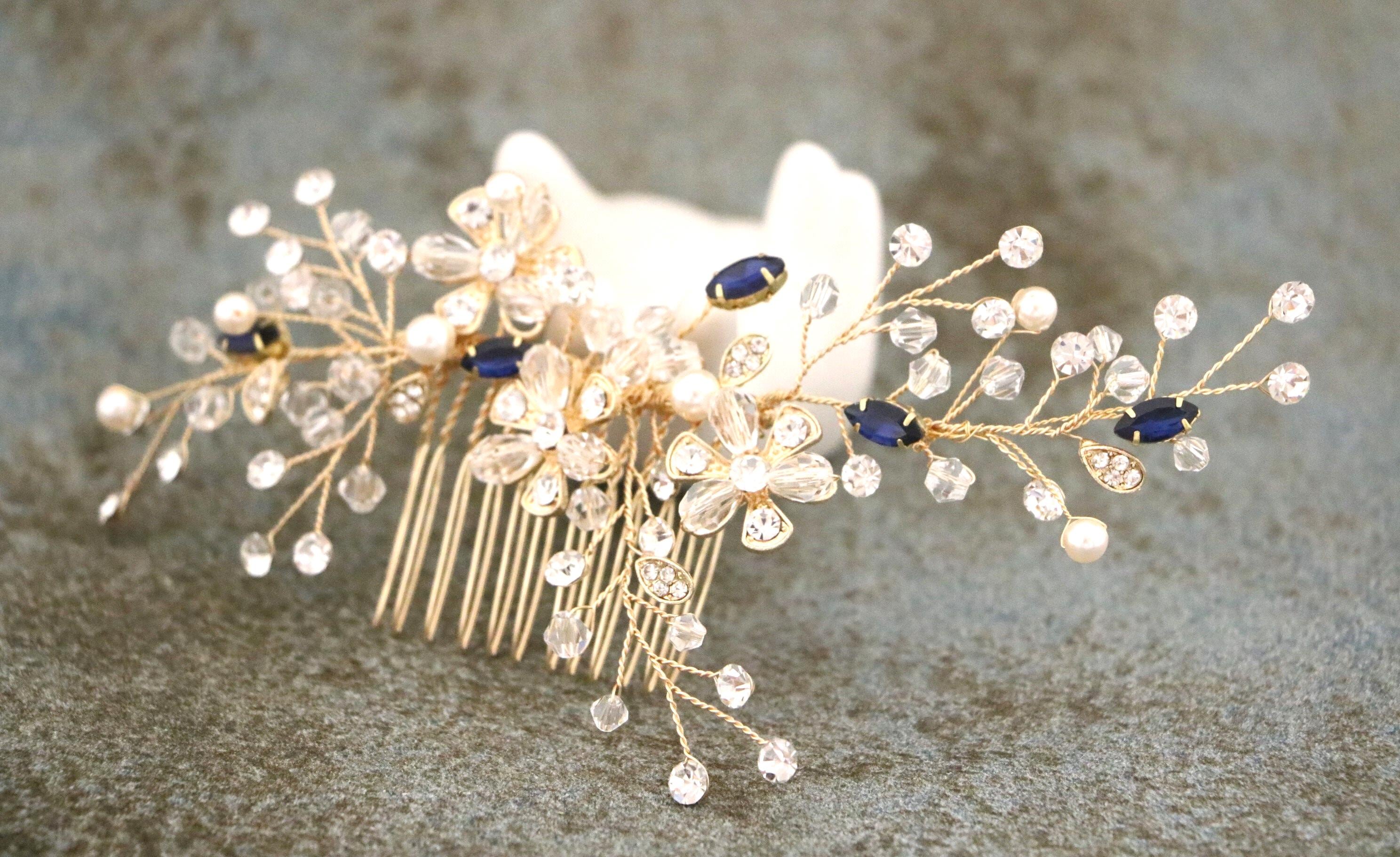 Pearl & Crystal Bridal Comb Floral Wedding Crystal Comb Bridal Headpiece Gold Wedding Comb Silver Bridal Comb Rose Gold Comb Crystal vine comb Navy blue Wedding hair comb Wedding hair jewelry headpiece Side bridal comb Rhinestone hair bling