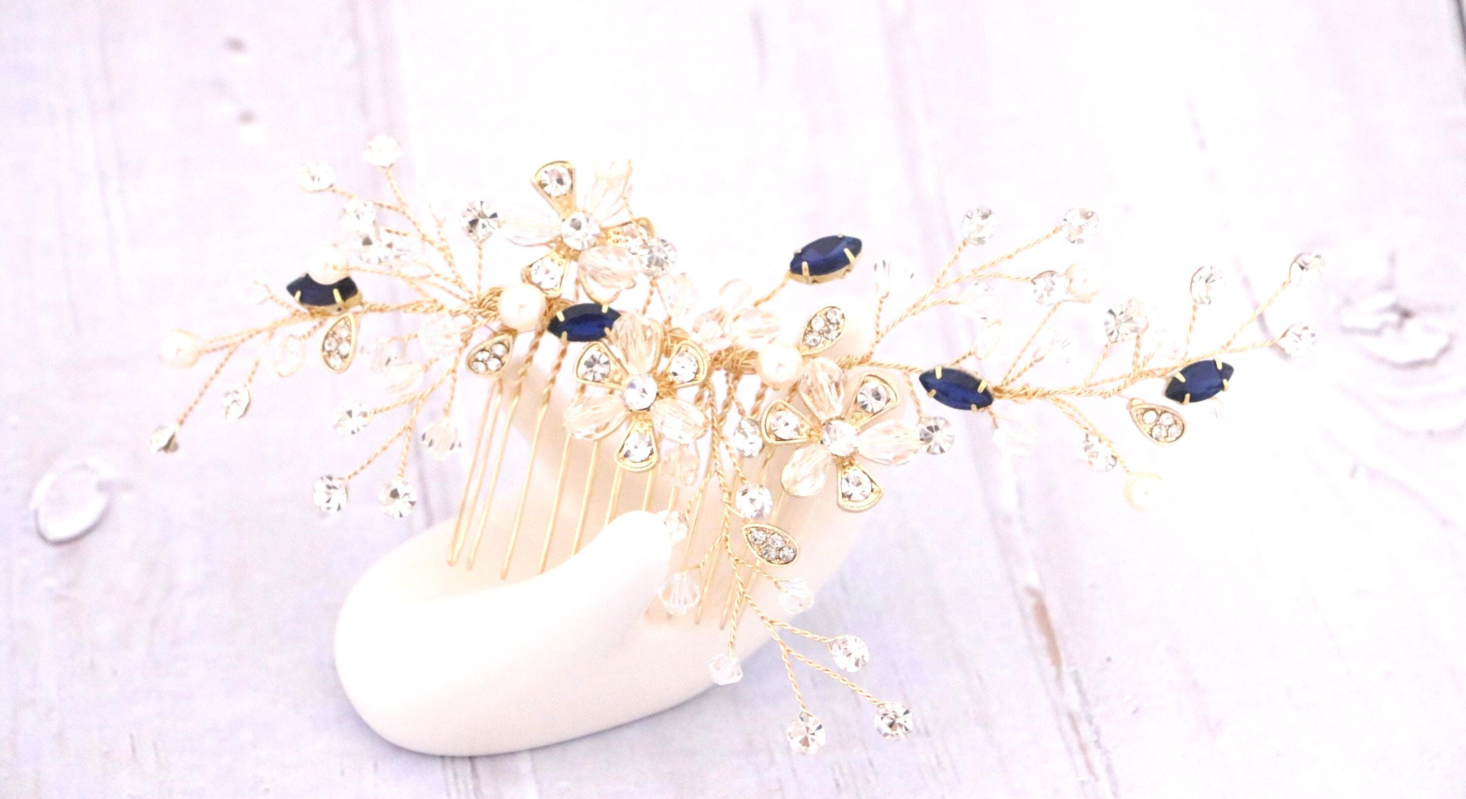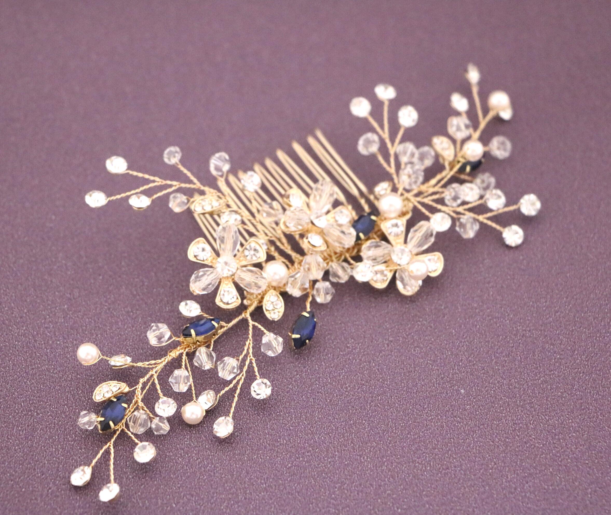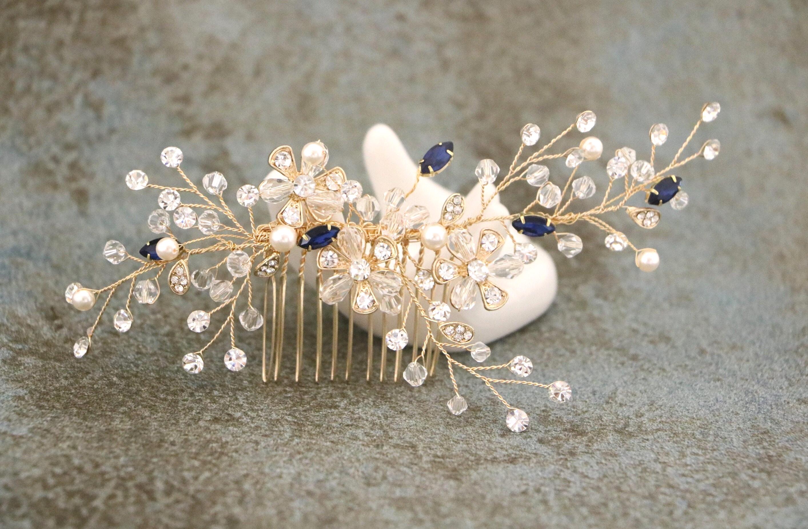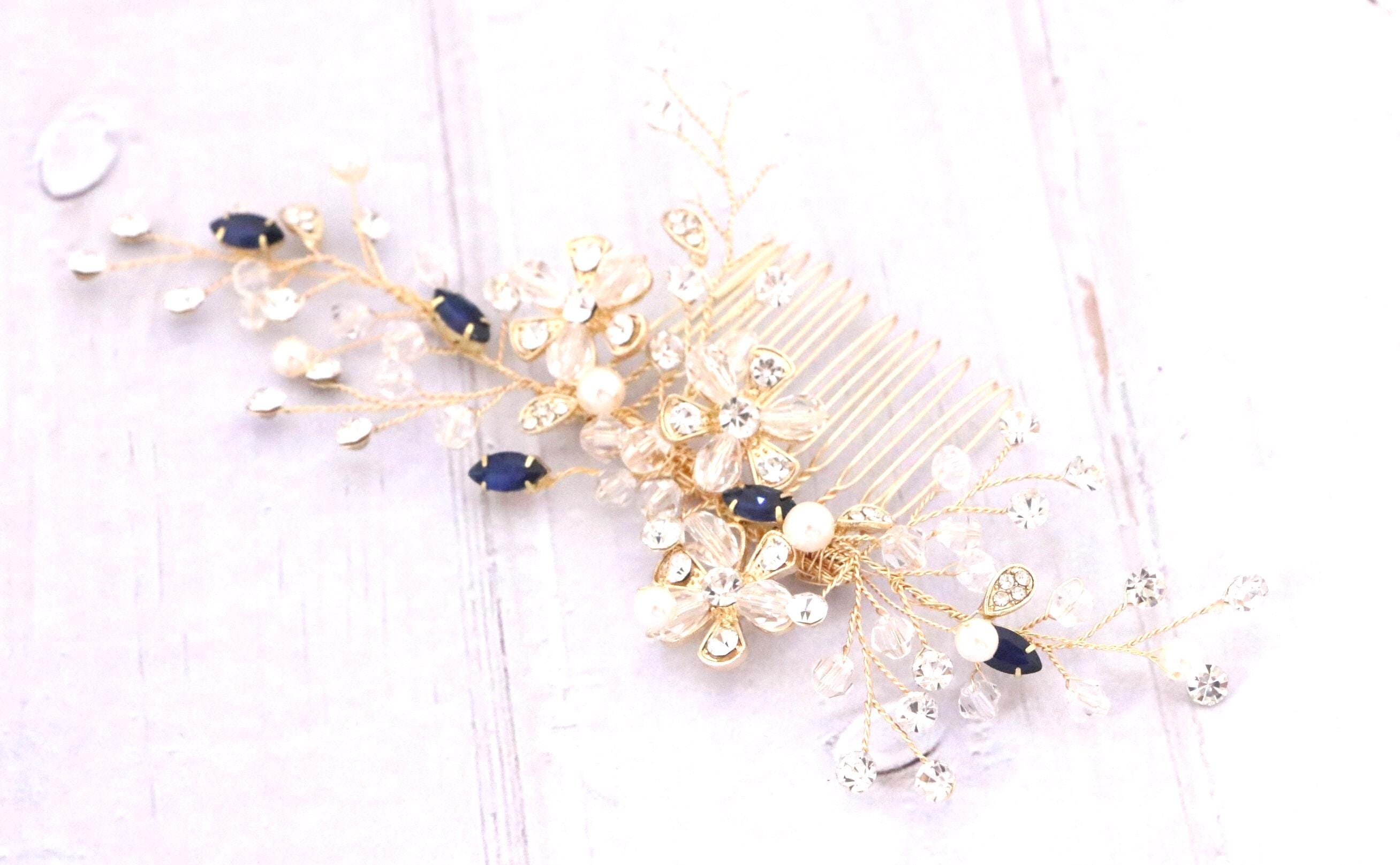 Pearl & Crystal Bridal Comb Floral Wedding Crystal Comb Bridal Headpiece Gold Wedding Comb Silver Bridal Comb Rose Gold Comb Crystal vine comb Navy blue Wedding hair comb Wedding hair jewelry headpiece Side bridal comb Rhinestone hair bling