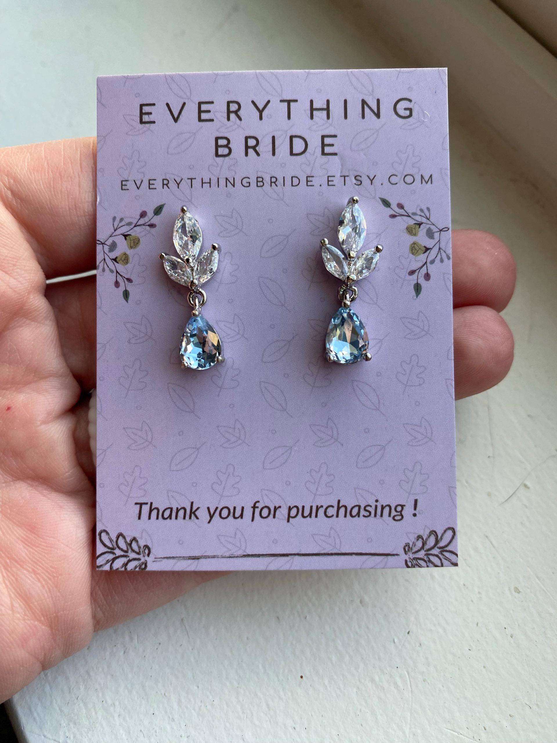 Blue Sapphire Wedding Crystal Earrings Bridal Cubic Zirconia Silver Drop Earrings Wedding Teardrop Rhodium Earrings Sapphire Bridal Earrings