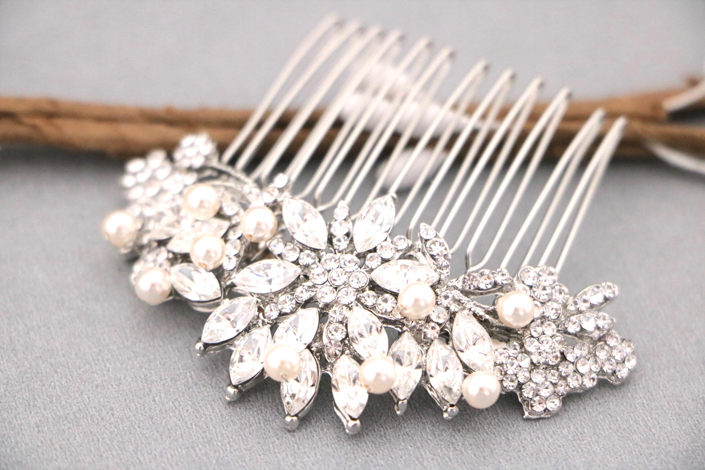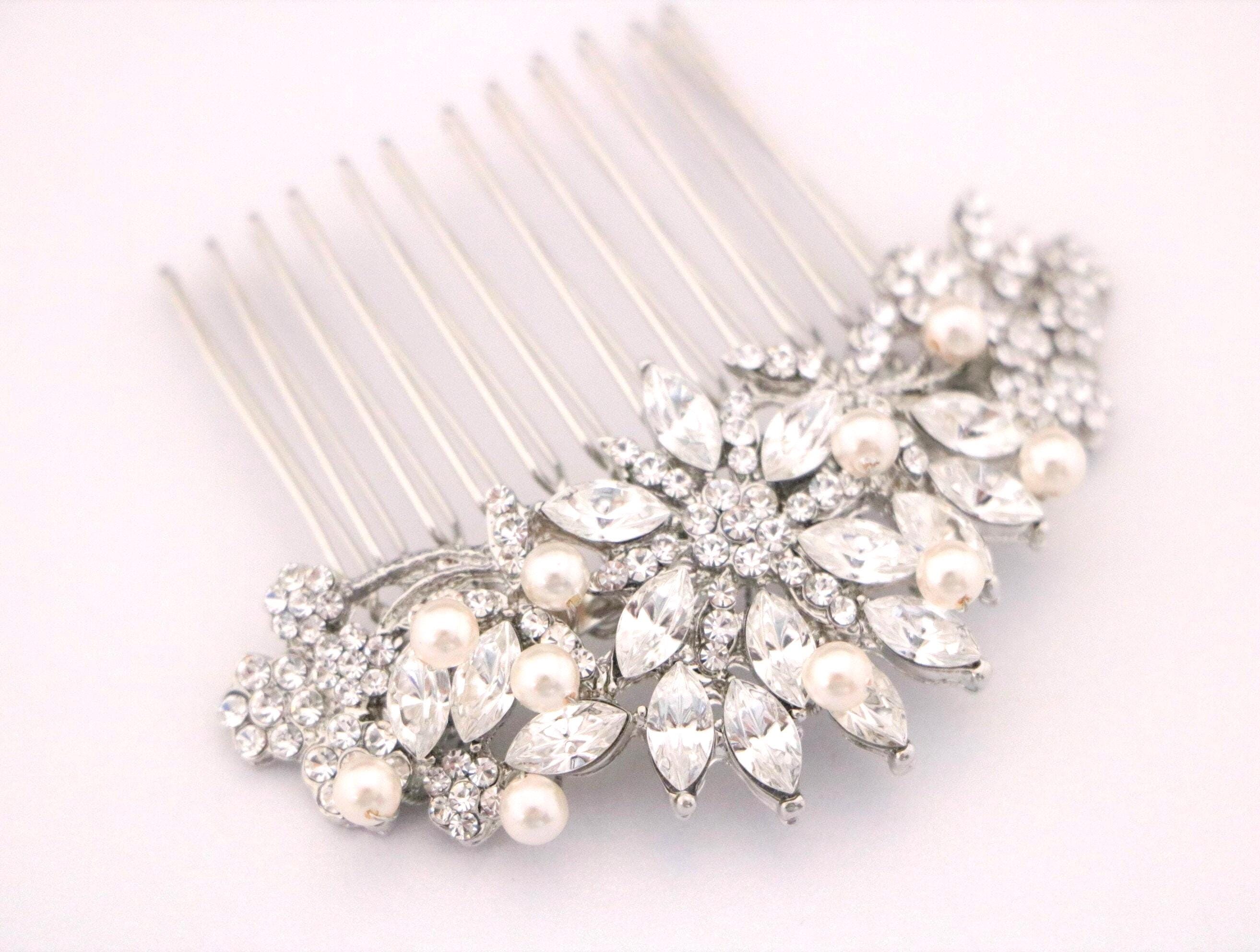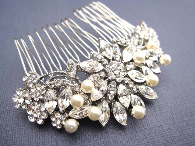 This sparkle rhinestone hair comb features a very beautiful vintage style rhinestone piece and swarovski ivory pearls.