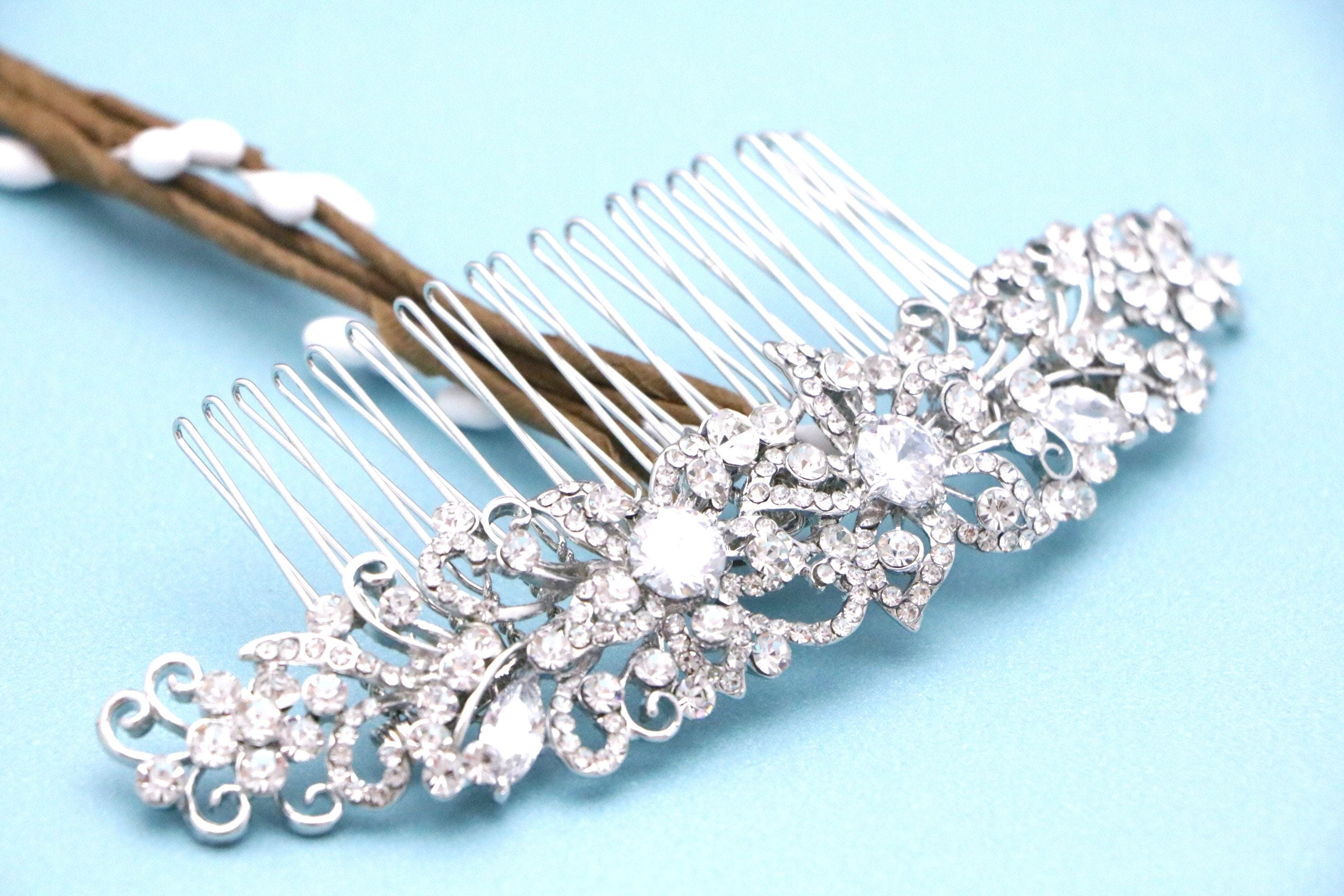 This sparkle rhinestone hair comb features a very beautiful vintage style rhinestone piece. The rhinestone part measures approximately 5 X 1 inches.