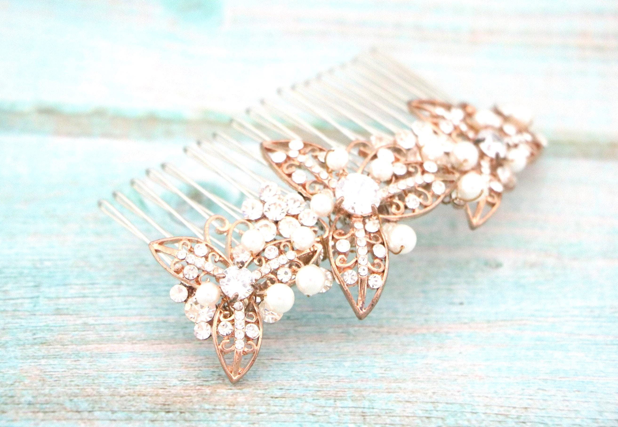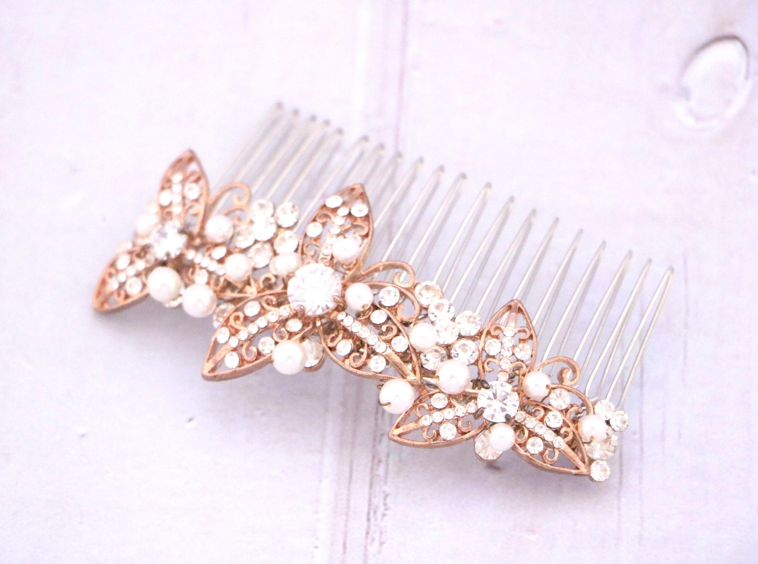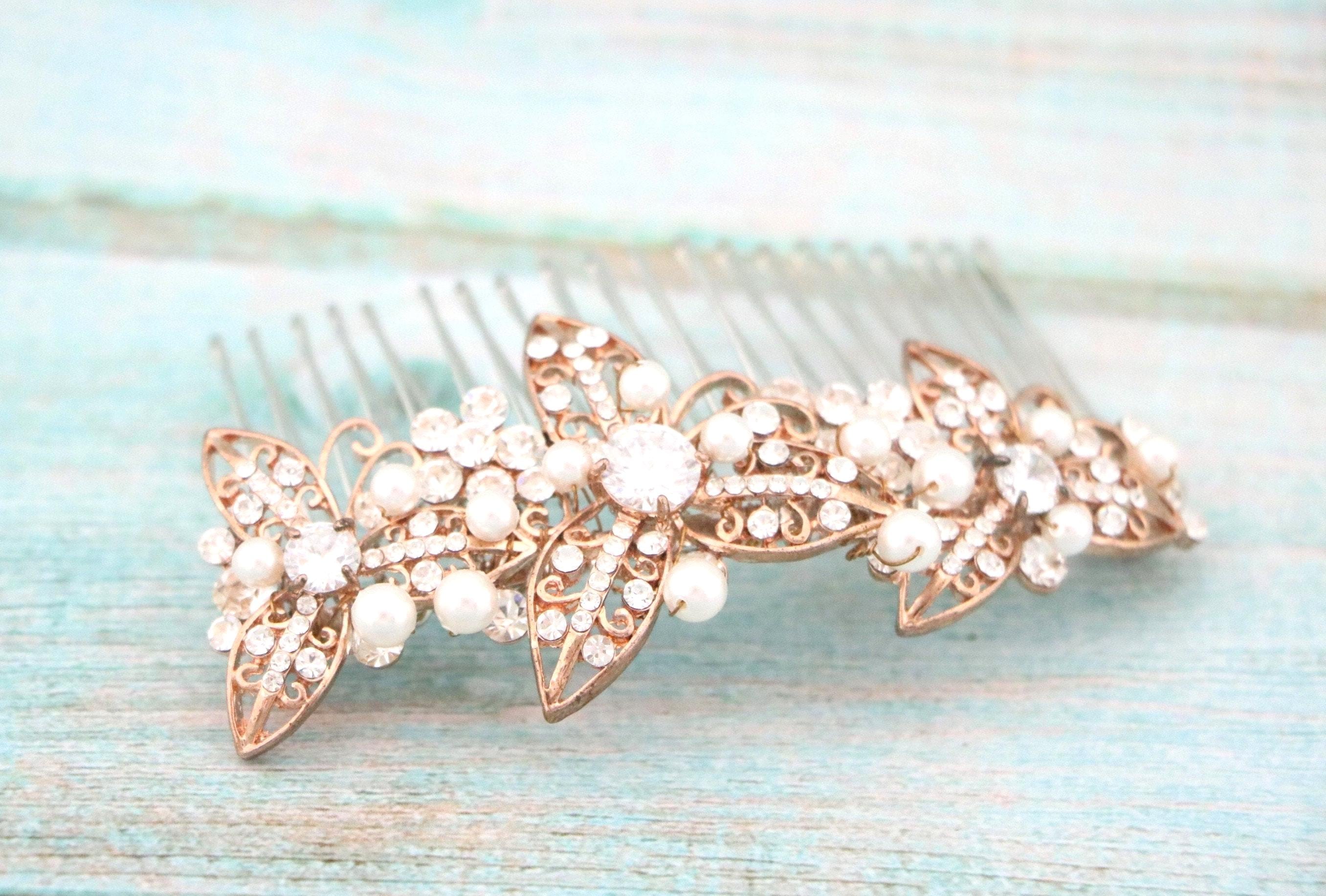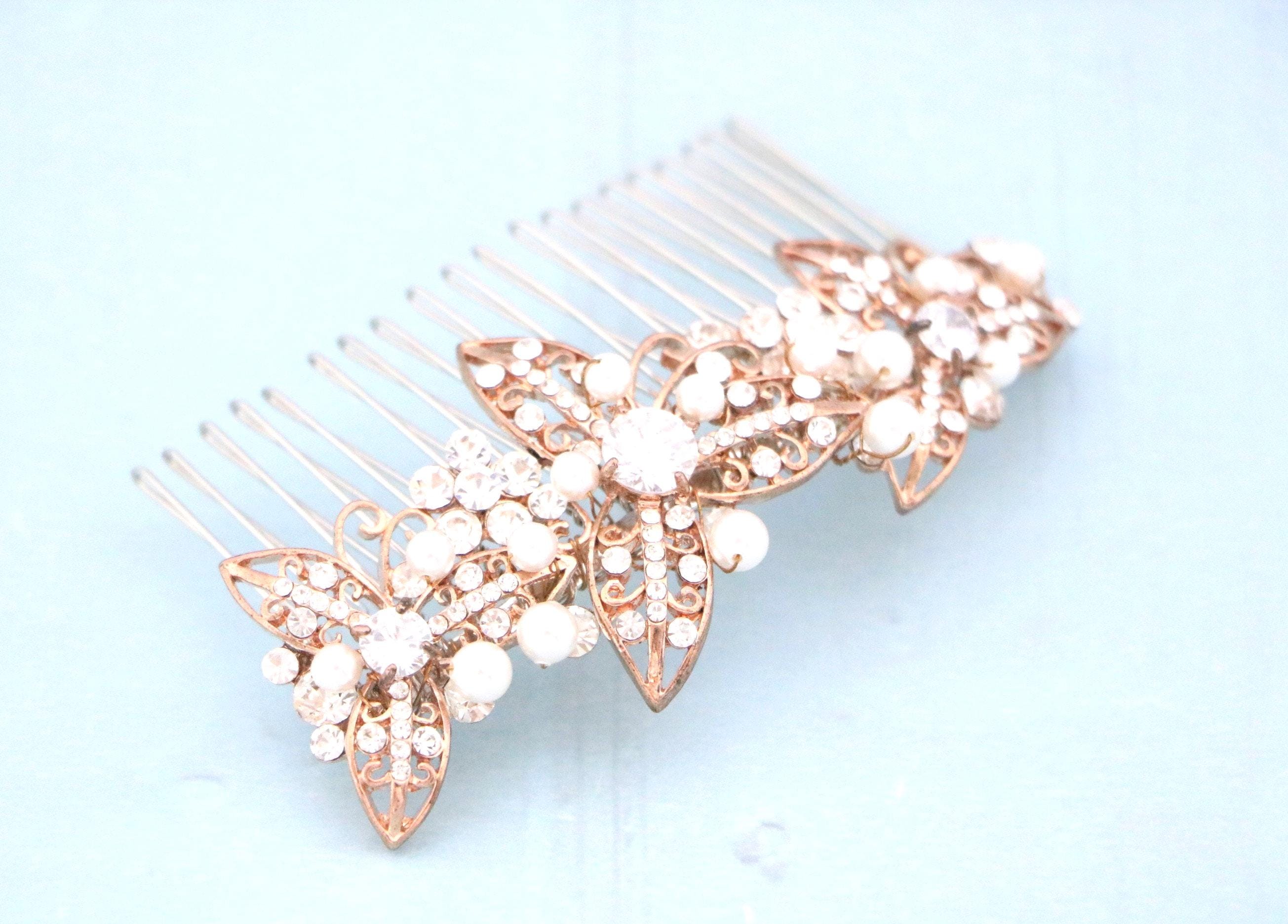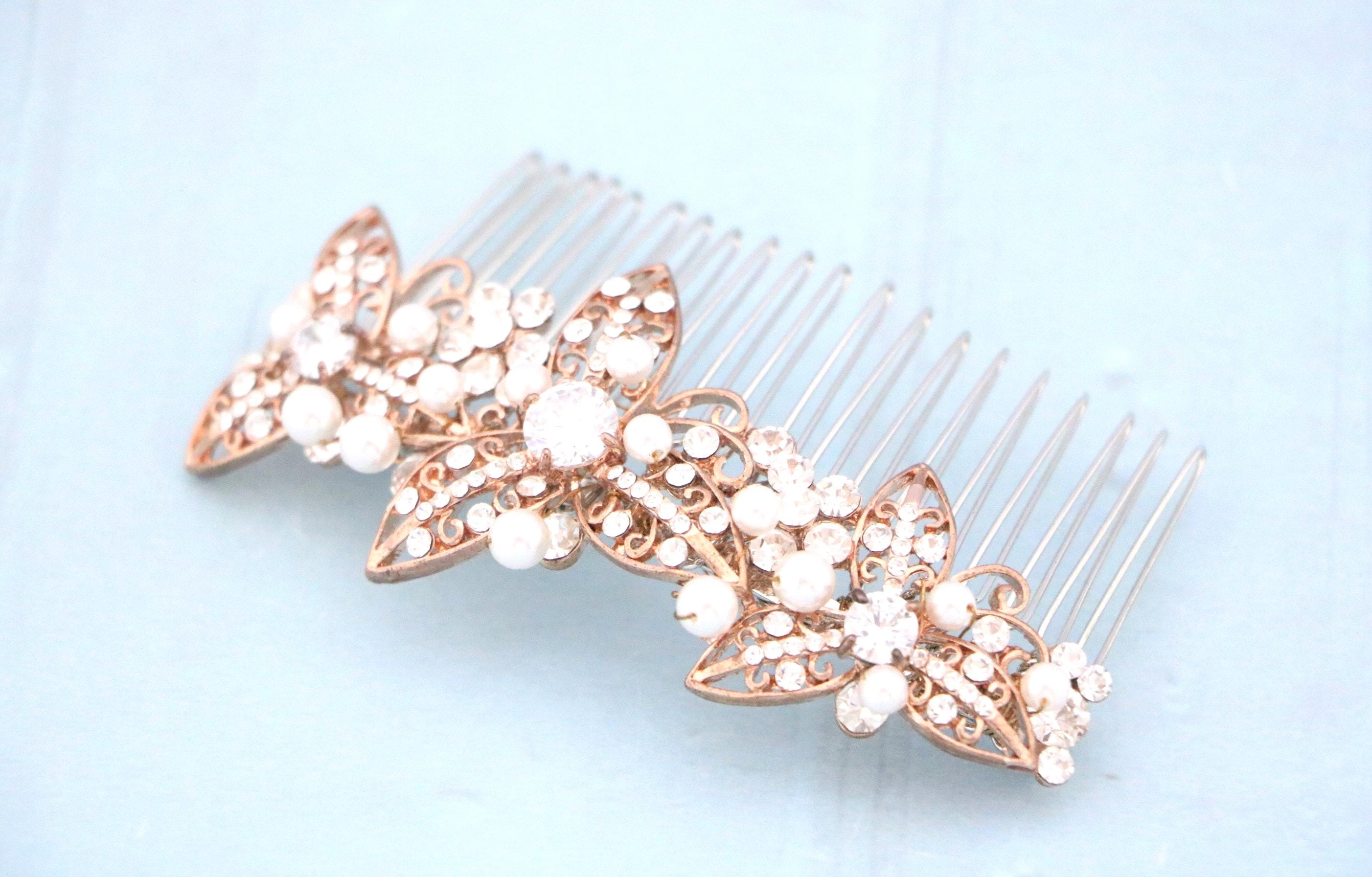 Large Rose Gold Crystal Comb, wedding hair comb, crystal rhinestone hair comb wedding headpieces, Large Rose Gold Crystal Comb