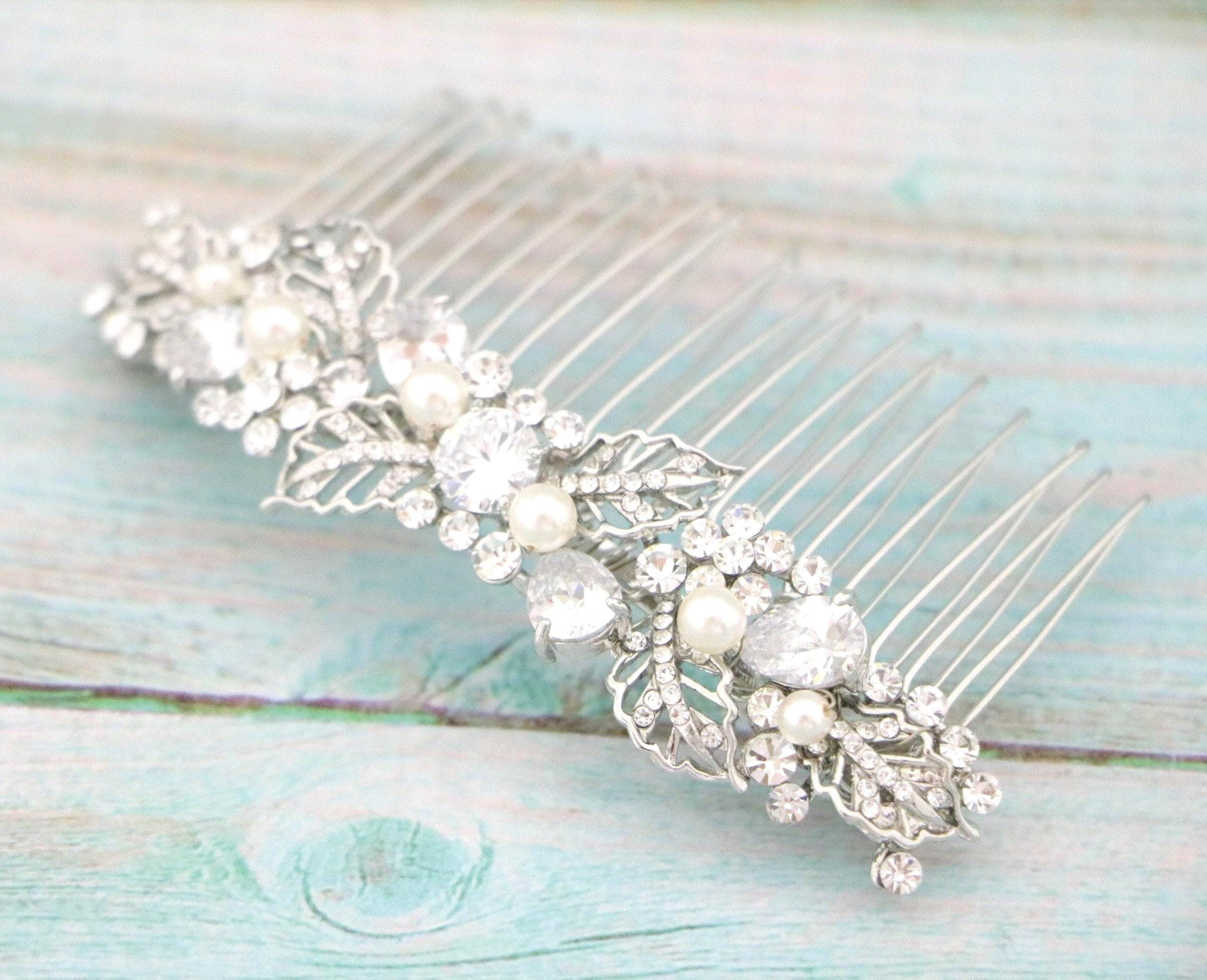 Freshwater Pearl Bridal Comb, Silver Wedding Comb, Freshwater Pearl Bridal Hair Comb, Pearl Wedding Hair Comb, Crystal & Pearl Comb