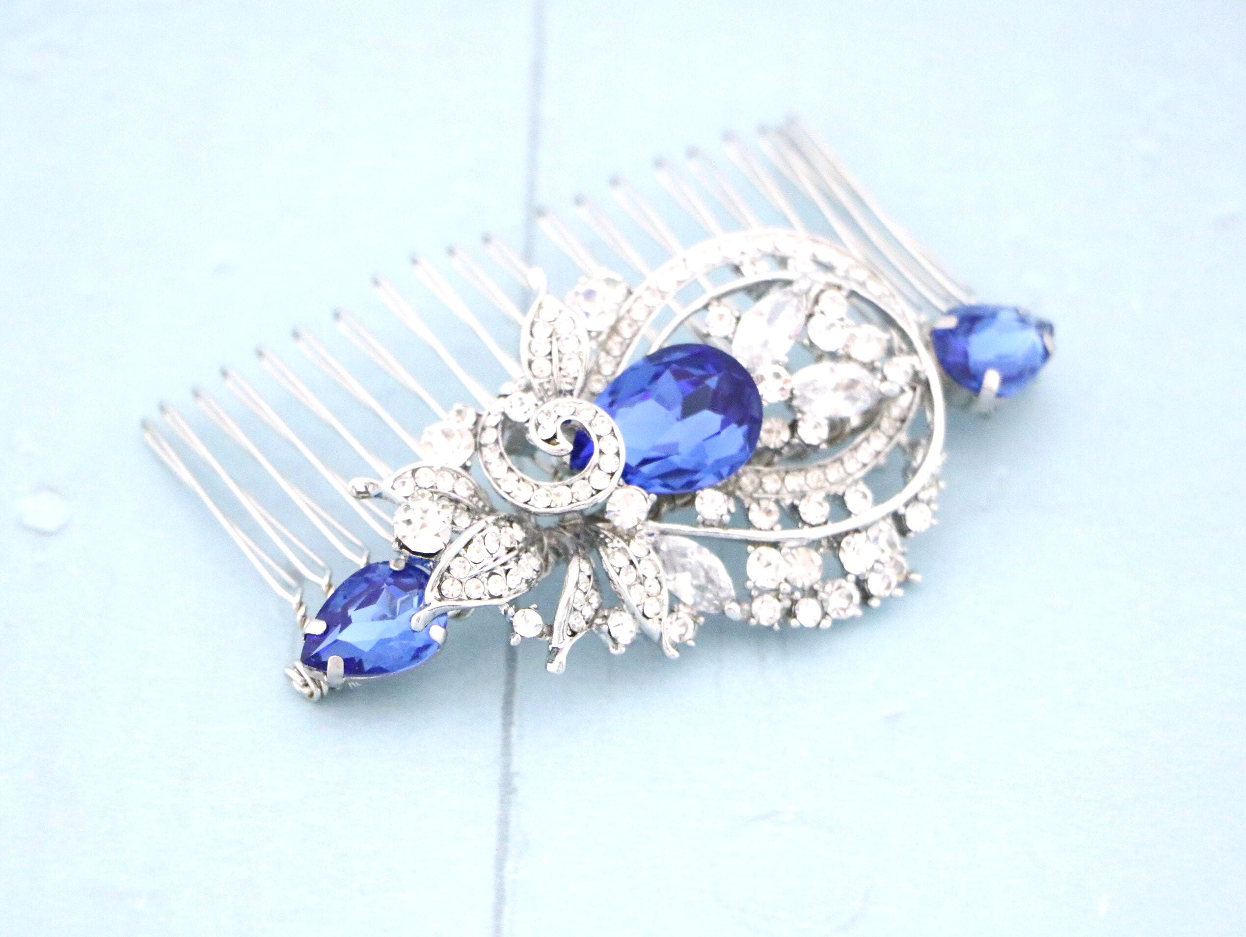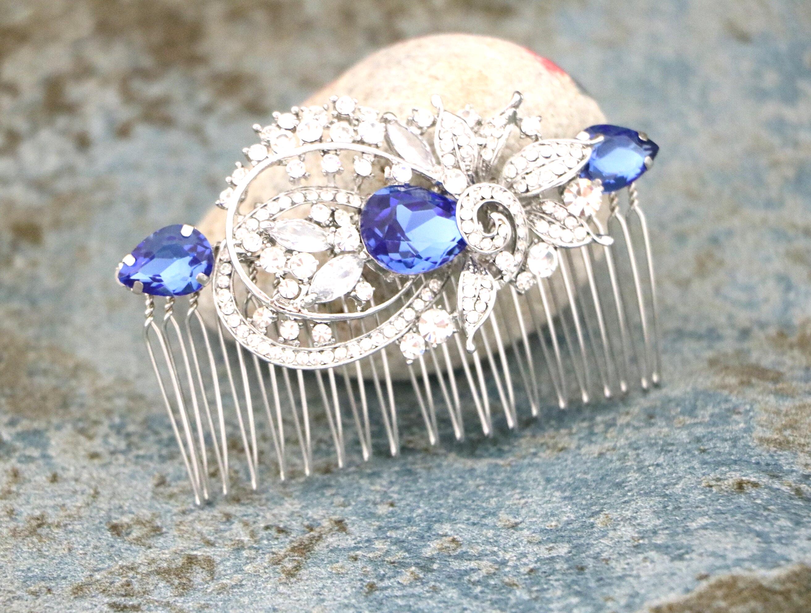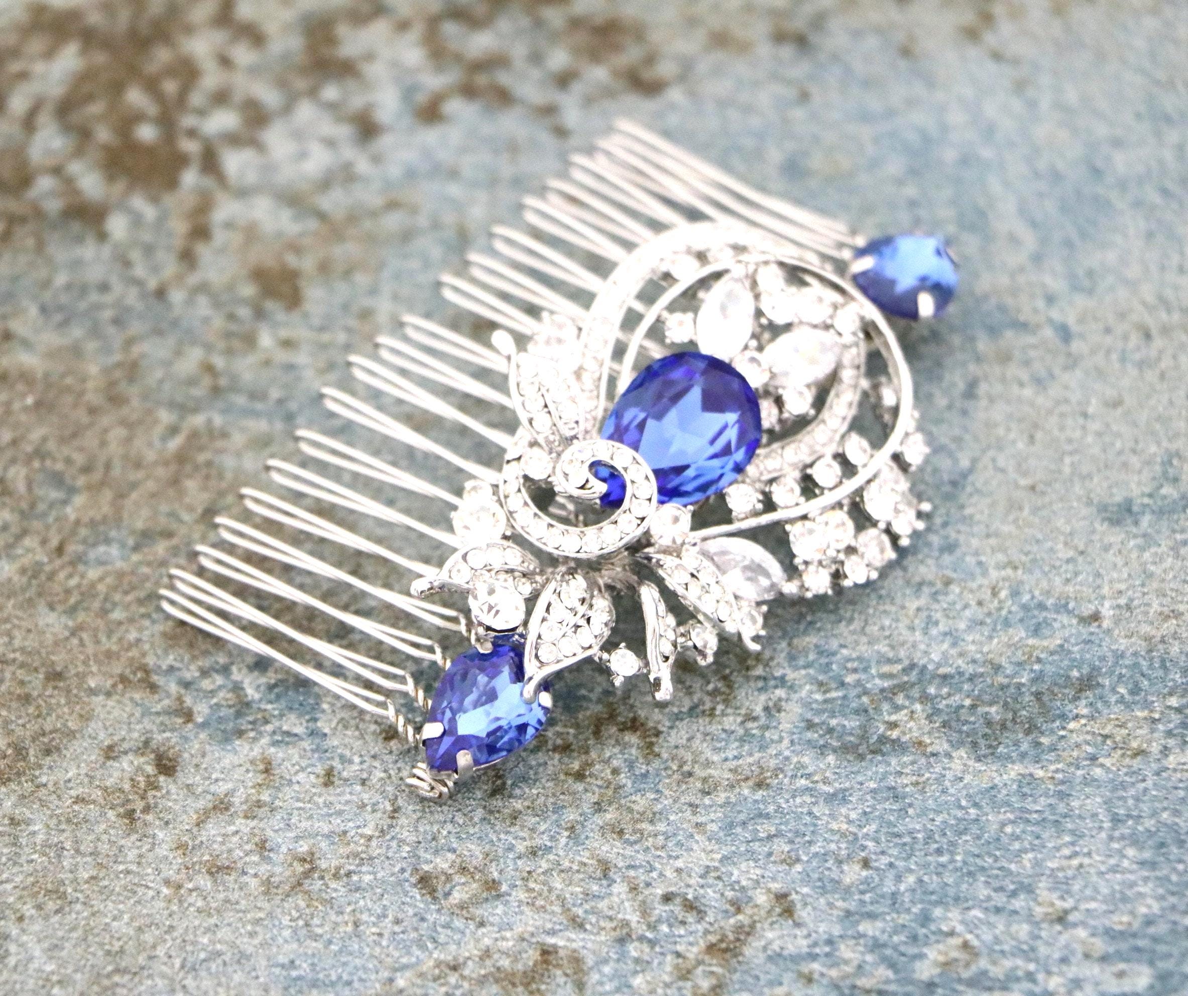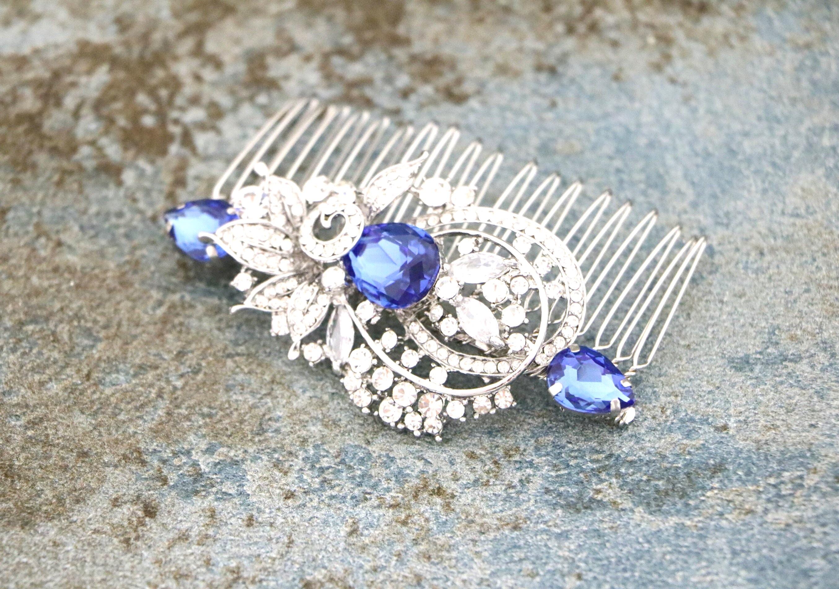 Blue Sapphire Wedding Comb, Rhinestone Comb, Bridal Comb Crystal, Wedding Crystal Hair Comb, Carla Swarovski Sapphire Blue Wedding Comb