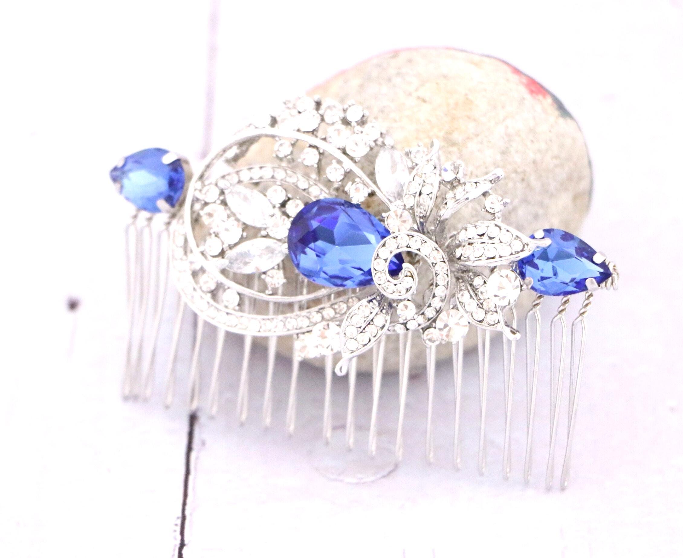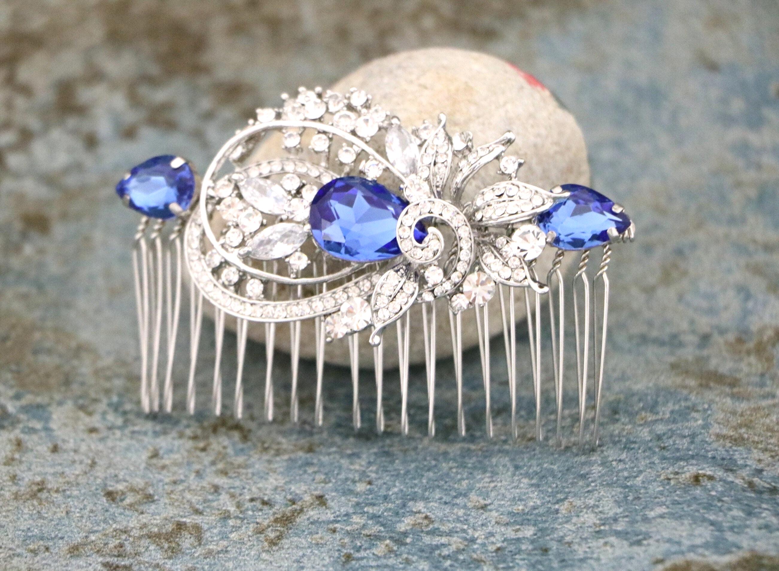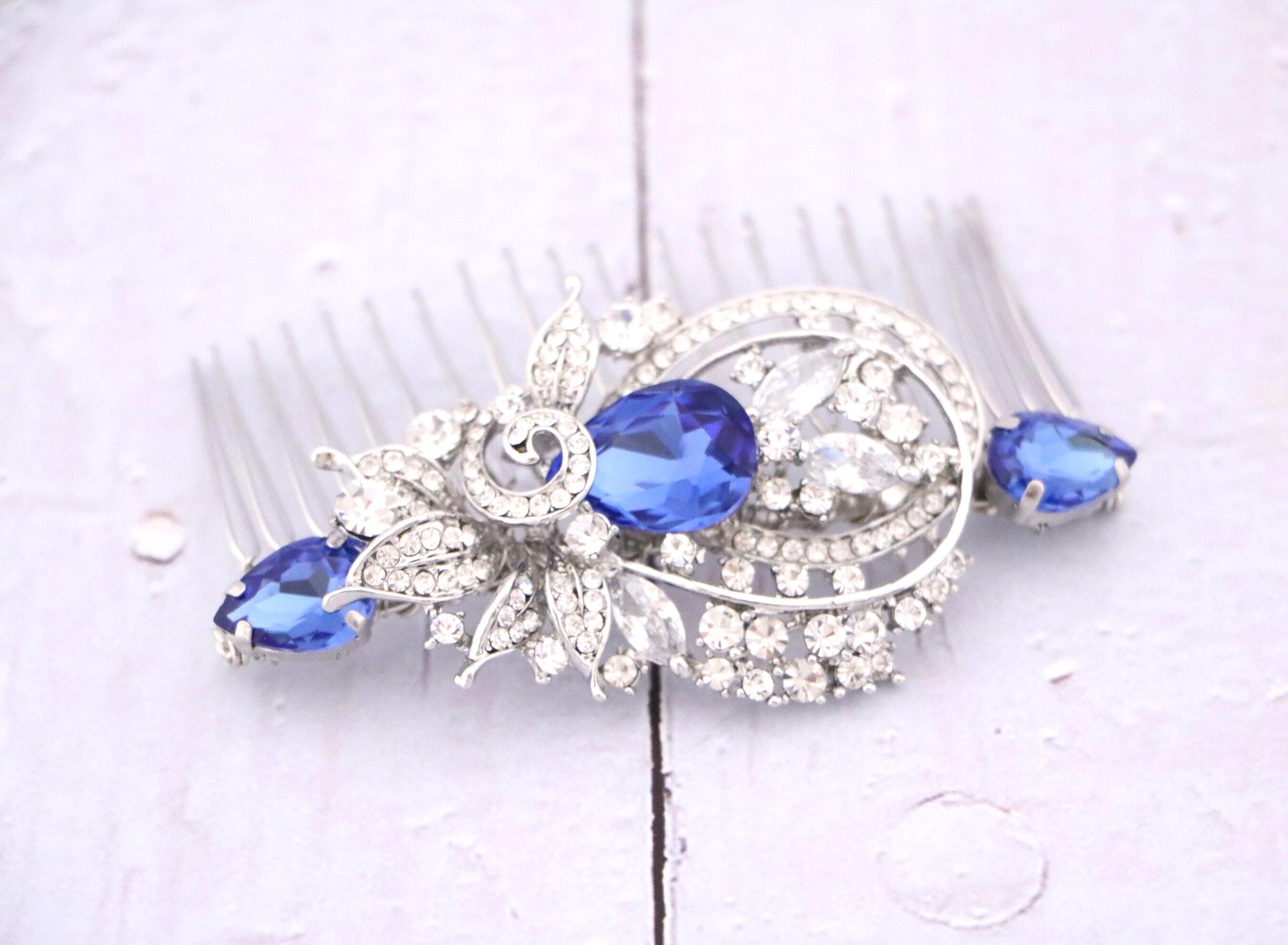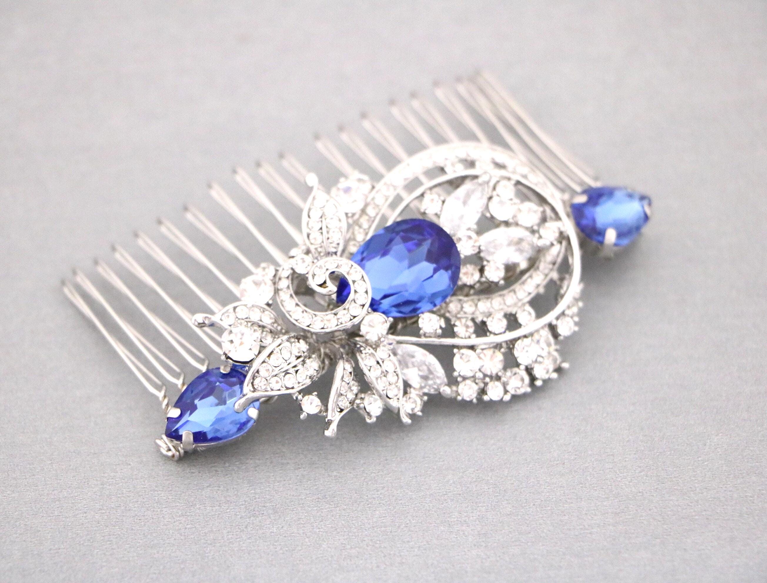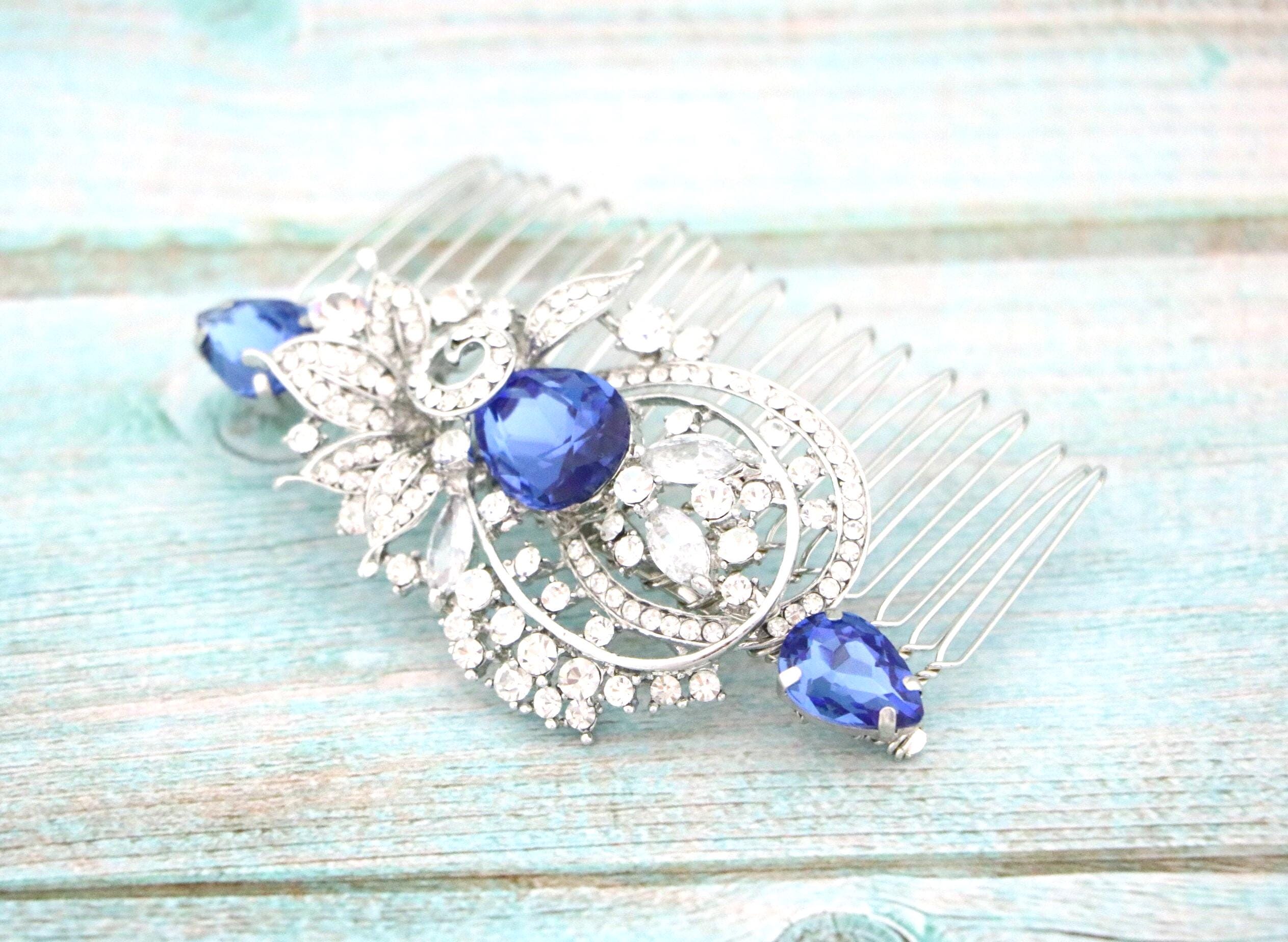 Blue Sapphire Wedding Comb, Rhinestone Comb, Bridal Comb Crystal, Wedding Crystal Hair Comb, Carla Swarovski Sapphire Blue Wedding Comb