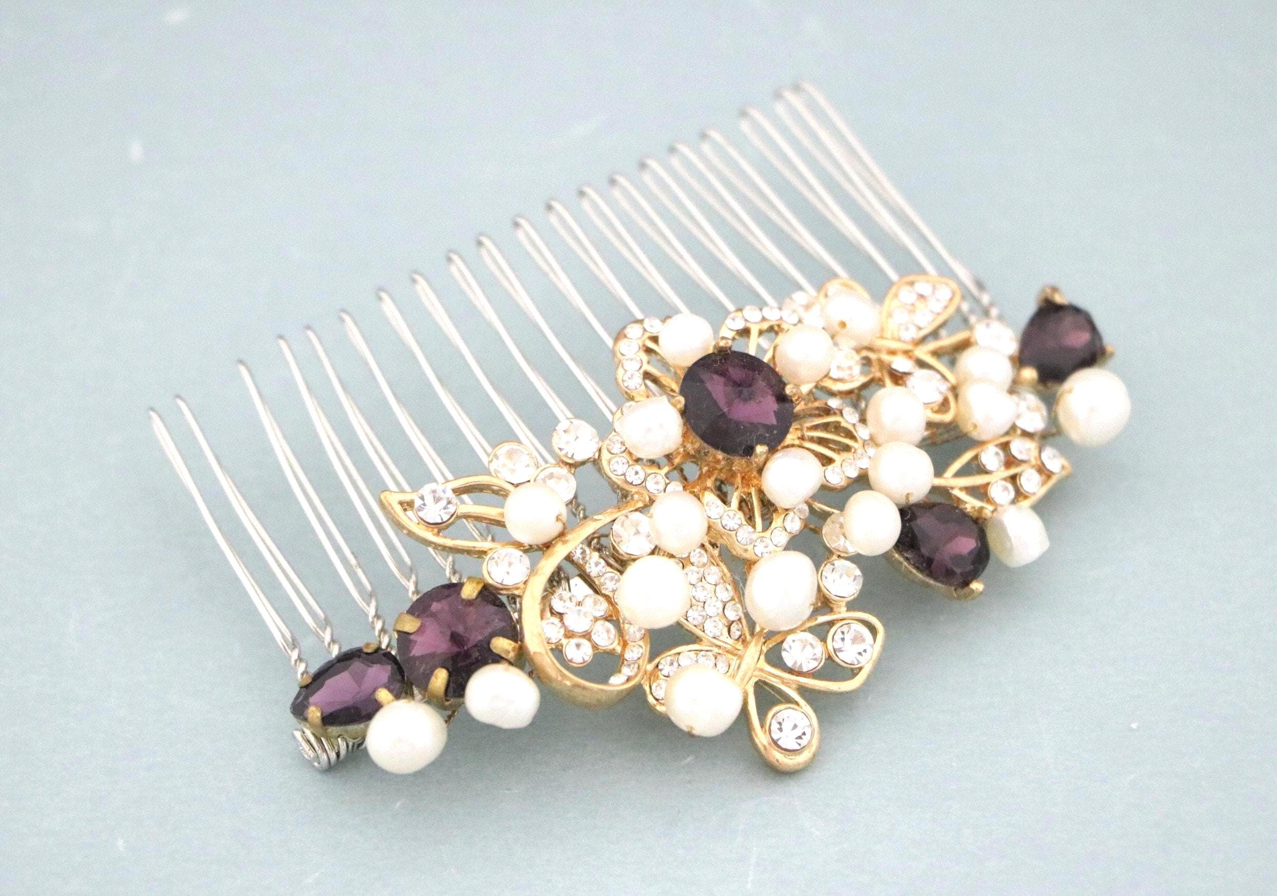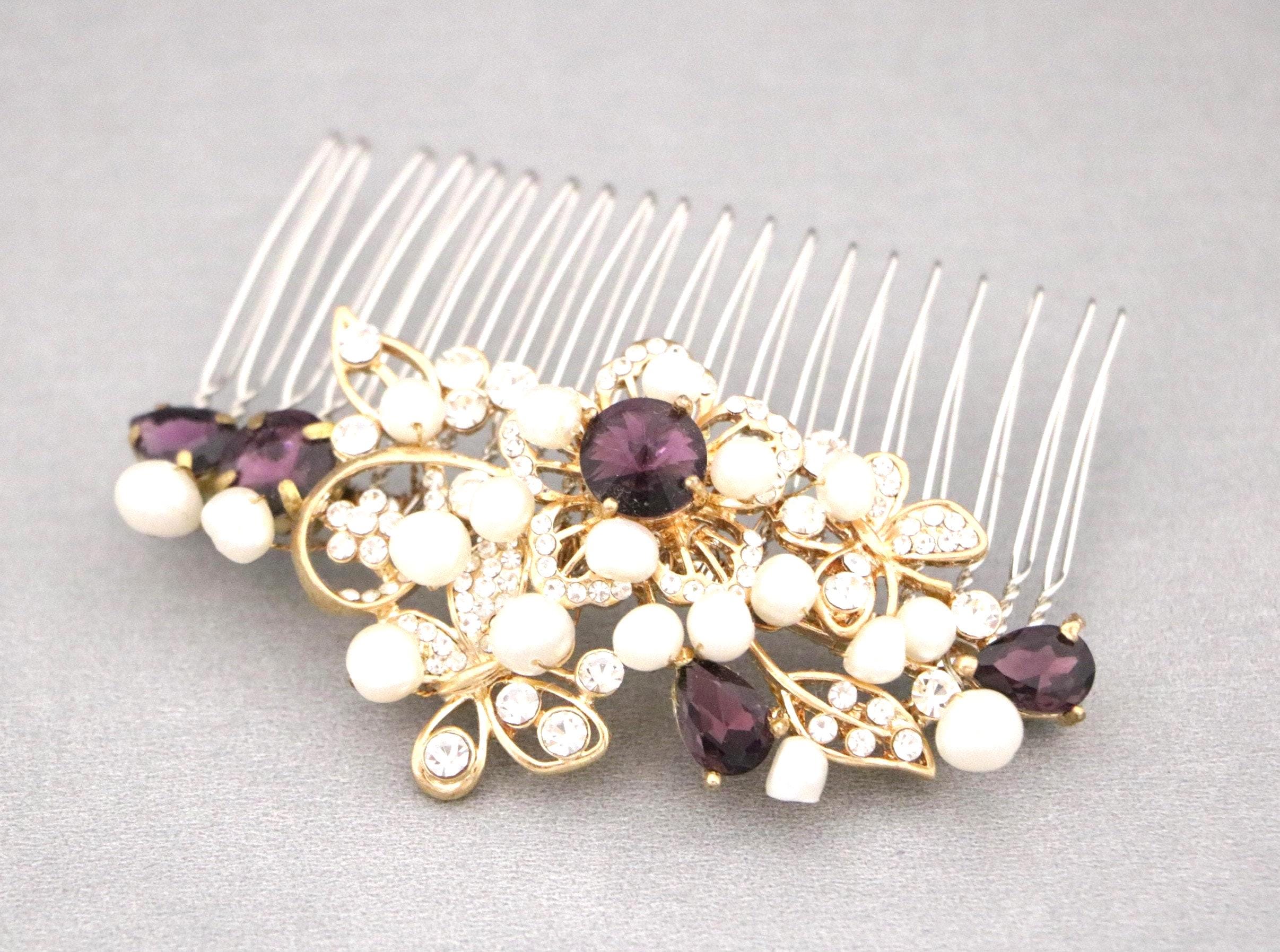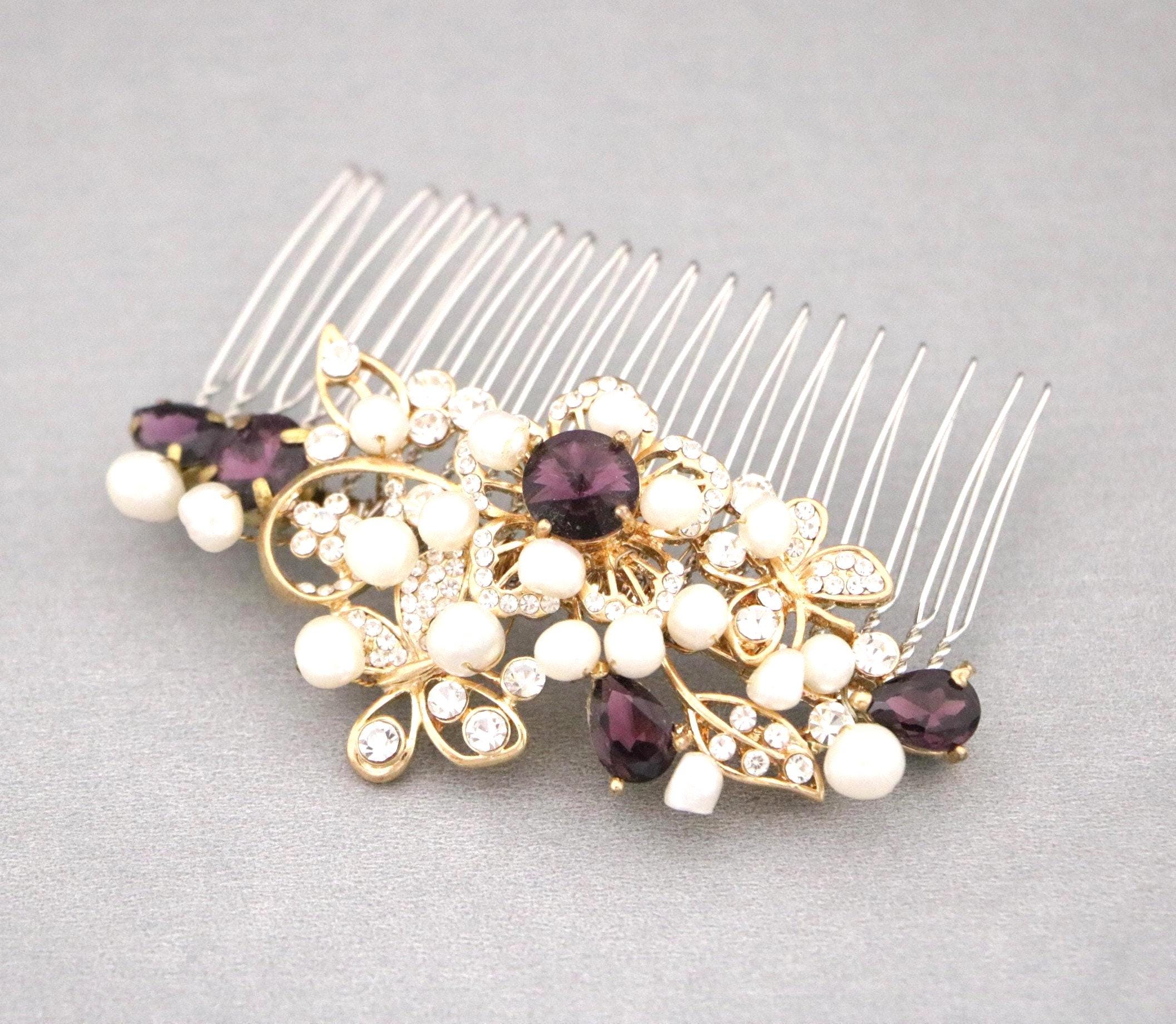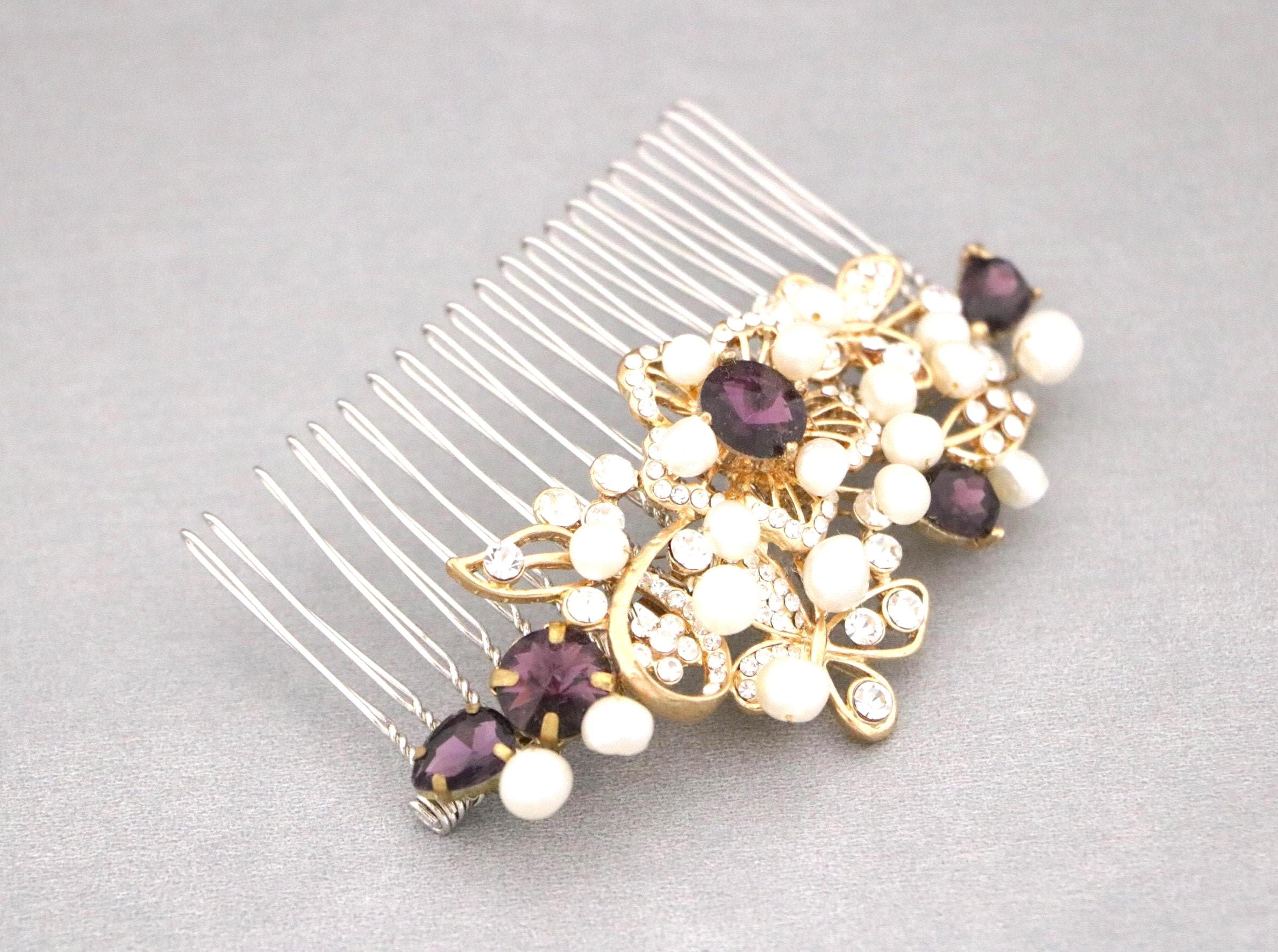 Pearl Hair Comb, wedding hair accessories, rhinestone hair comb, wedding hair comb, bridal hair comb, bridesmaid hair comb, purple