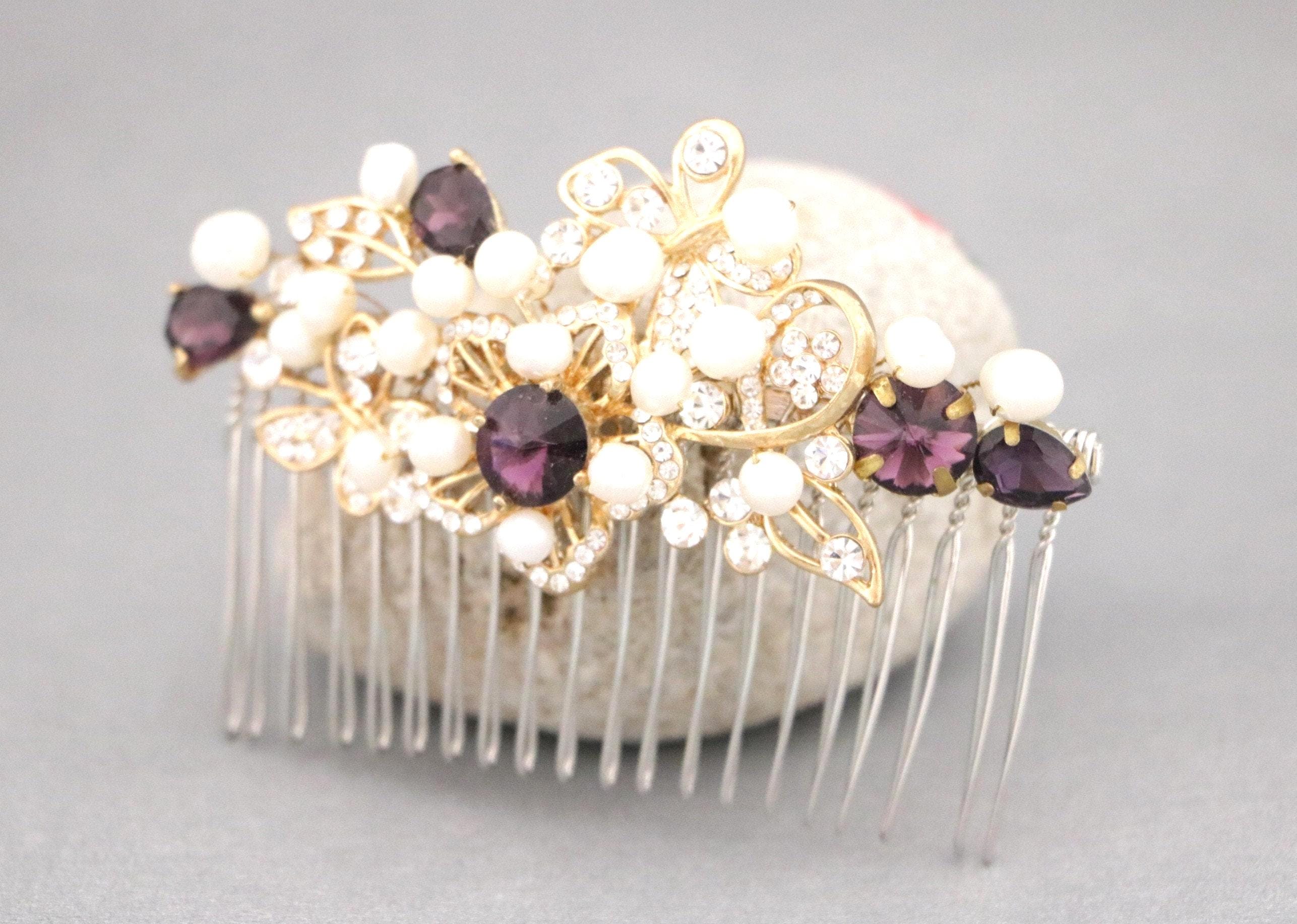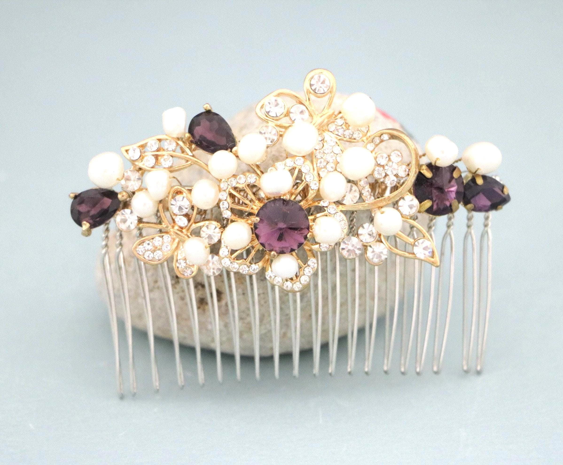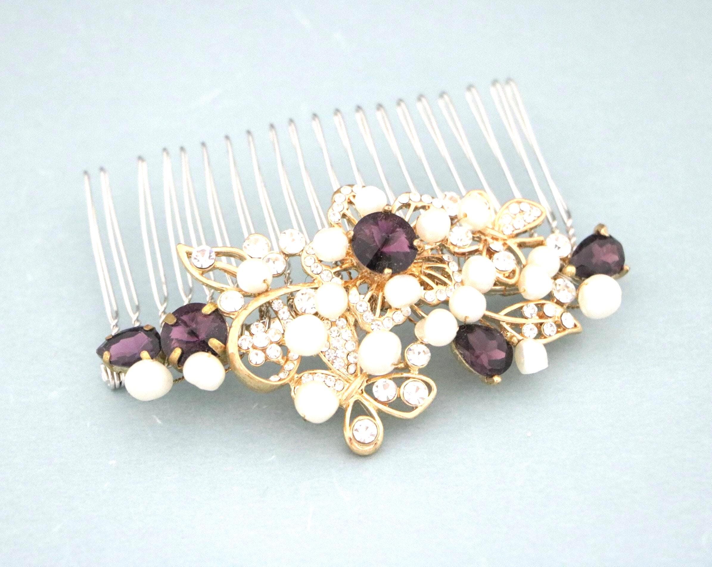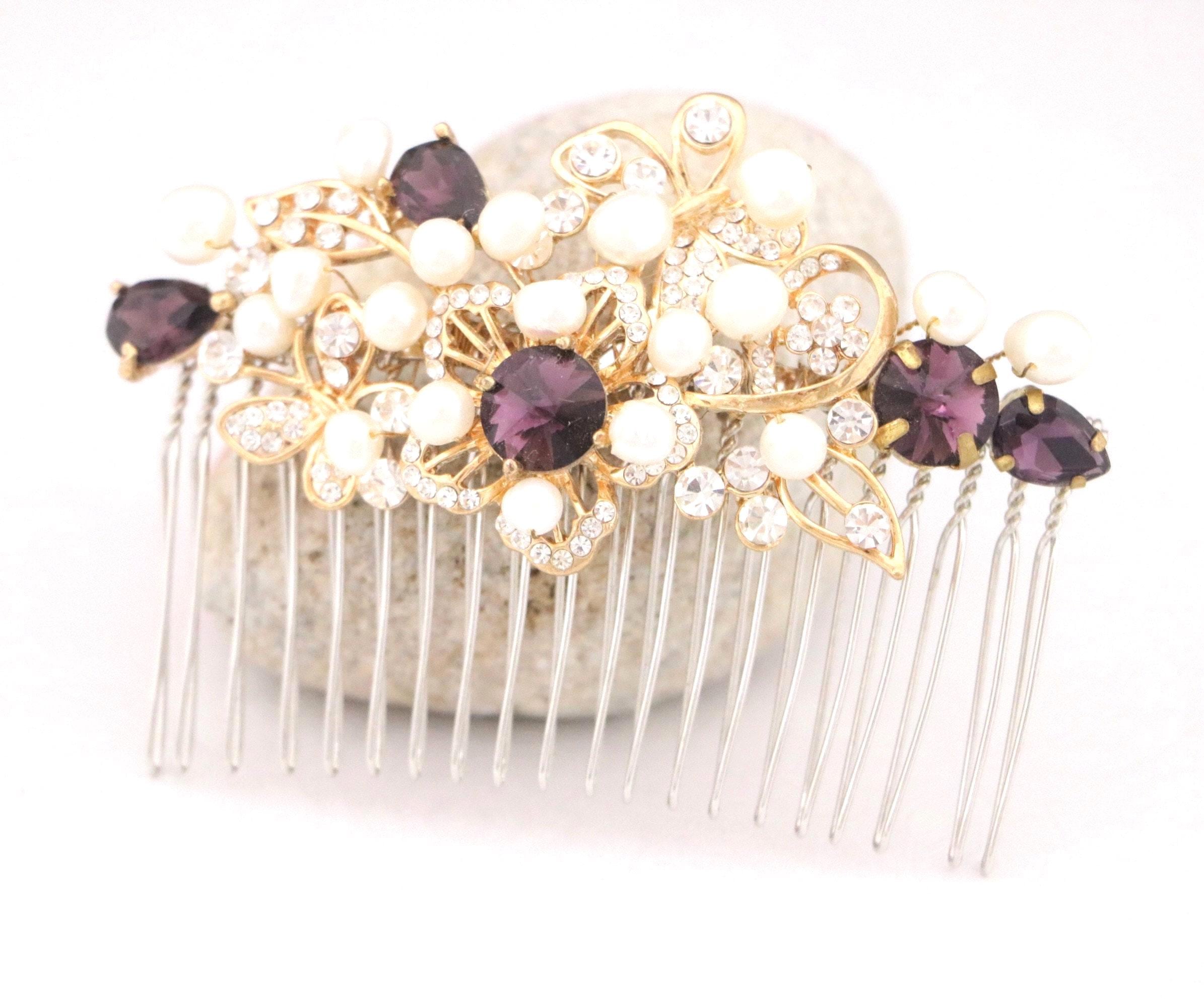 Pearl Hair Comb, wedding hair accessories, rhinestone hair comb, wedding hair comb, bridal hair comb, bridesmaid hair comb, purple
