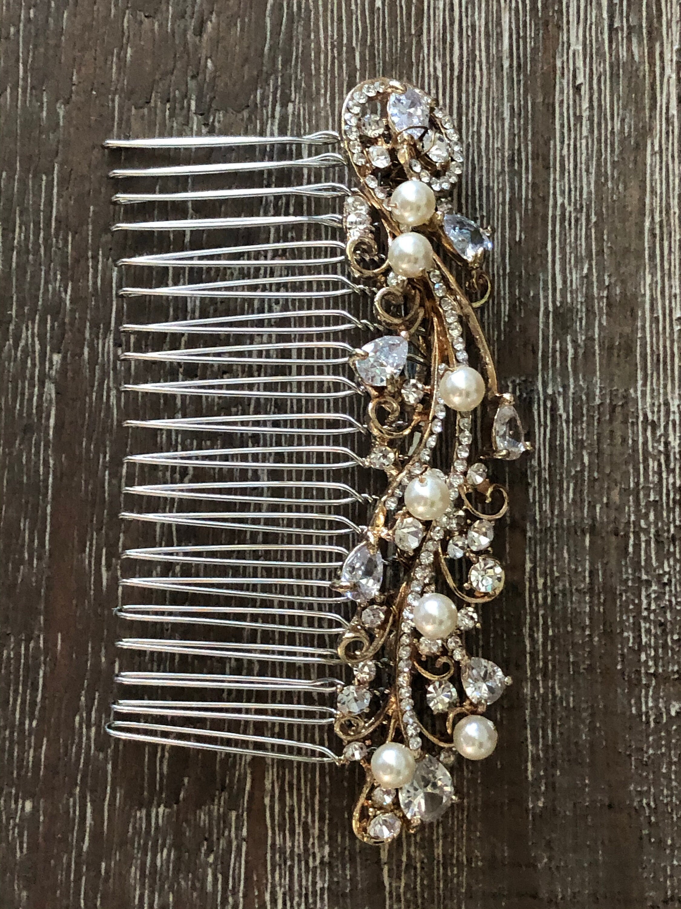 Crystal Bridal Hair Comb, Wedding Hair Accessory, Vintage Wedding Comb, Bridal Hair Comb Gold, Bridal Headpiece, Hair Comb for Wedding