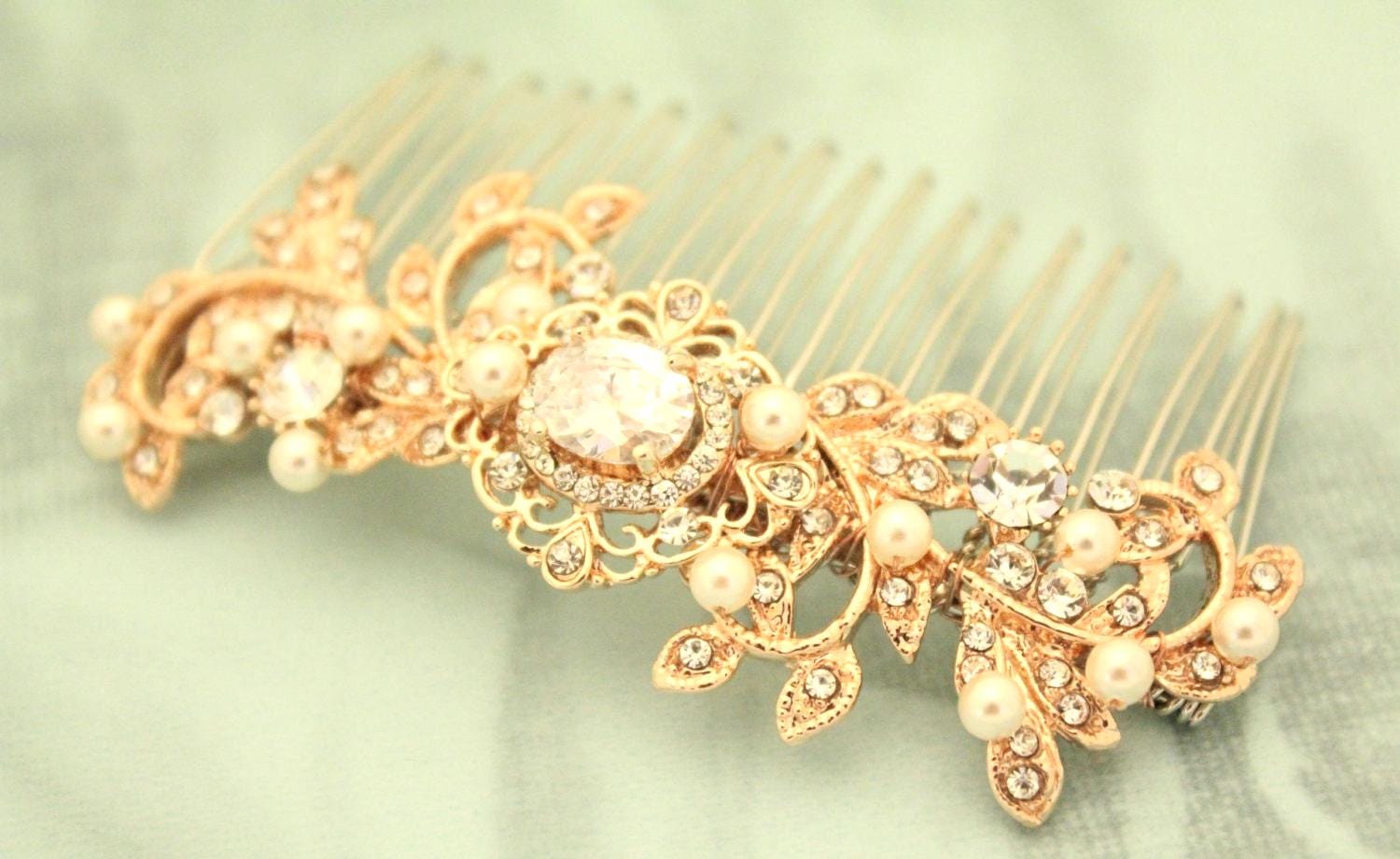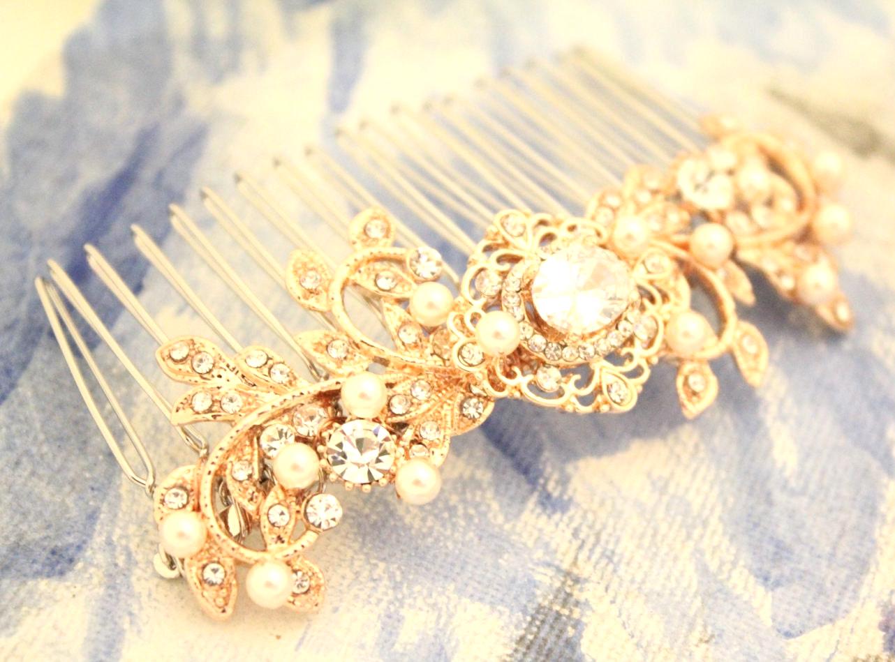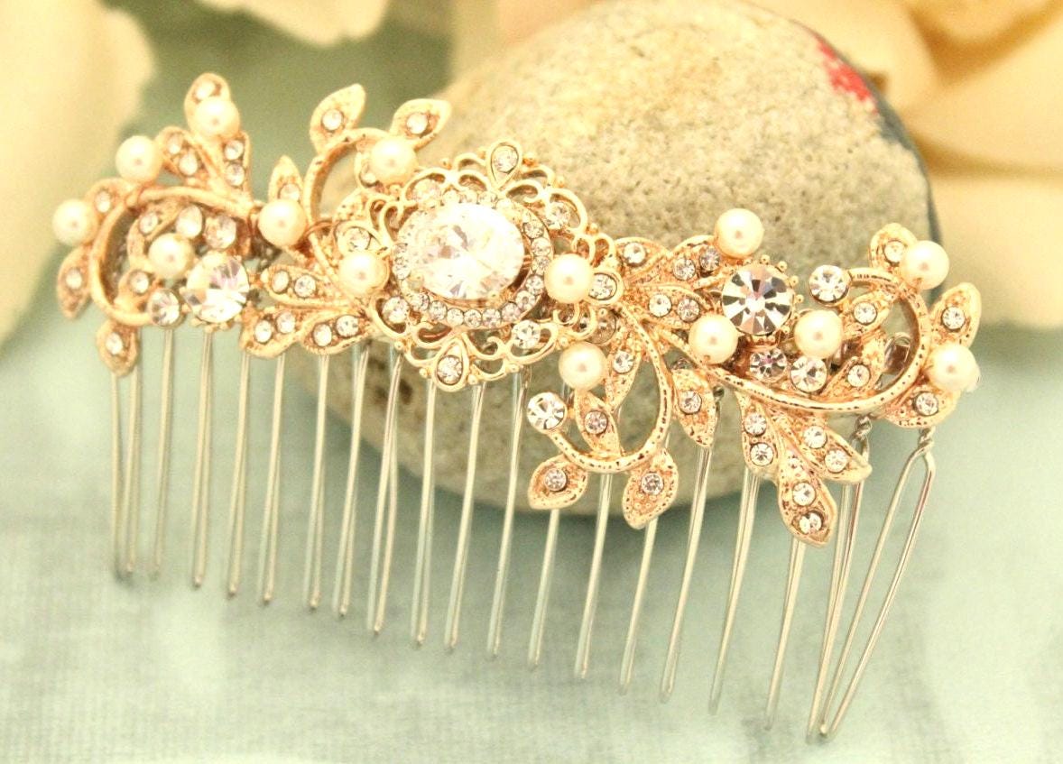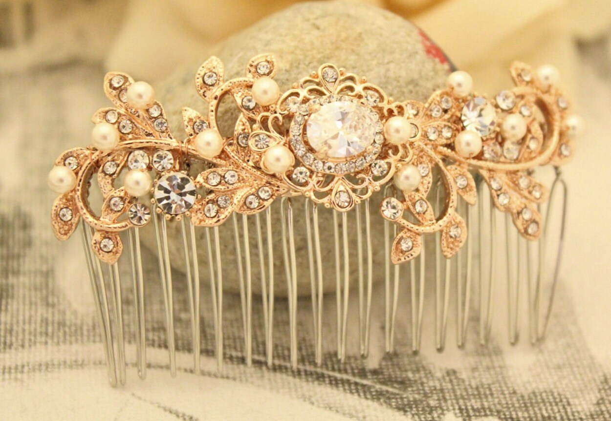Rose Gold hair comb Bridal hair comb Rose gold headpiece Crystal hair comb Swarovski Pearl hair comb Wedding headpiece Hair accessories