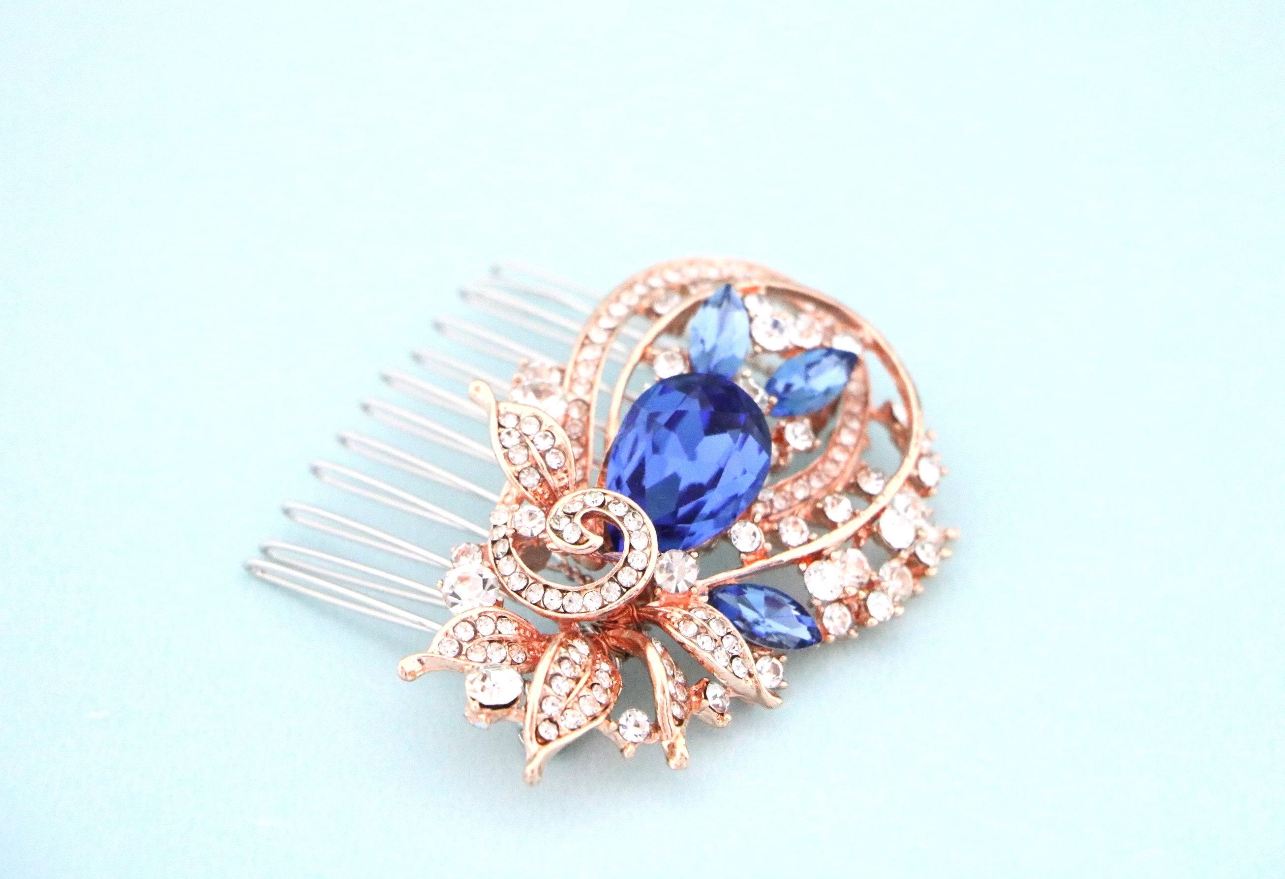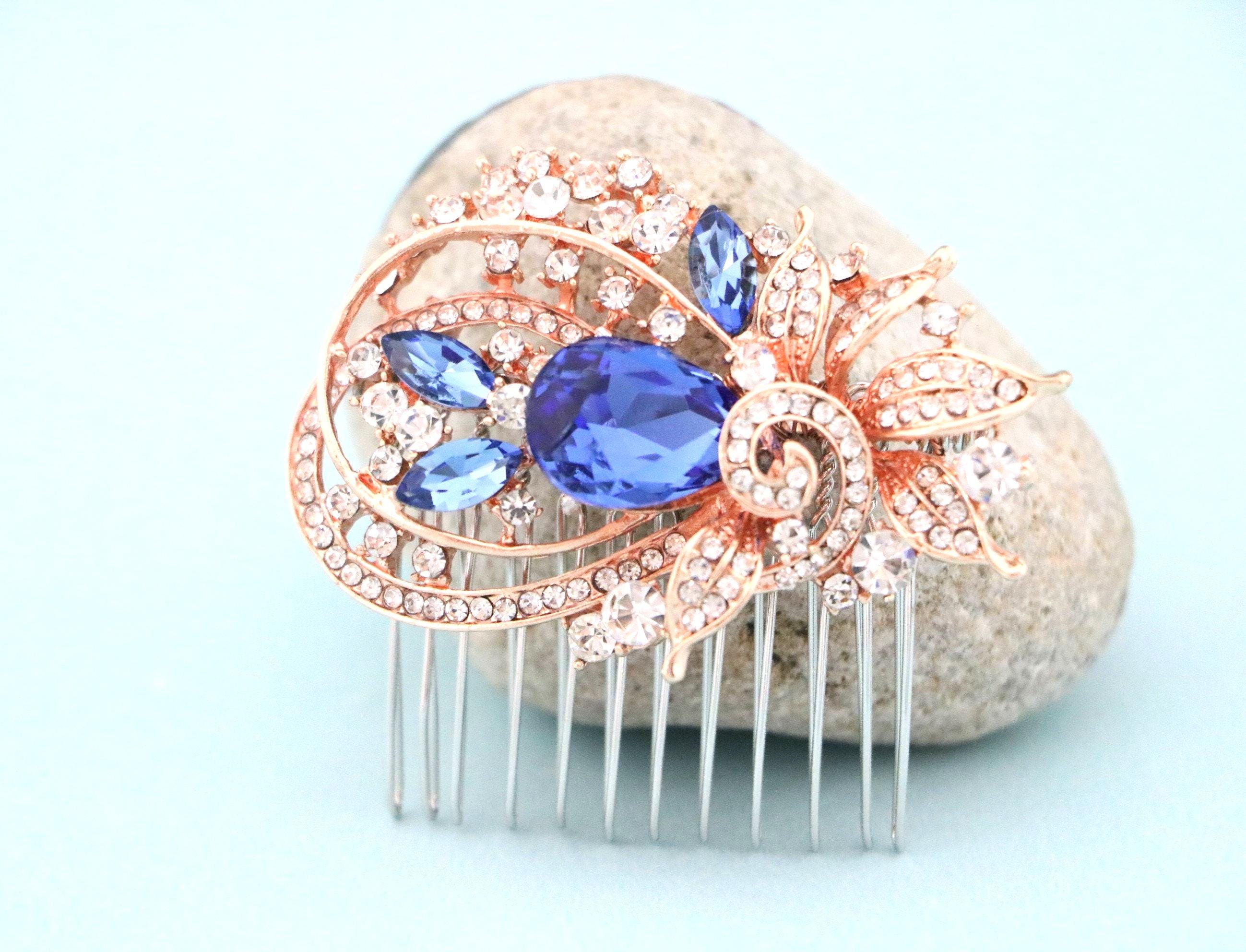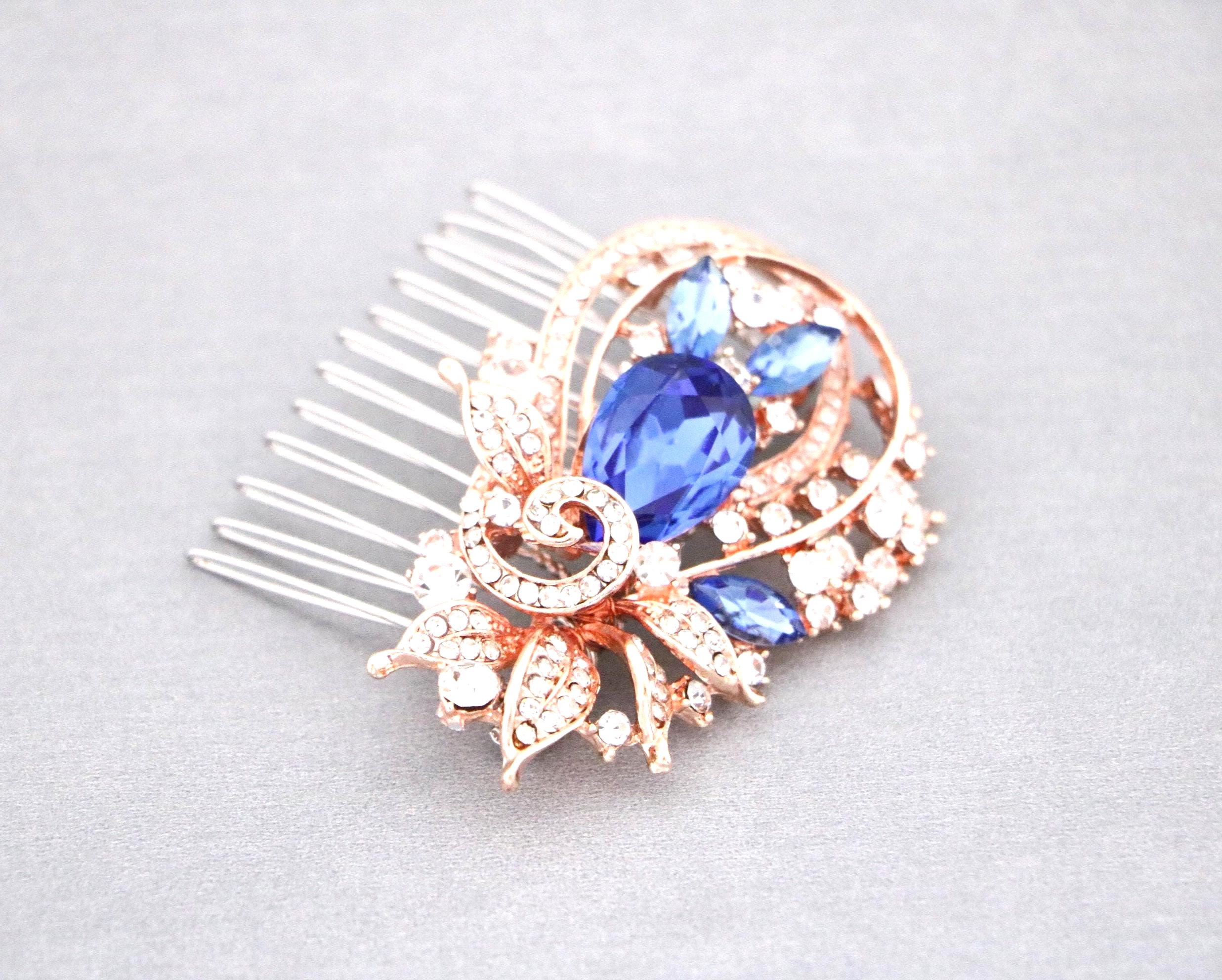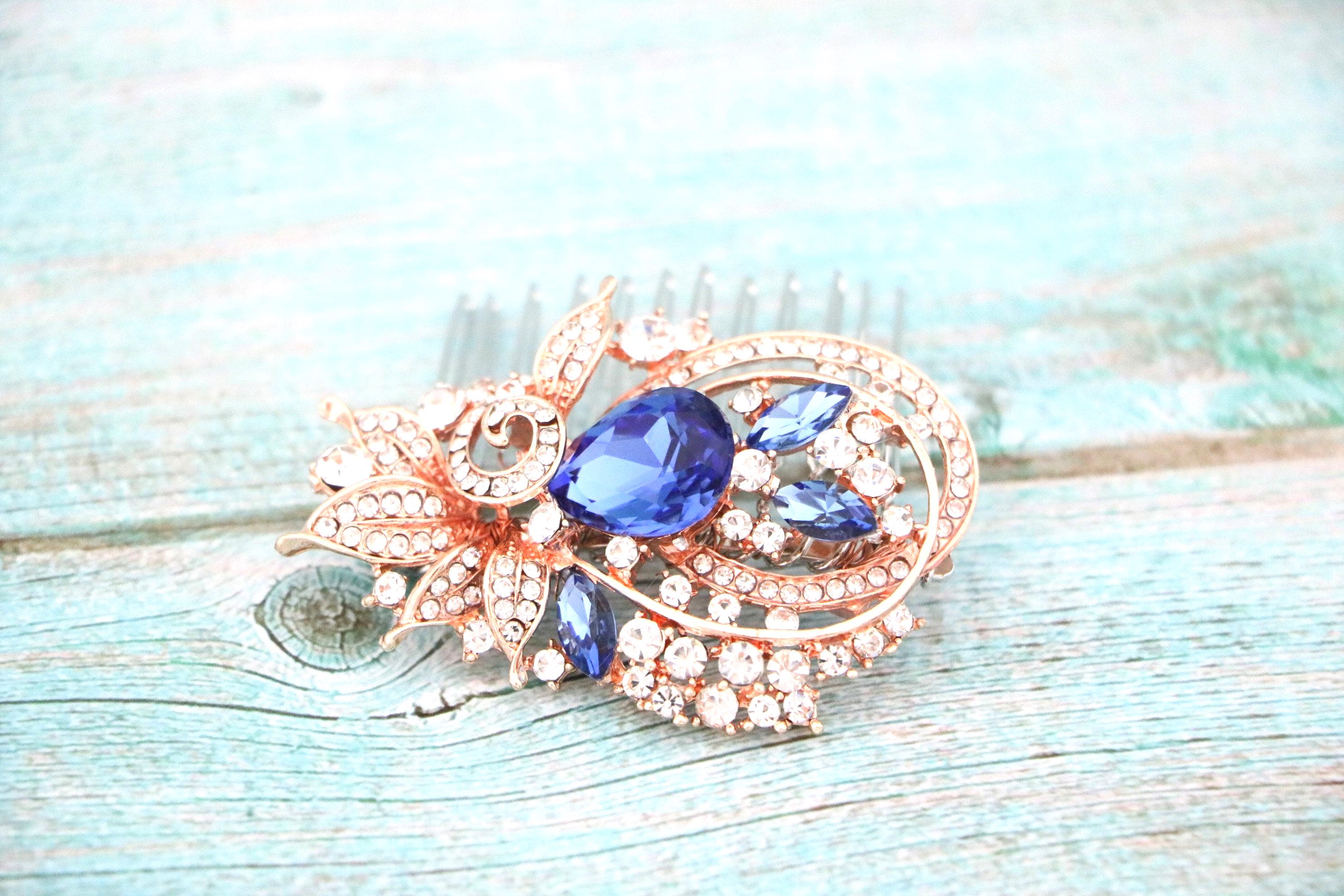Blue hair comb, Blue bridal set, Royal blue crystal hairpiece, Blue hair accessories , Blue crystal hair comb, Sapphire hair comb, Sapphire