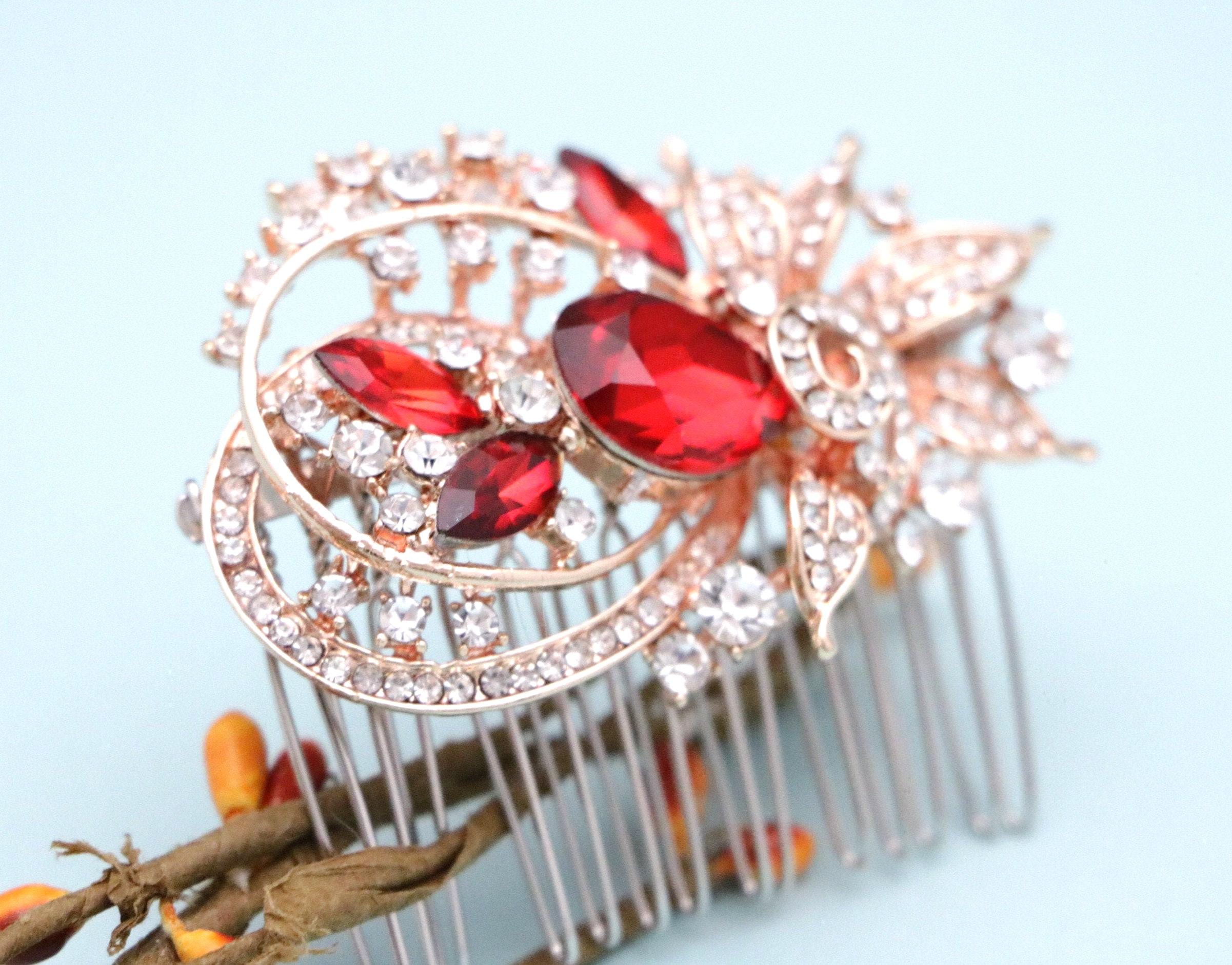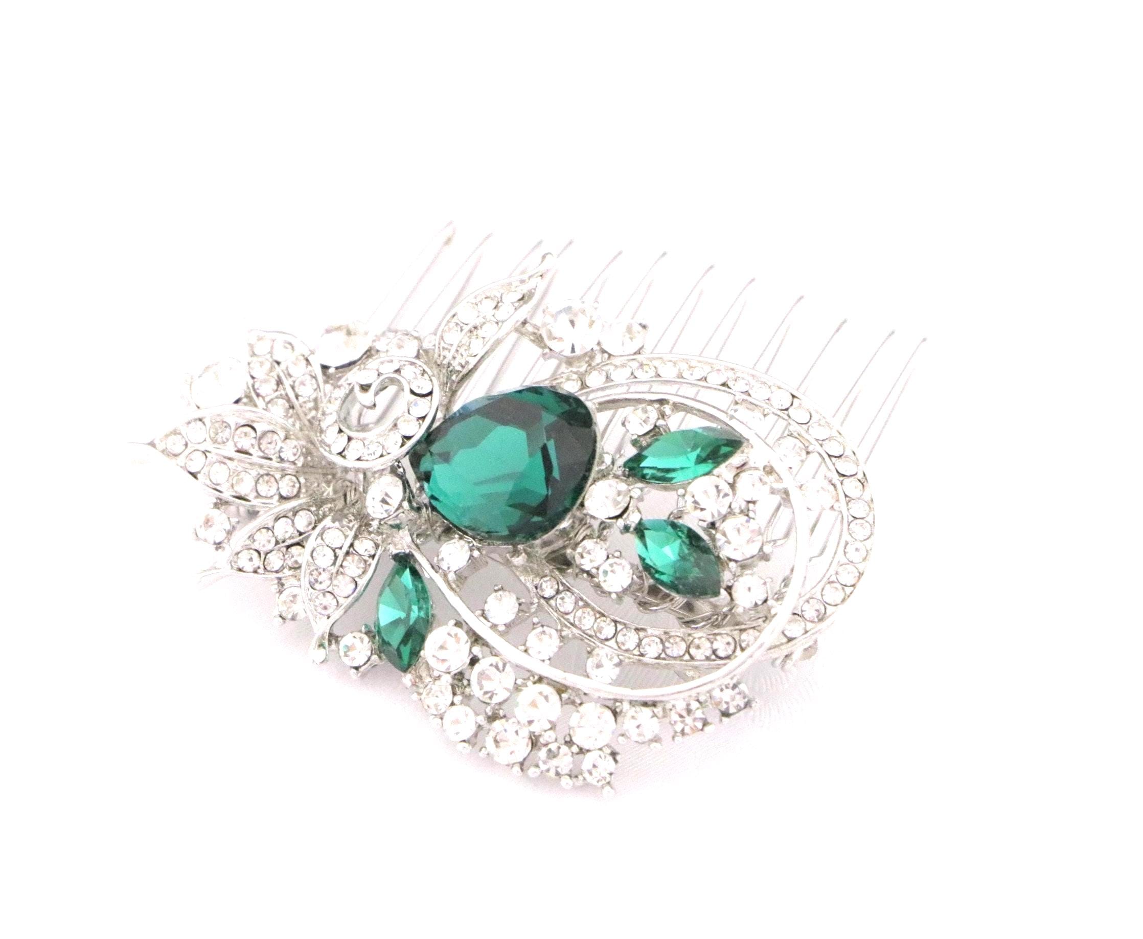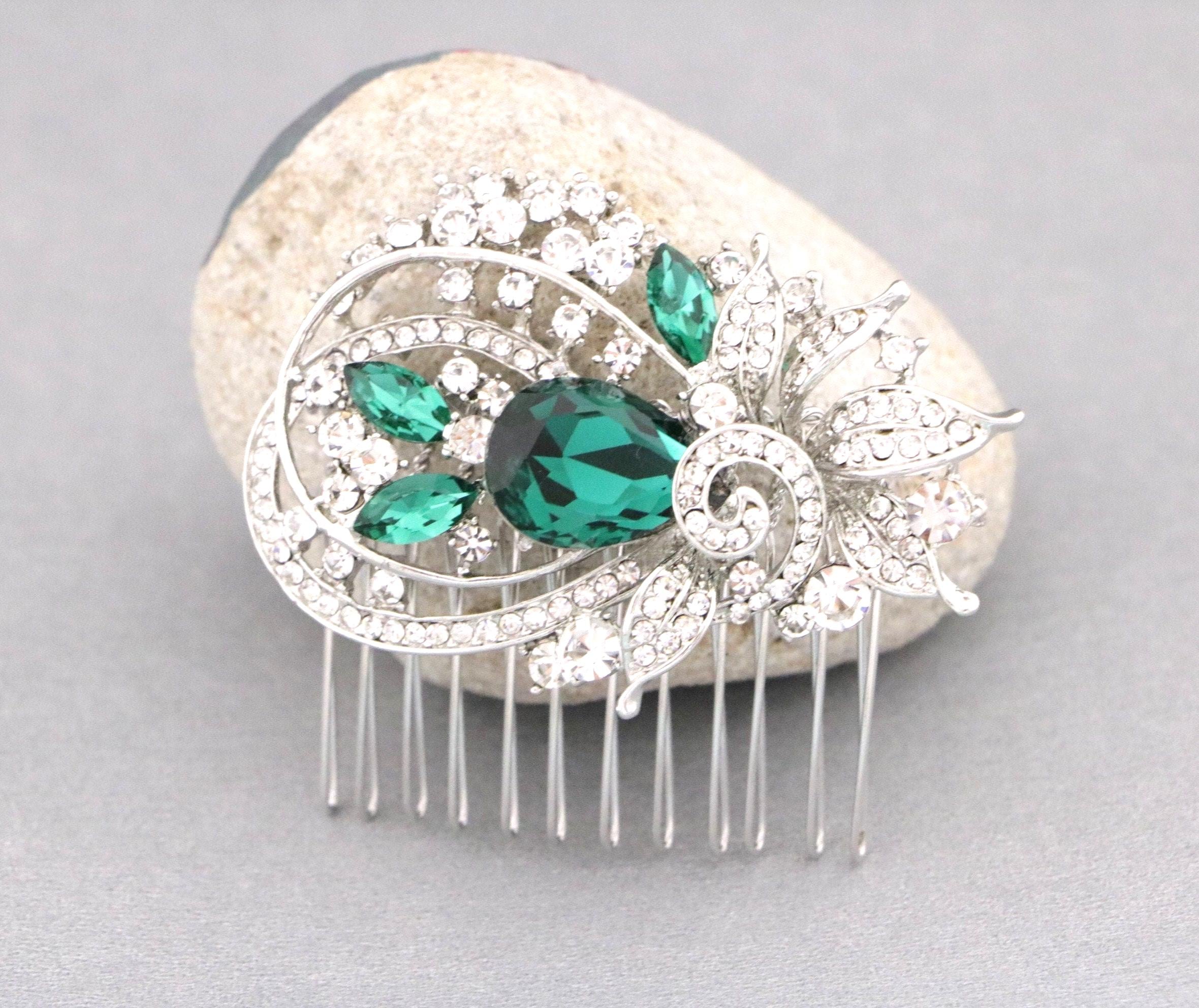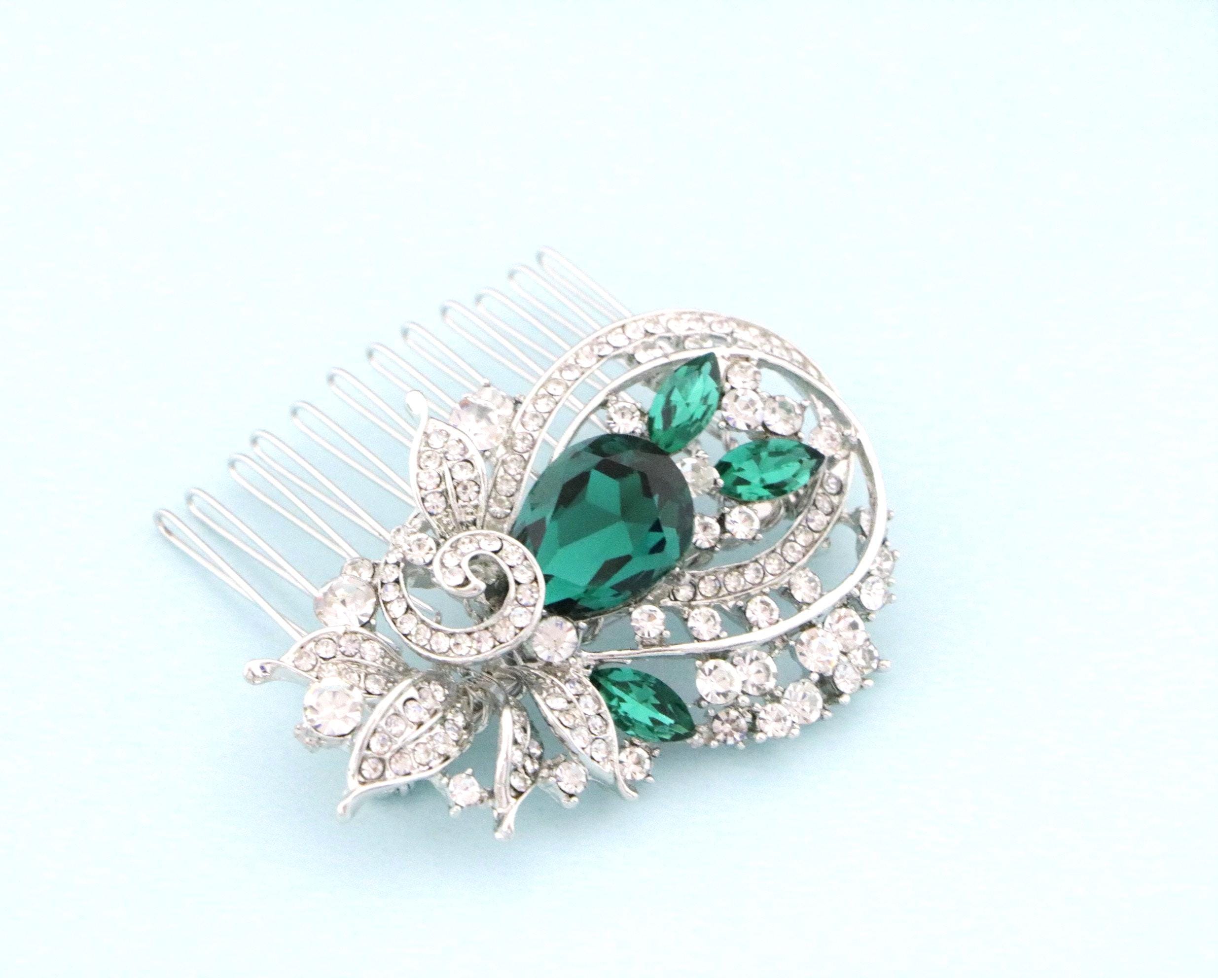 This beautiful Clear rhinestone and Sapphire Crystal hair comb is a perfect compliment for the wedding party and can easily fit into any hair style. The Rhinestone part measured approximately 2.75 X 1.75 inches.