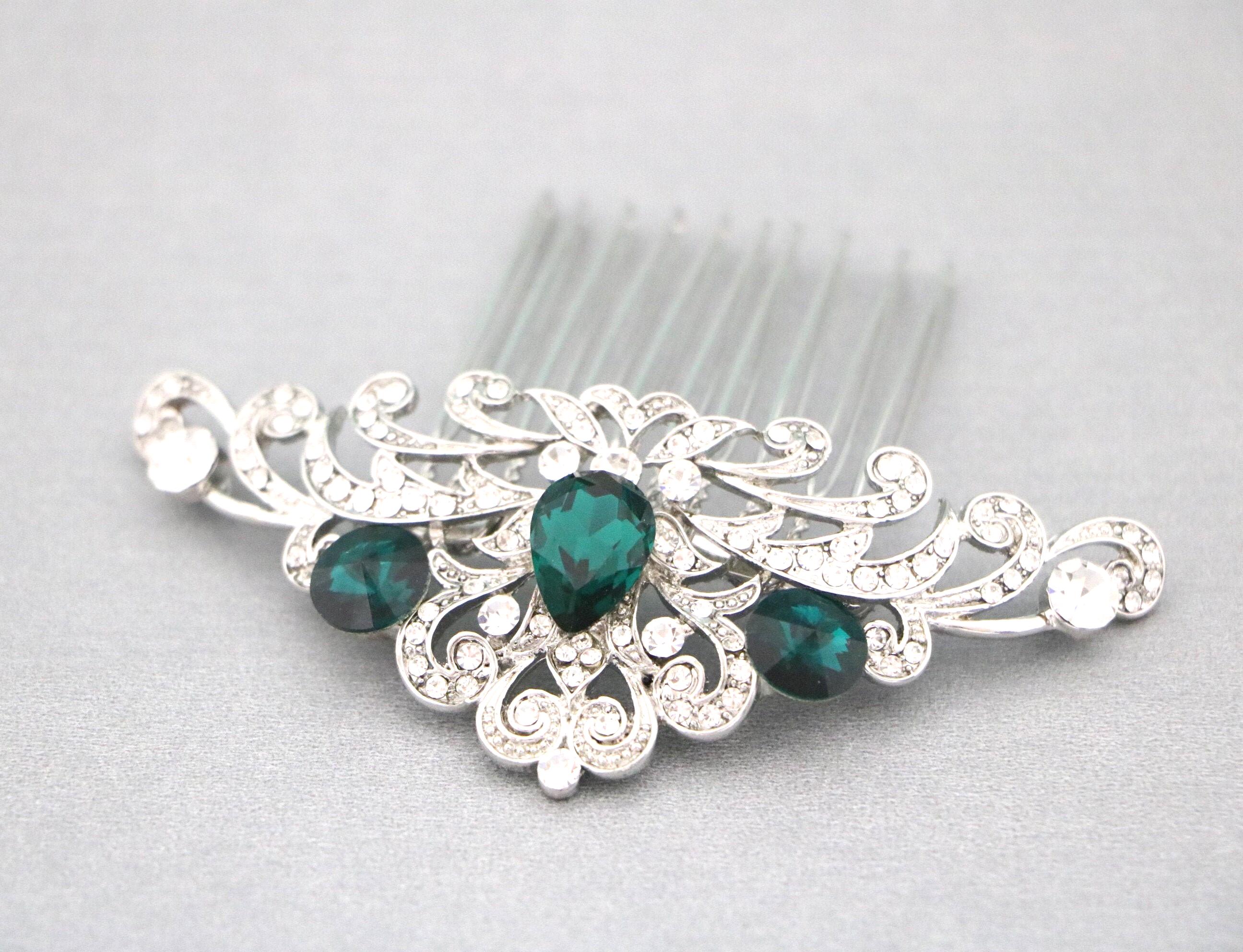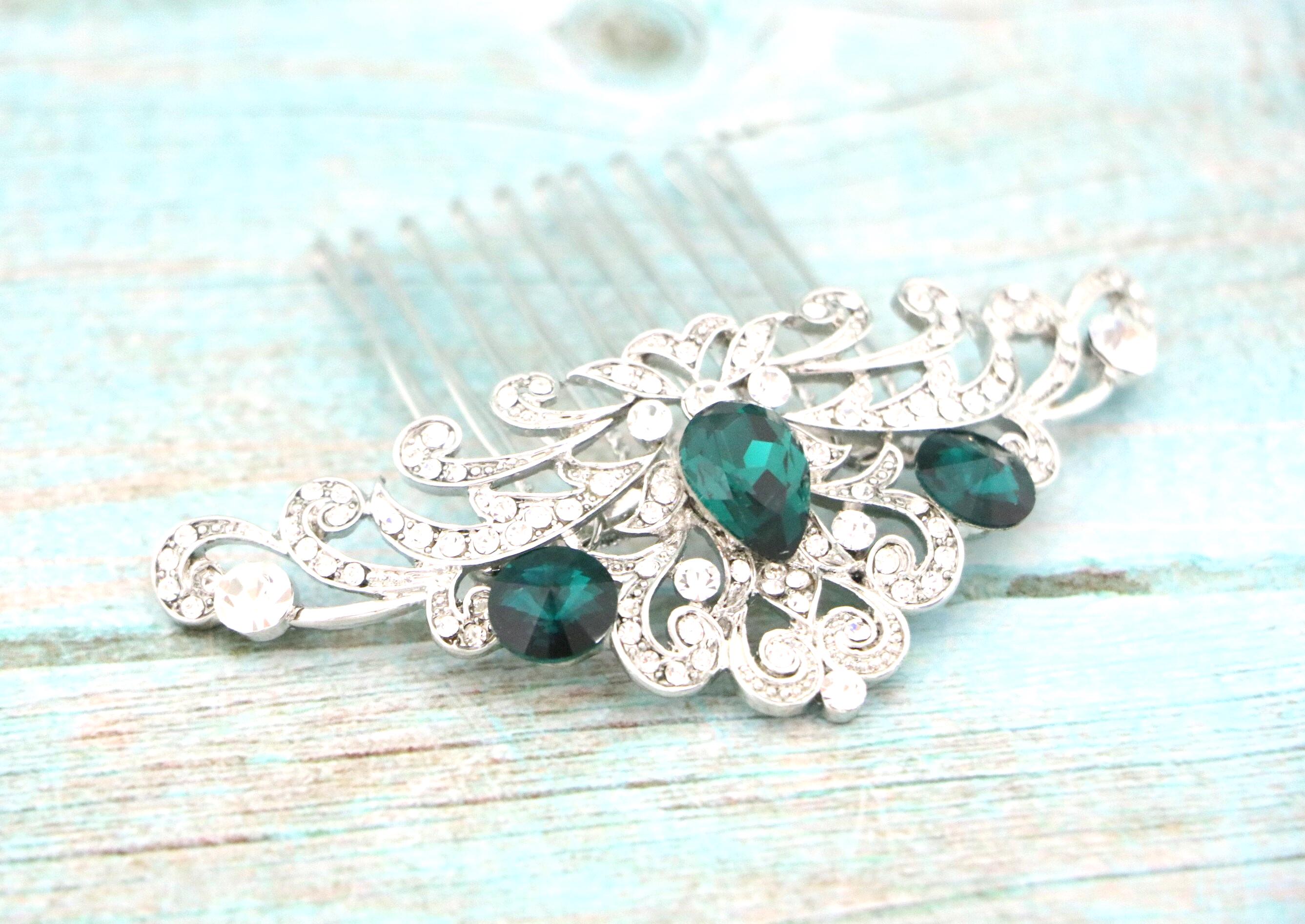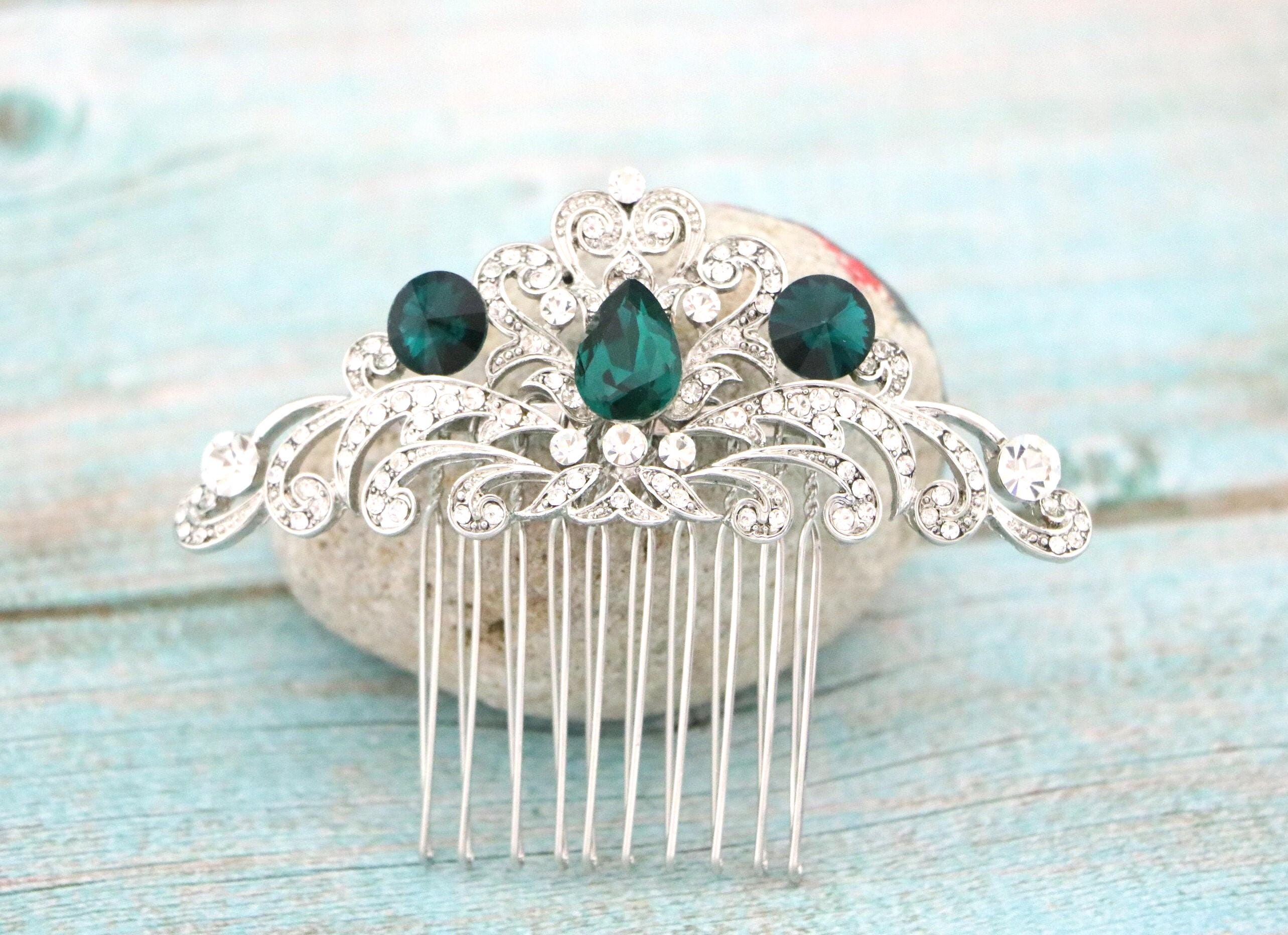 Wedding hair accessories, Wedding decorative combs, Bridal hair comb, Wedding headpiece, Something blue , Emerald crystal Wedding, Bridal hair piece ,Bridal hair clip