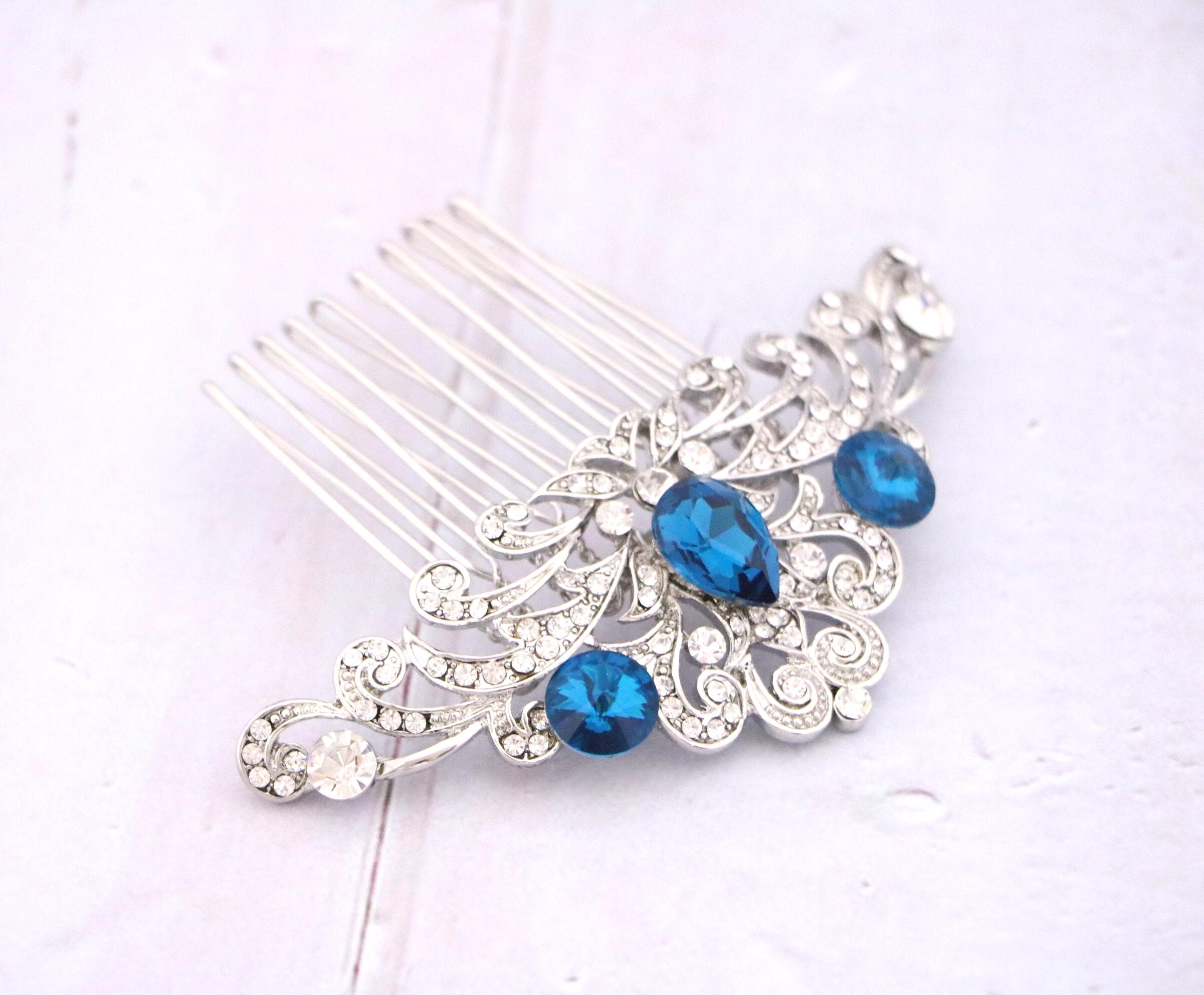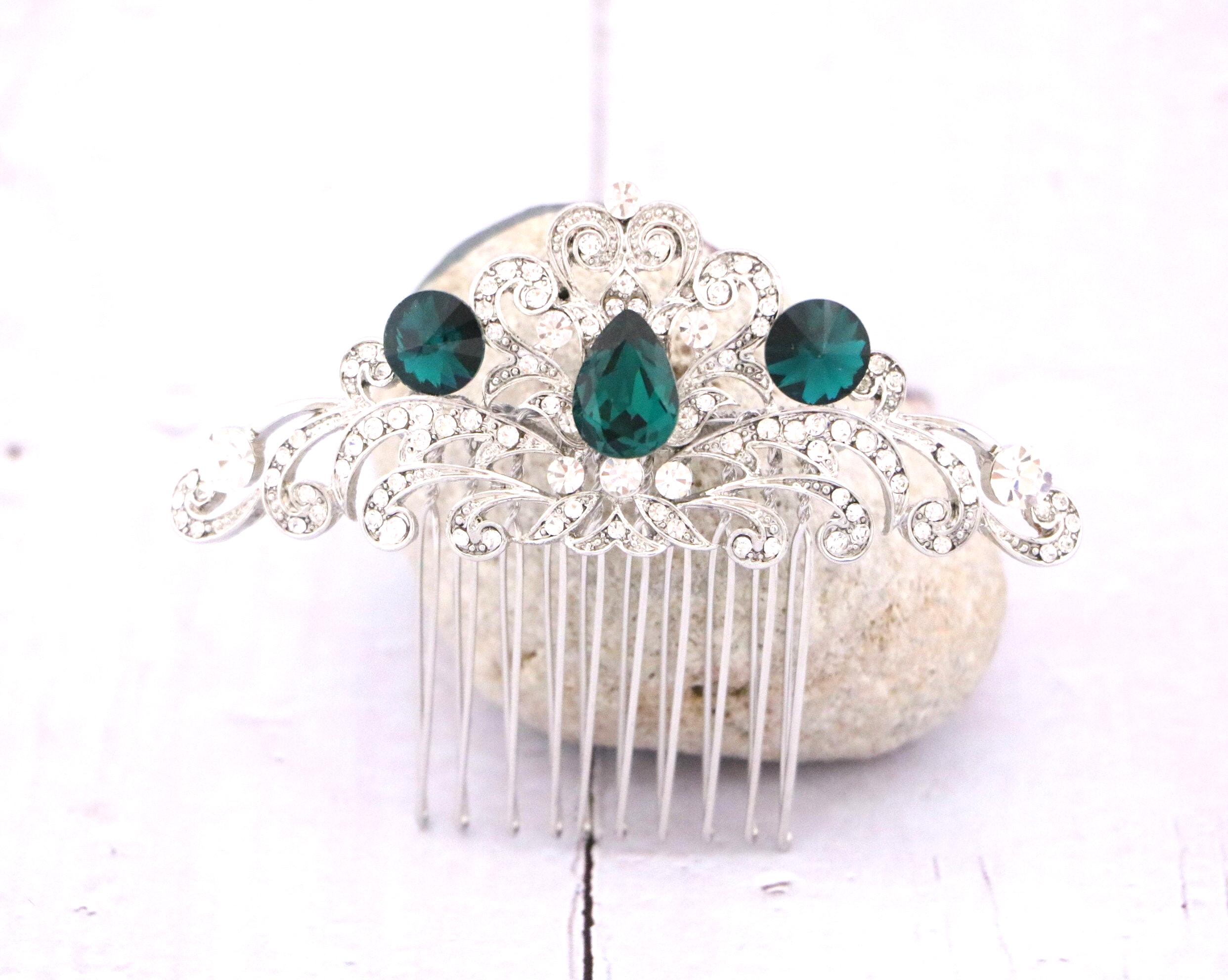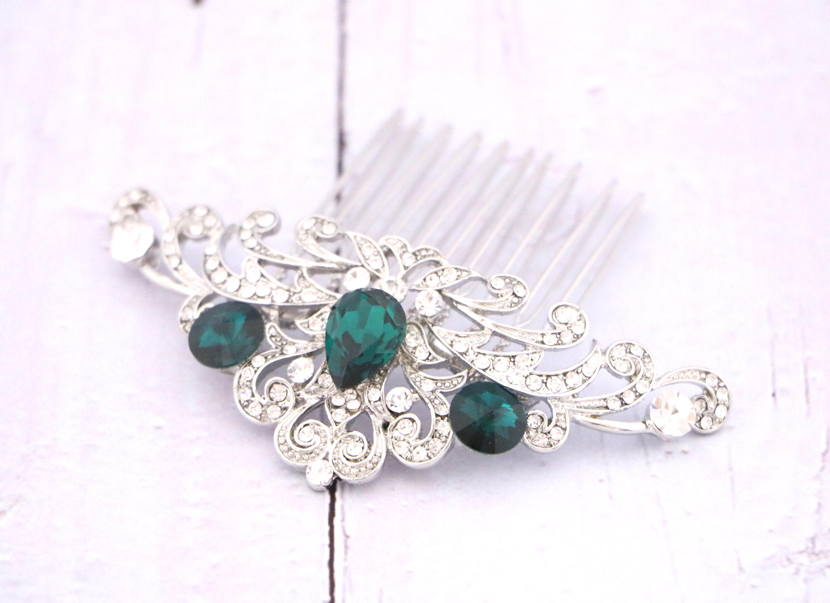 Wedding hair accessories, Wedding decorative combs, Bridal hair comb, Wedding headpiece, Something blue , Emerald crystal Wedding, Bridal hair piece ,Bridal hair clip