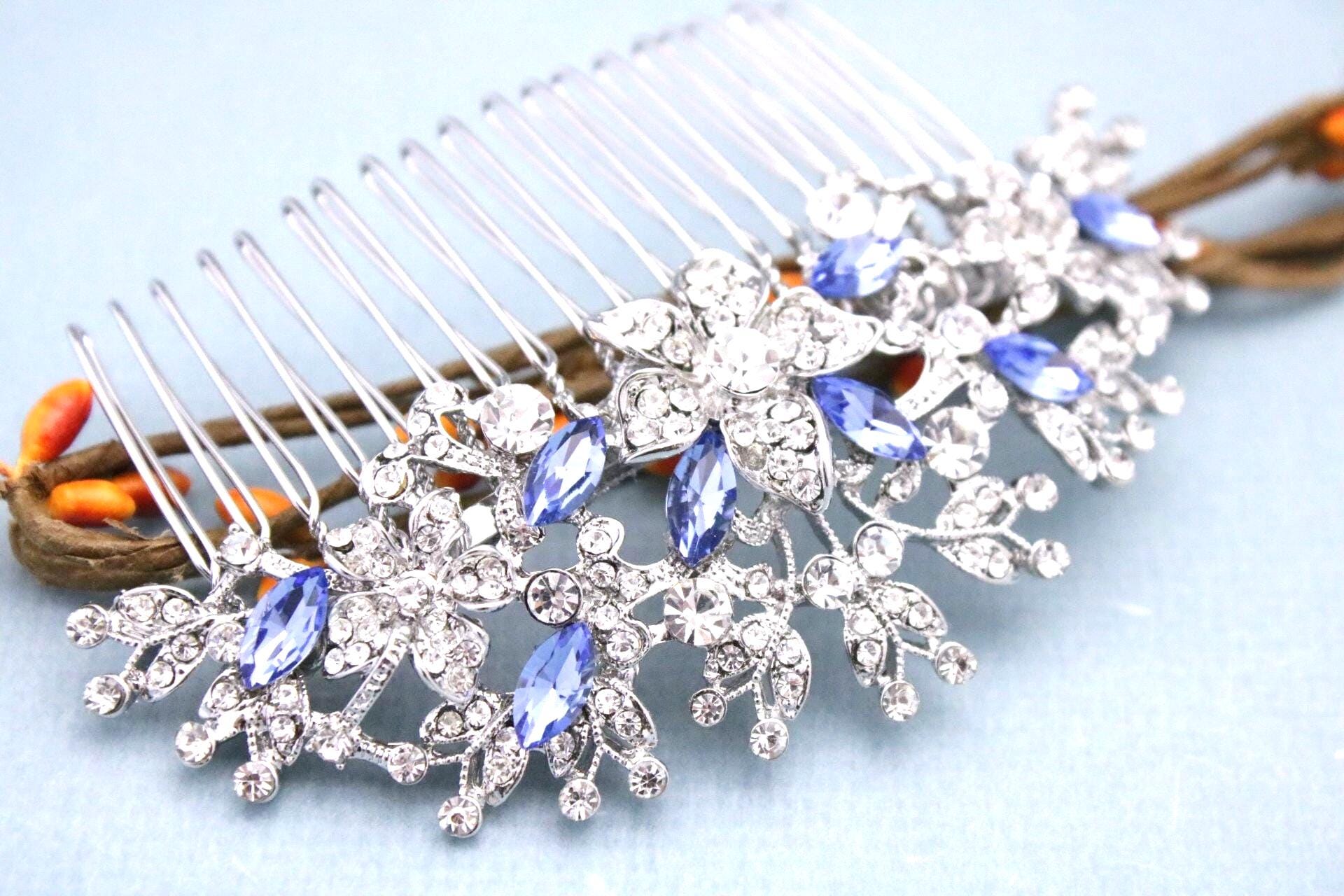 Wedding hair accessories, Wedding decorative combs, Bridal hair comb, Wedding headpiece, Red hair comb, Red Rhinestone, Ruby hair piece ,Montana crystal bridal hair clip , Sapphire color crystal