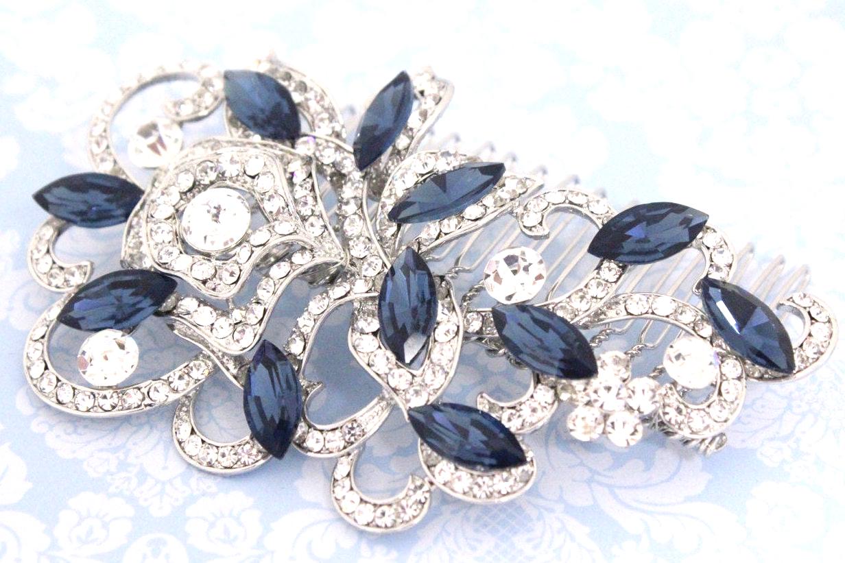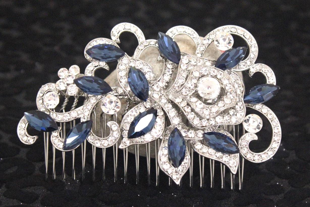 Blue Bridal Comb, Rhinestone Wedding Hair Comb, Vintage Bride Hair Accessory, Navy Rhinestone Comb, Bridal Hair Piece, Wedding Headpiece