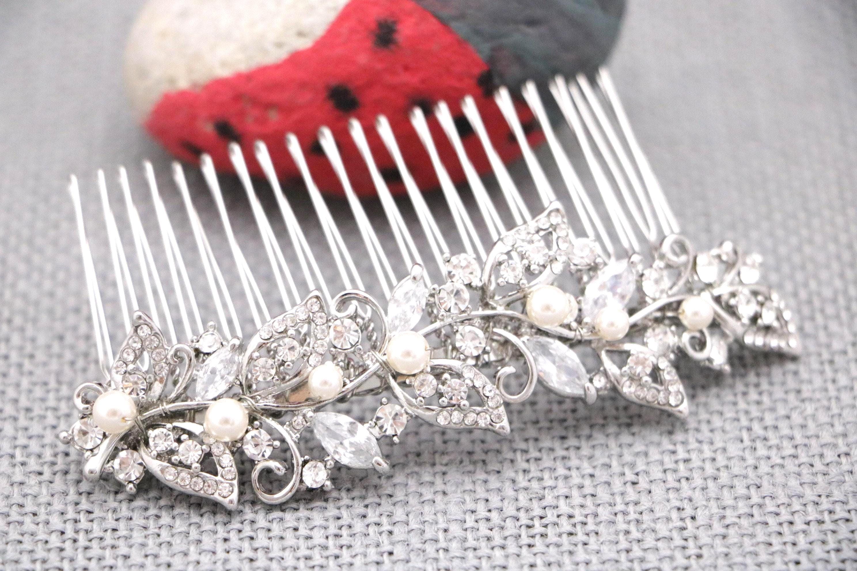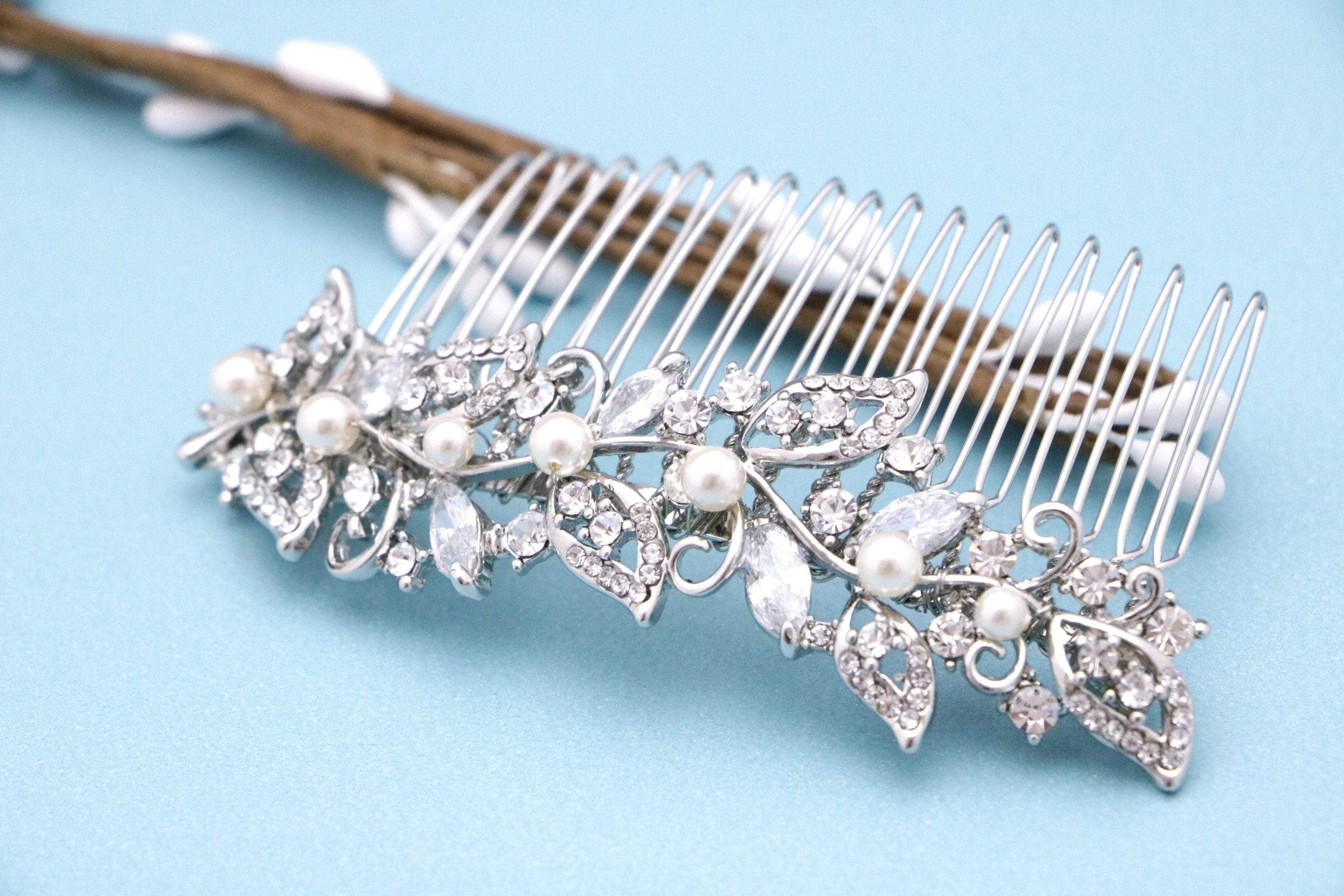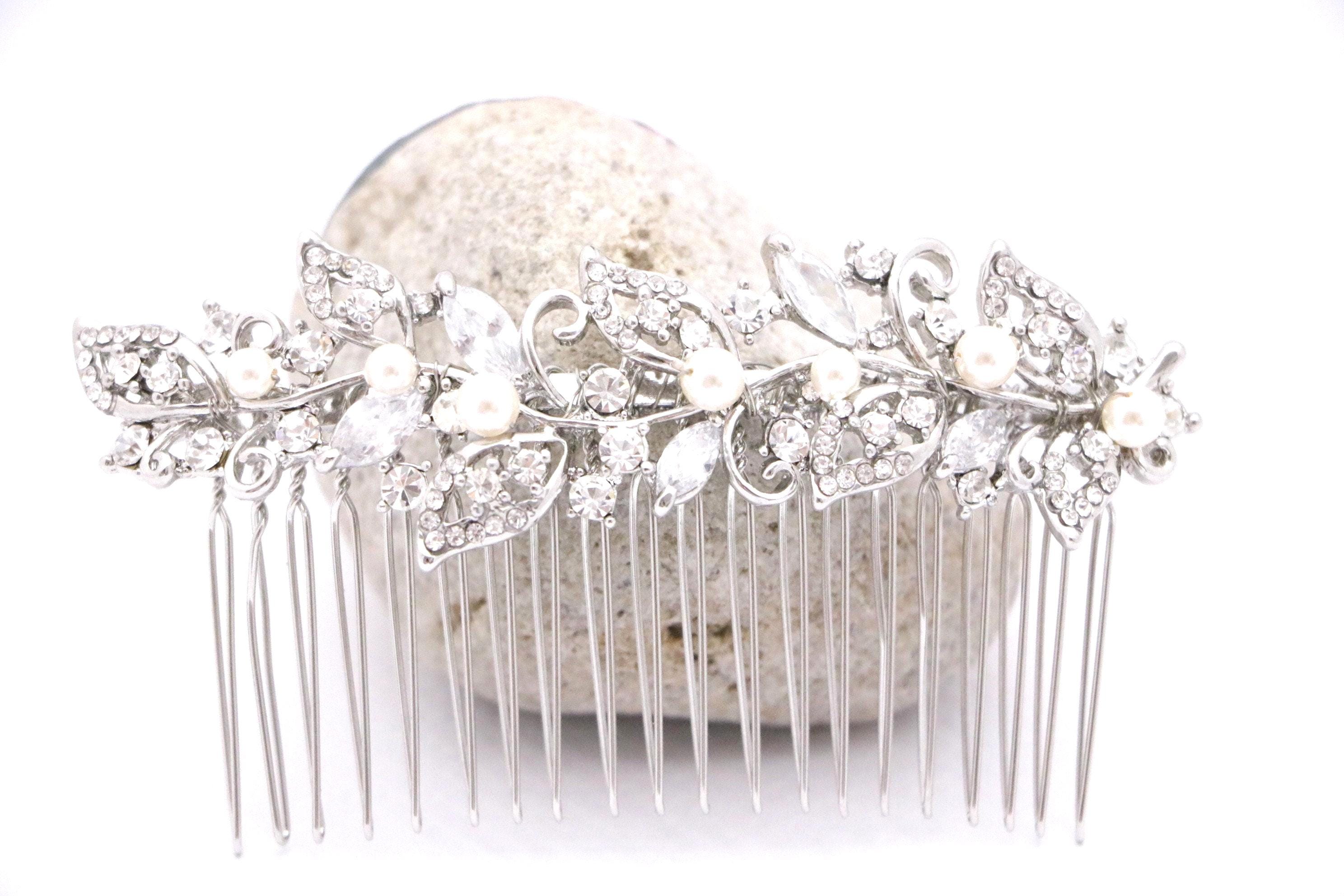 Crystal Side Comb, Bridal Hair Comb, Rhinestone Hair Comb, Silver Flower Comb, Wedding Back Comb, Bridal Hair Accessories, Bridal Headpiece
