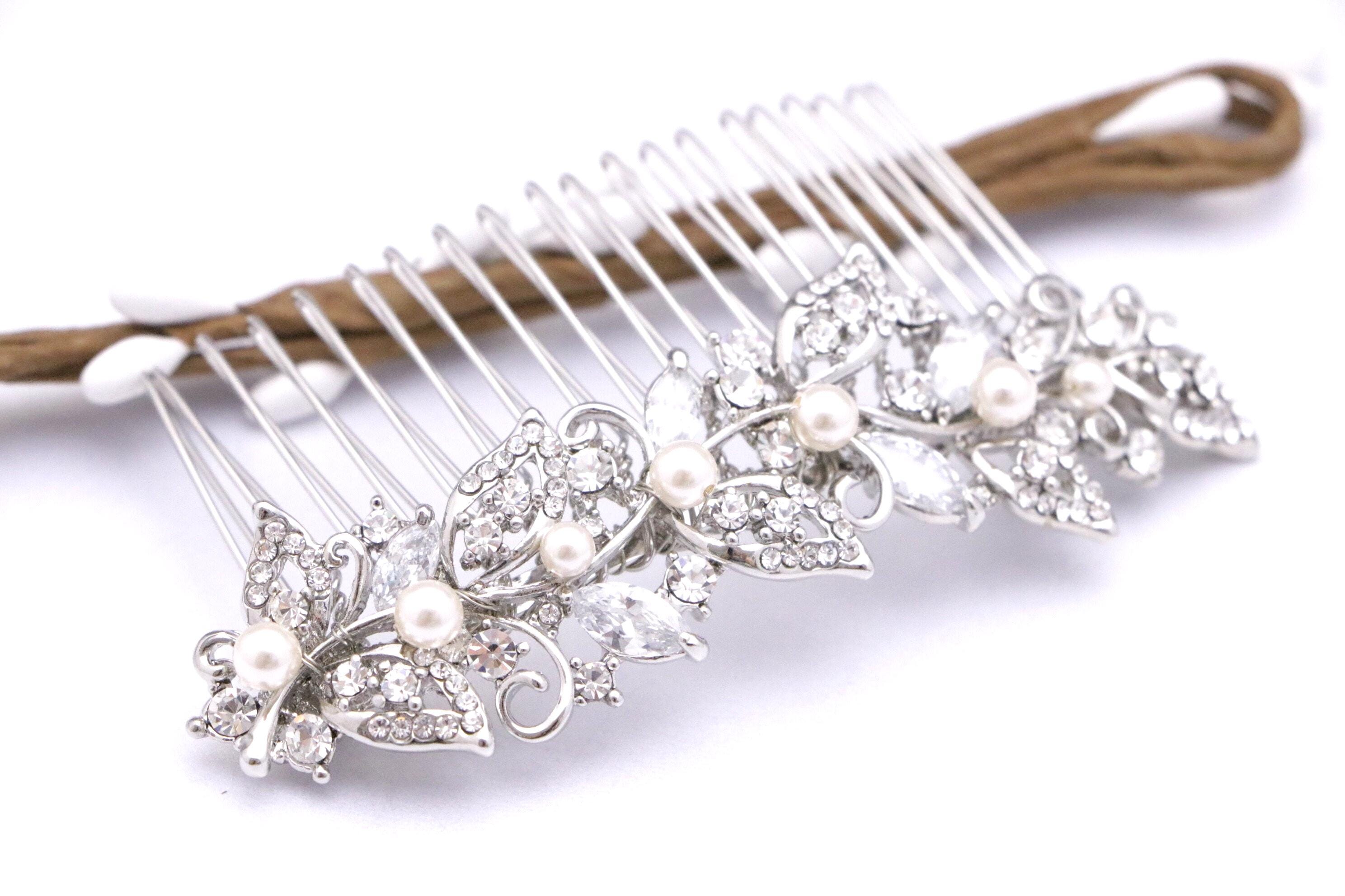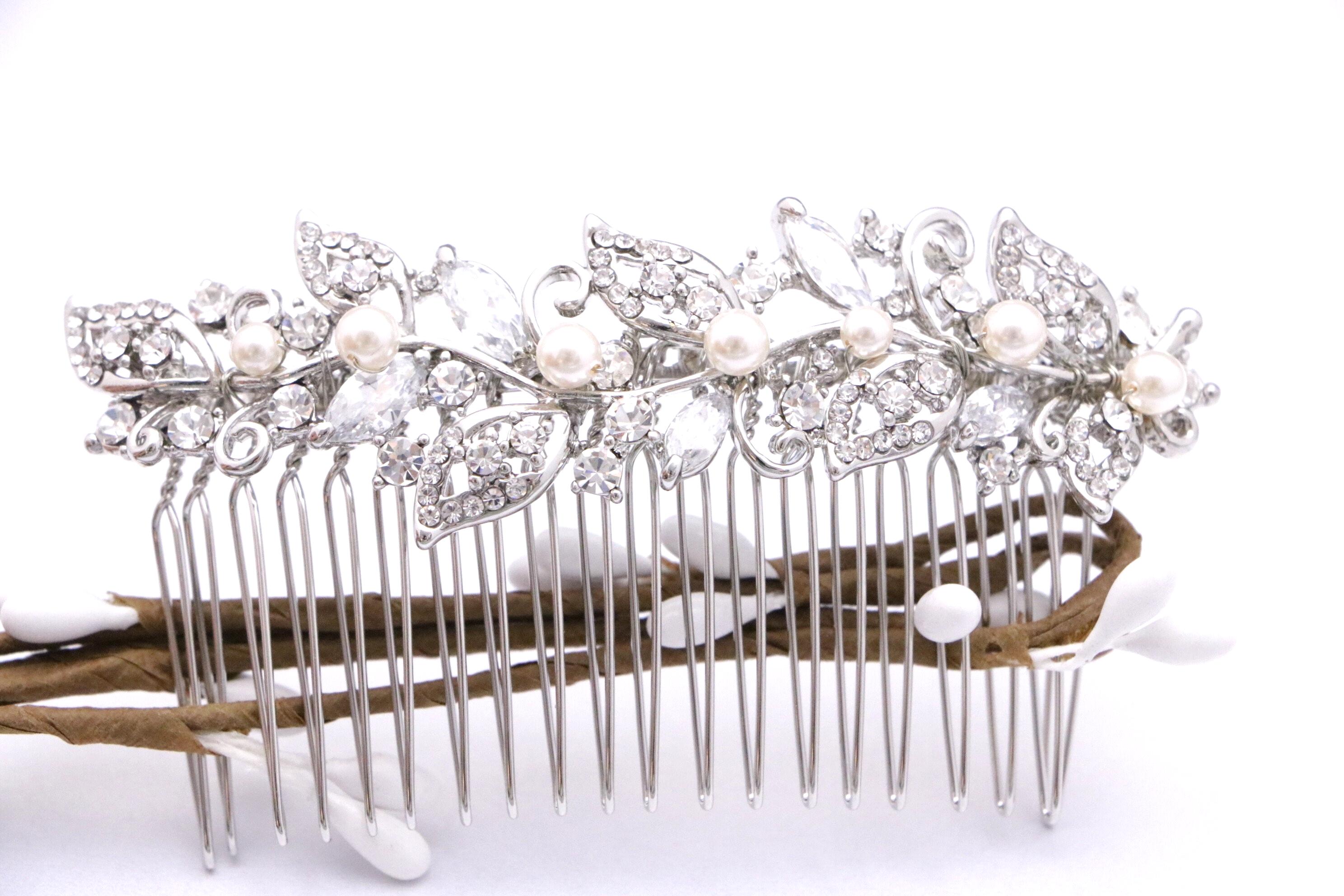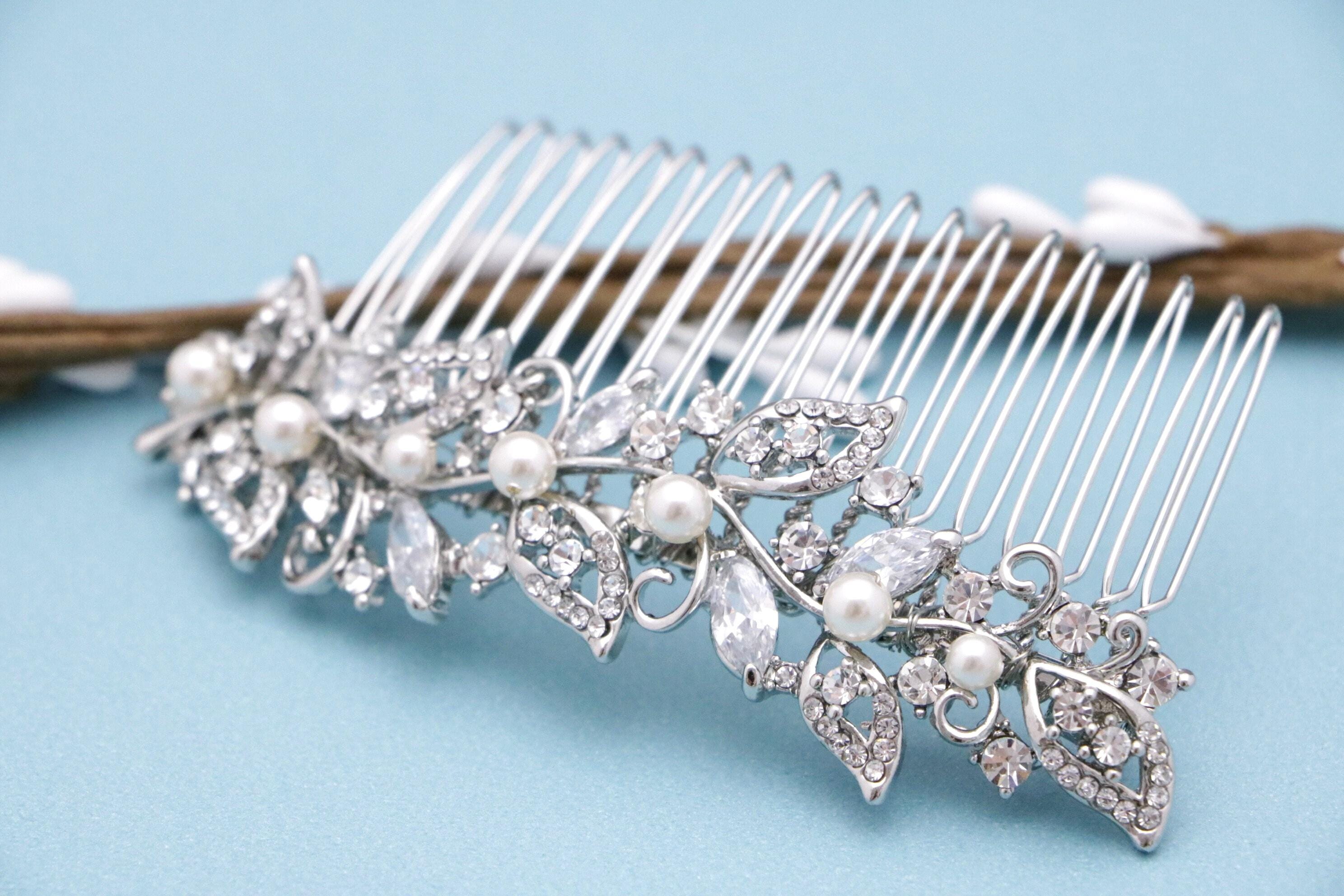 Bridal Hair Comb Silver, Bridal Hair Piece, Pearl Hair Comb, Wedding Hair Comb, Crystal Hair Comb, Bridal Headpiece, Bridal Hair Accessories