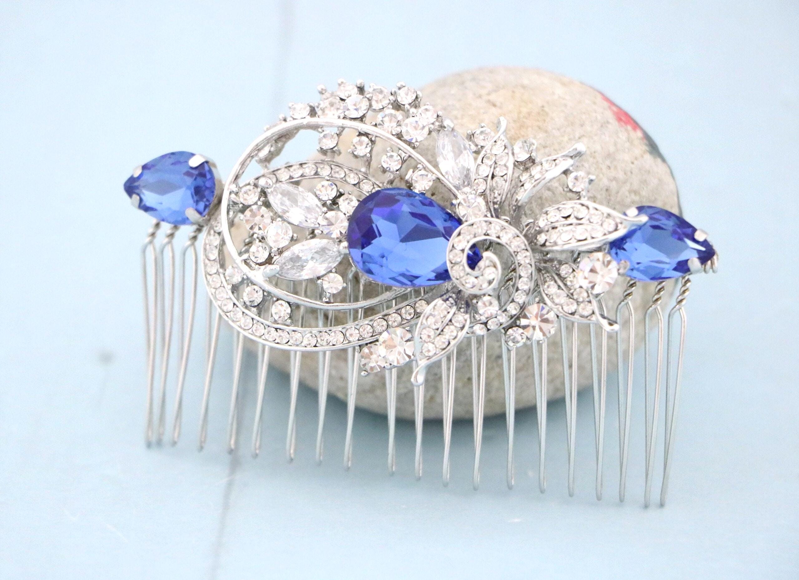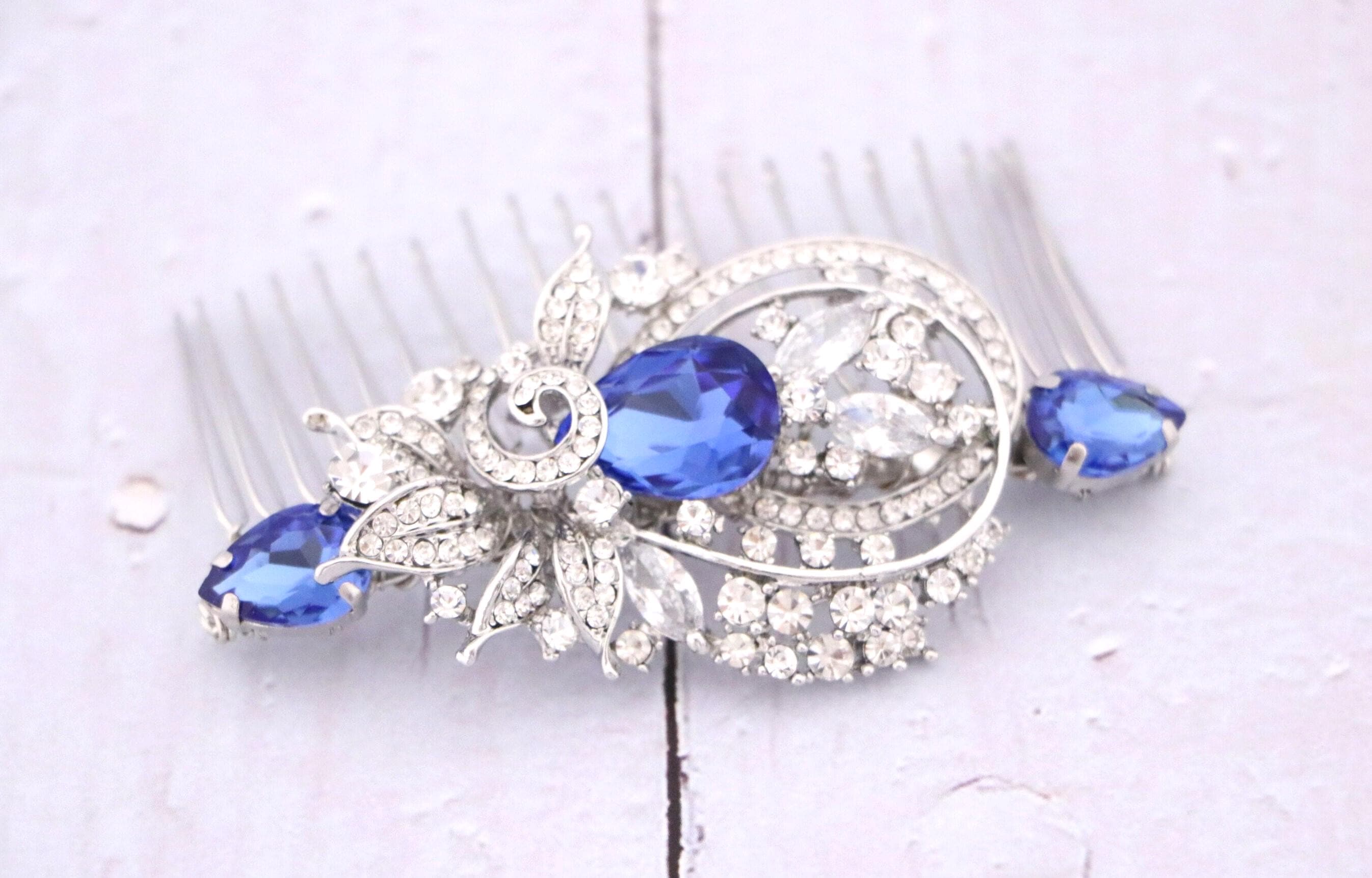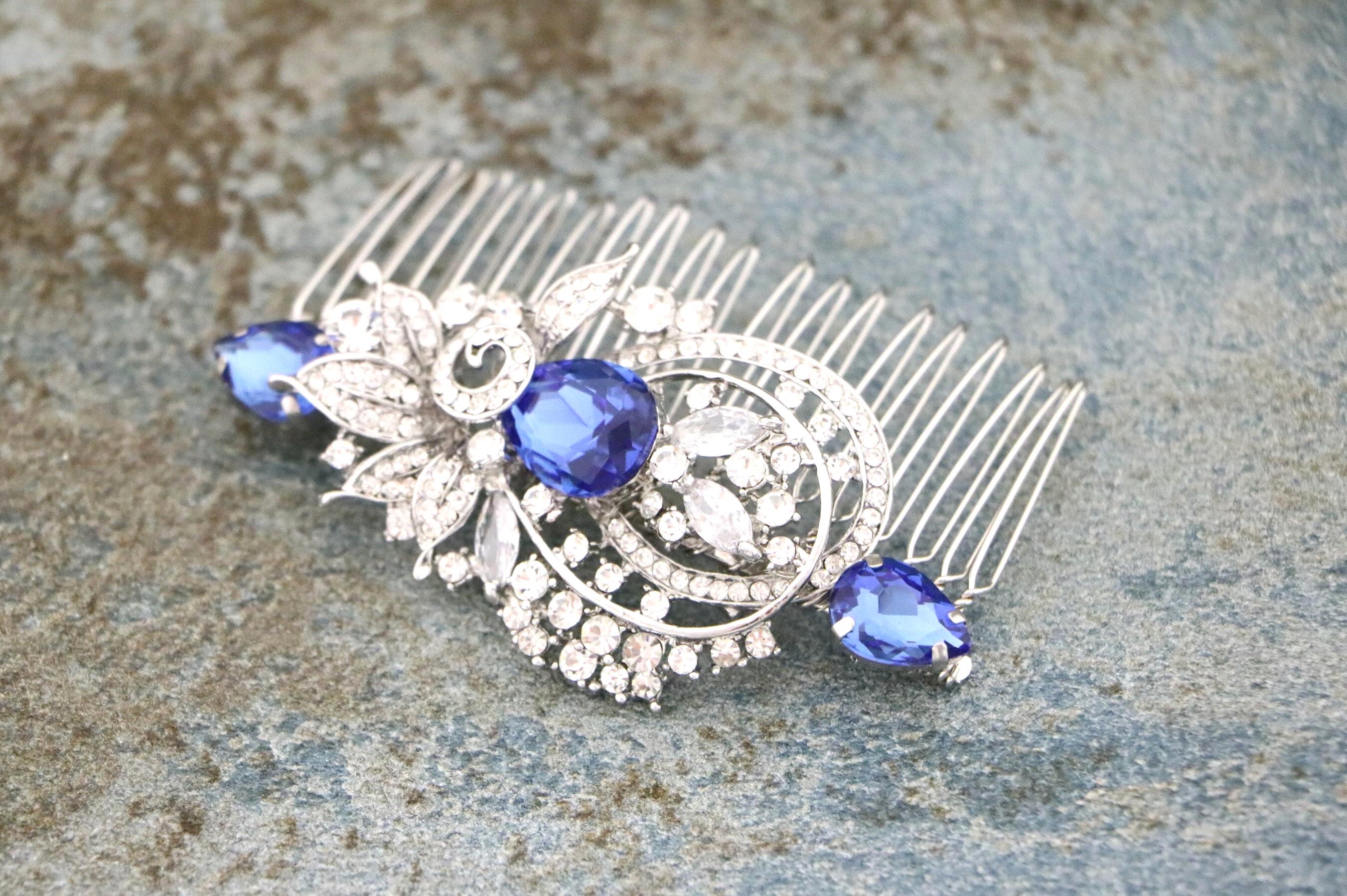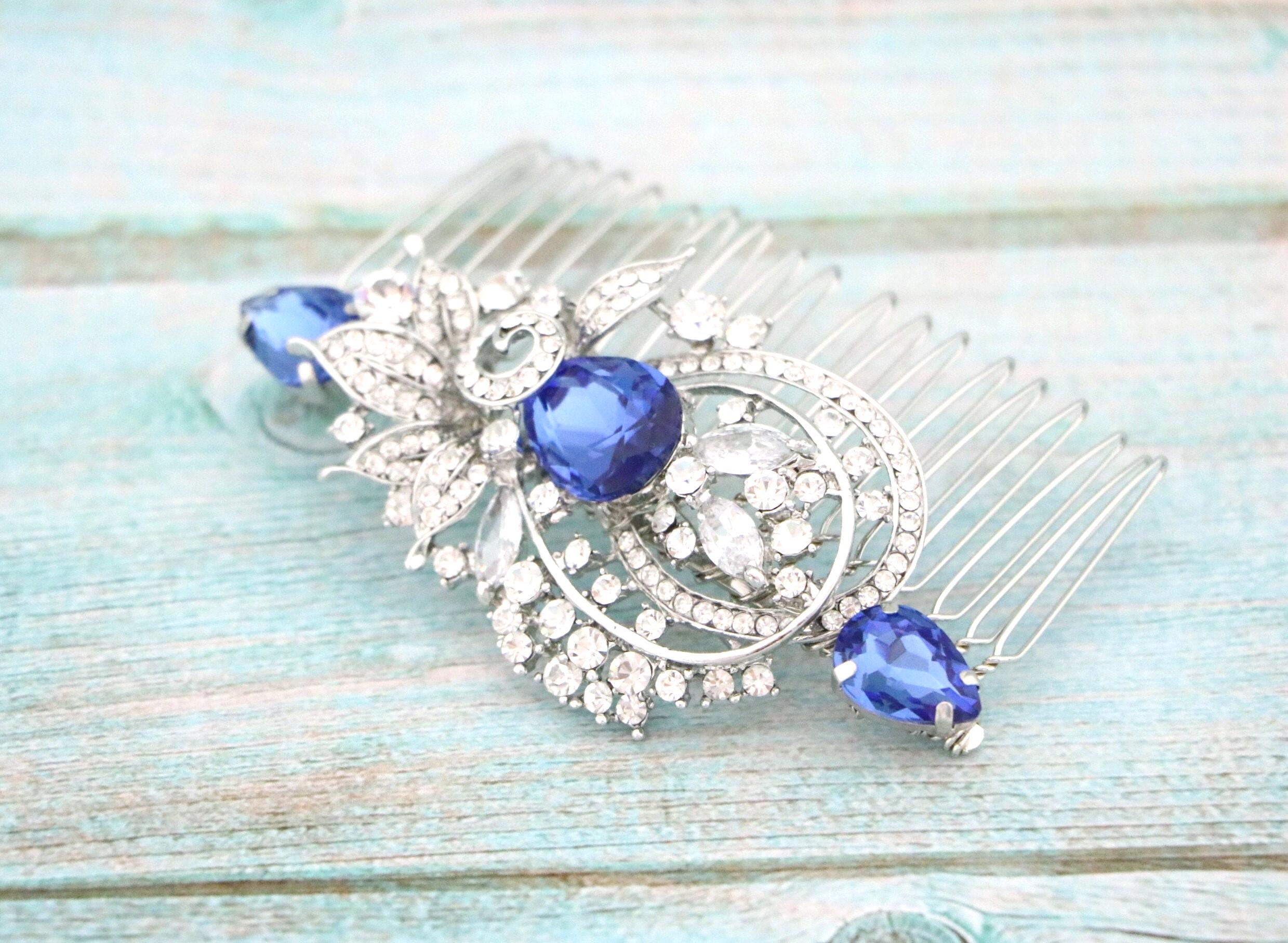 Blue bridal hair comb Something blue hair comb Sapphire blue Crystal hair comb Royal blue wedding Rhinestone hair comb Navy blue hair piece