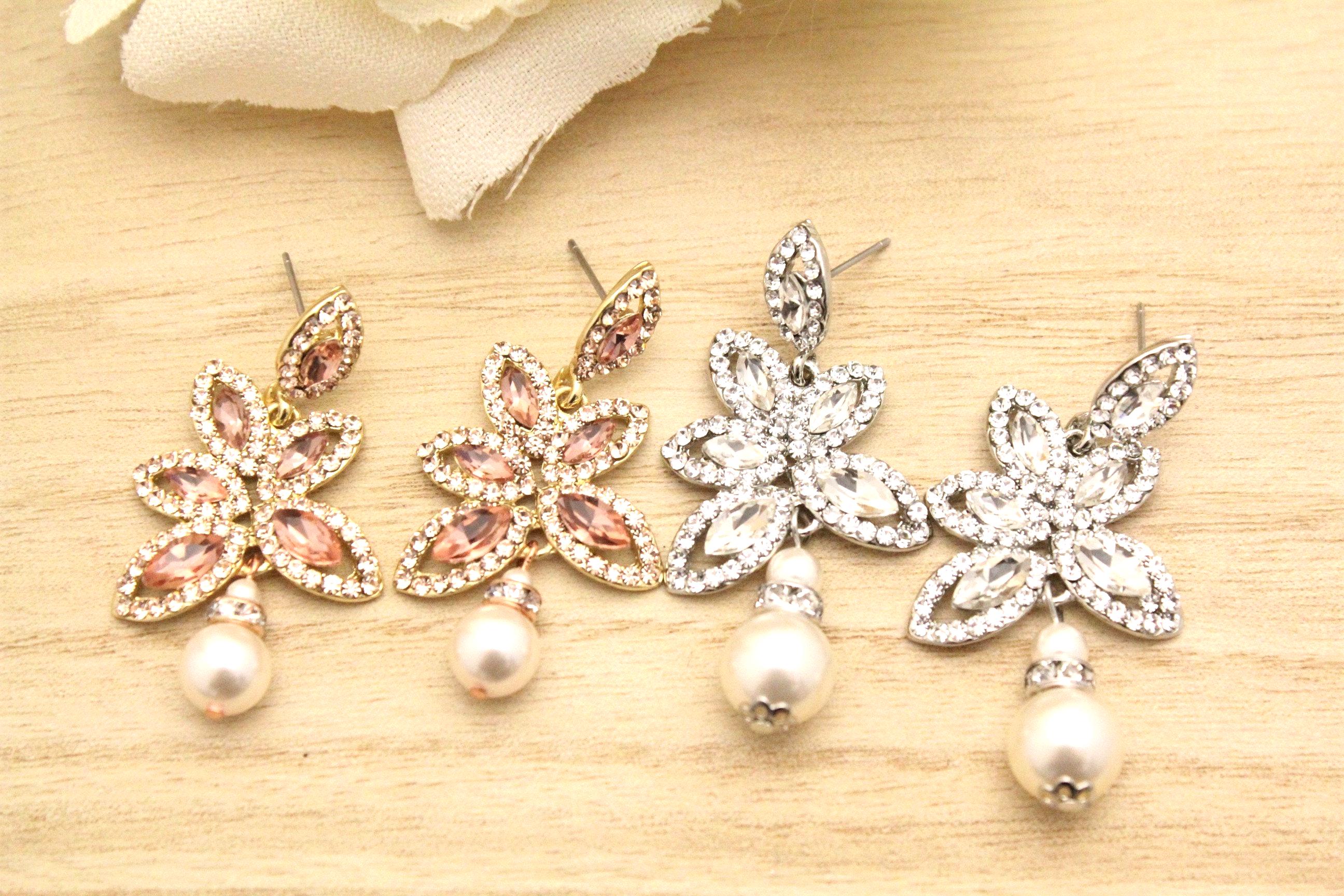 This vintage inspired stunning Pearl and Rhinestone earring is beautiful addition to your wedding day.
