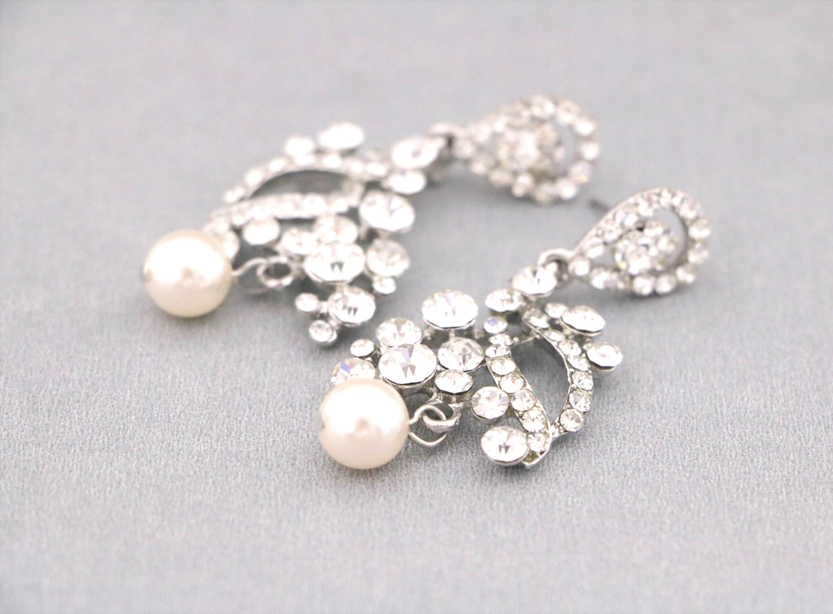 This vintage inspired stunning Pearl and Rhinestone earring is beautiful addition to your wedding day.