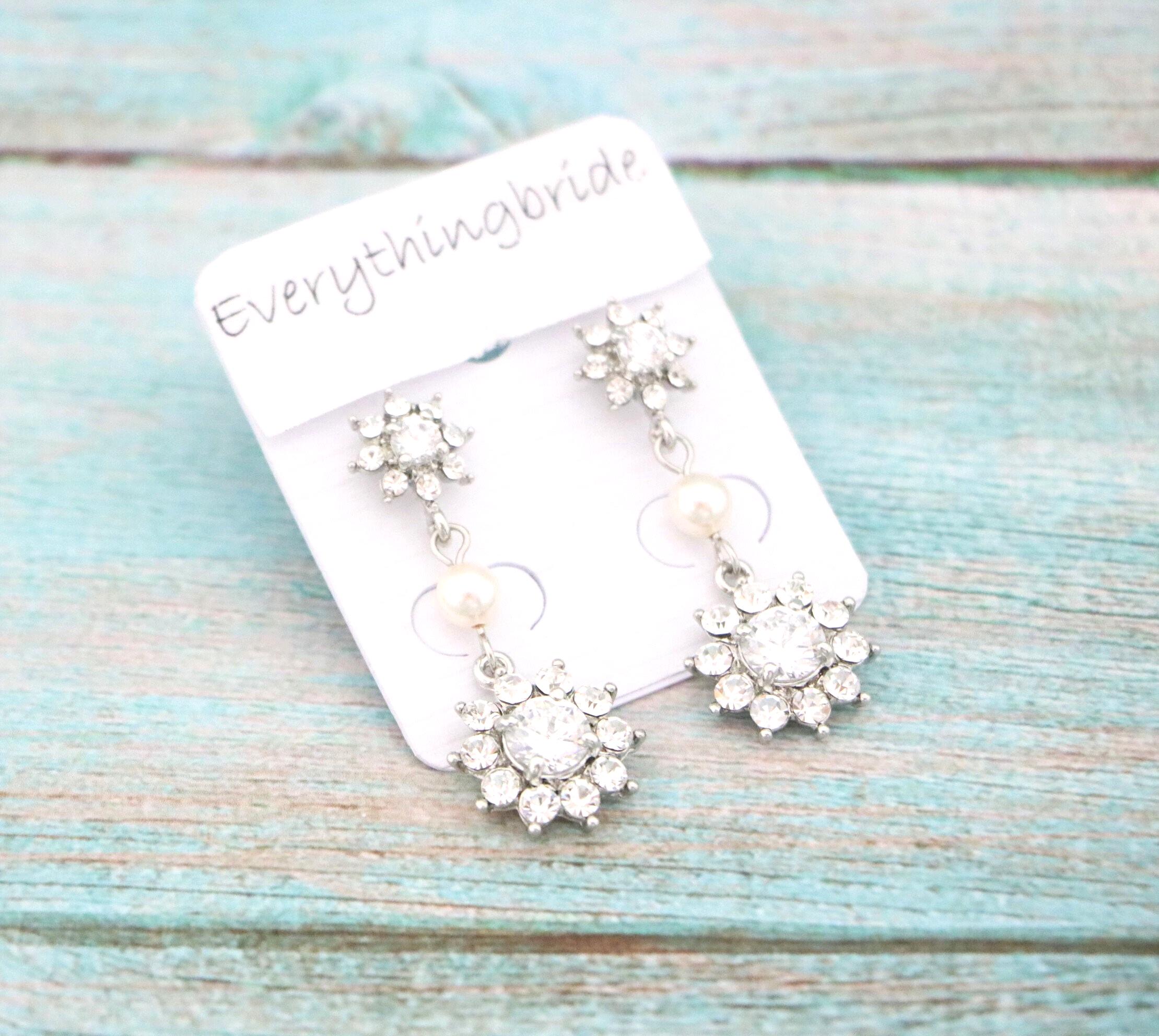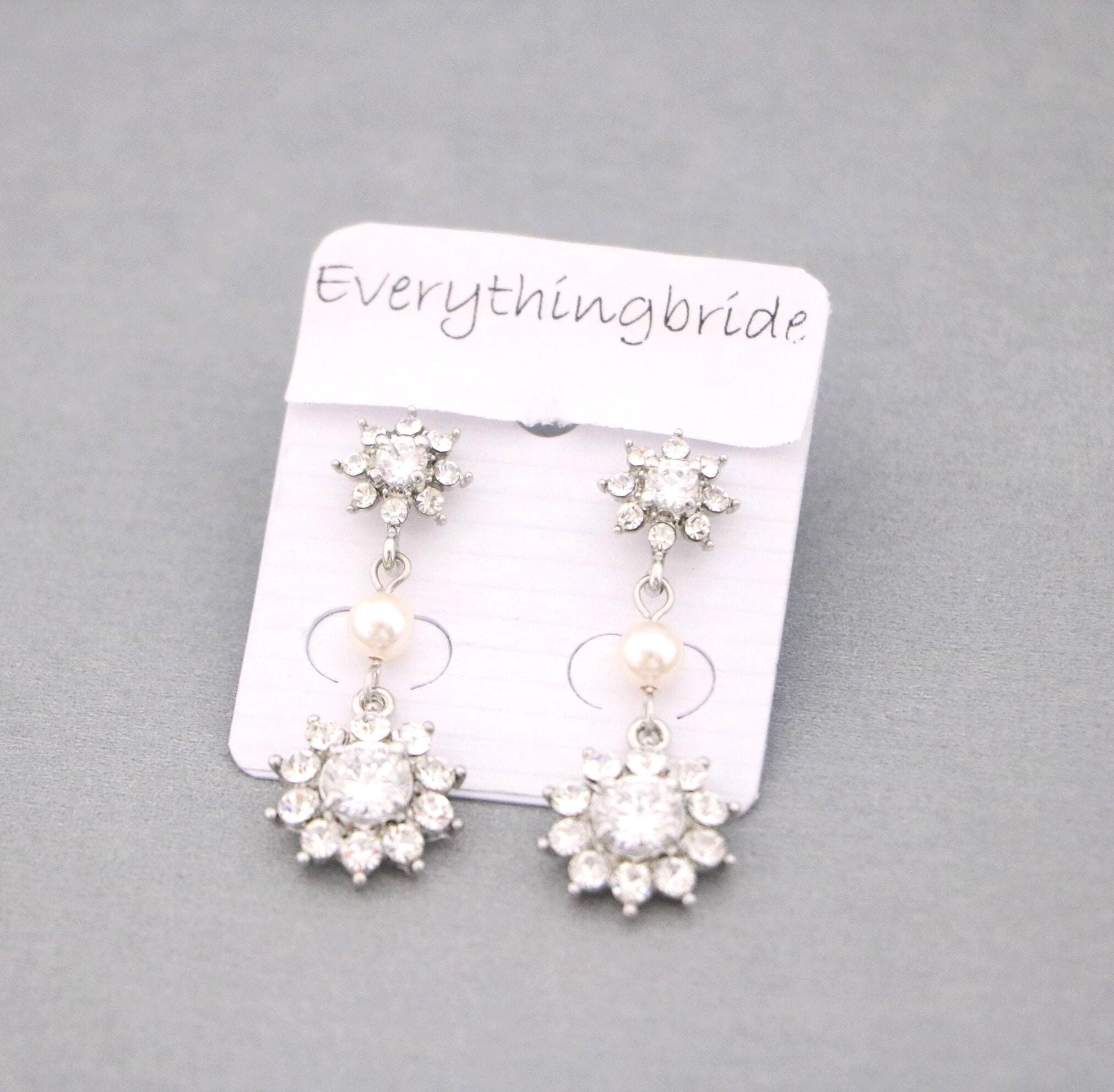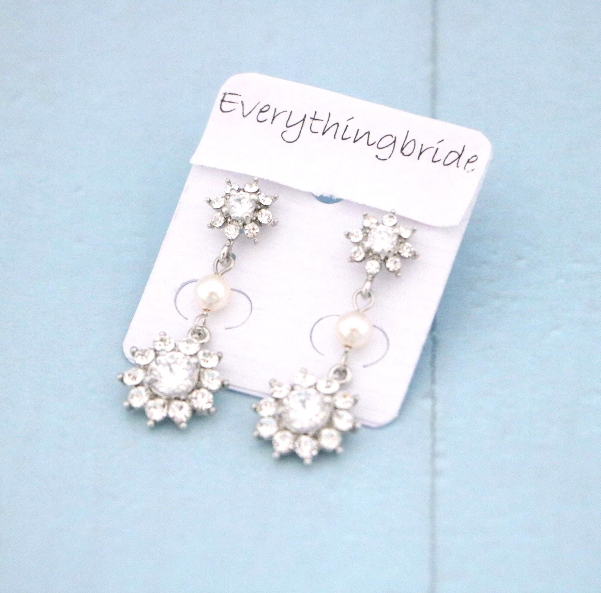 This vintage inspired stunning Pearl and Rhinestone earring is beautiful addition to your wedding day.