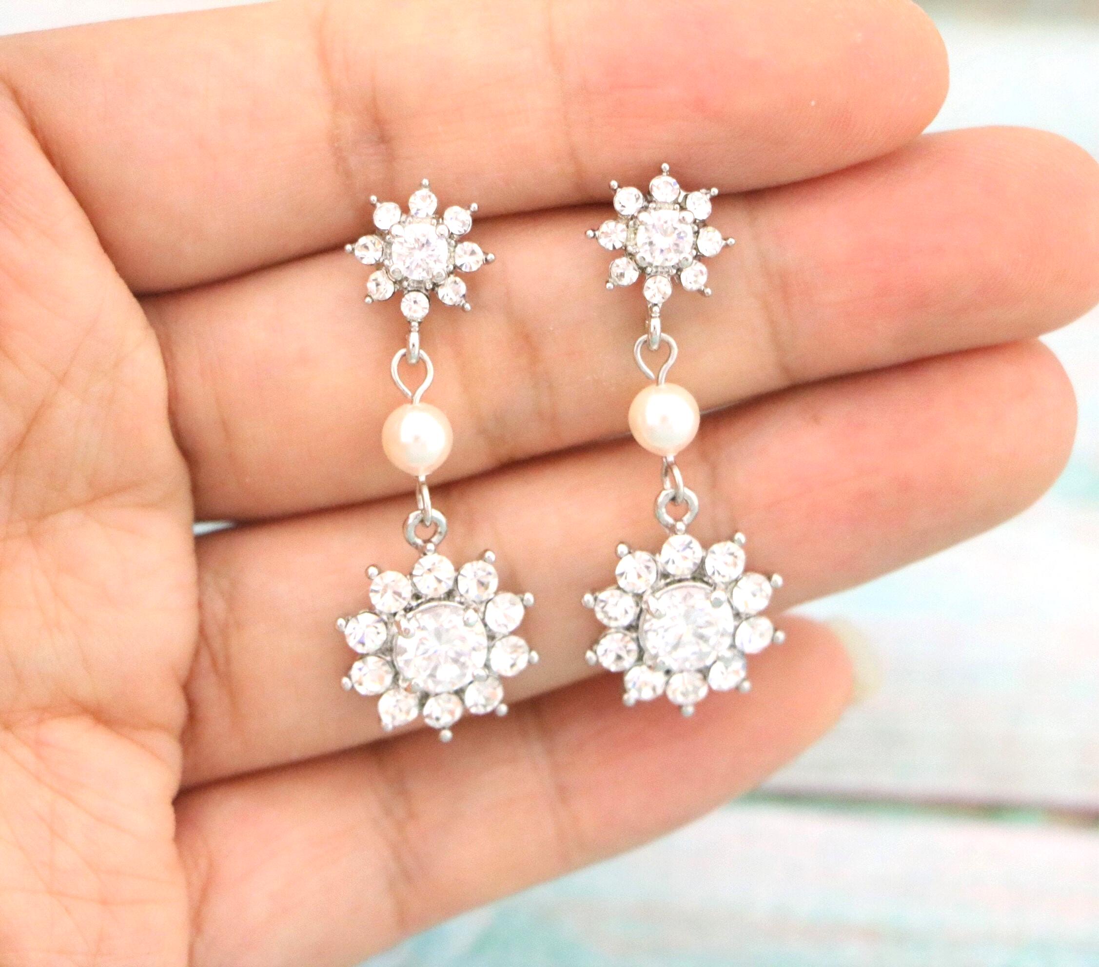 Bridal Earrings, Wedding Earrings, Swarovski Pearl Drop Dangle Earrings, Vintage Style Earrings, Old Hollywood Wedding Jewelry