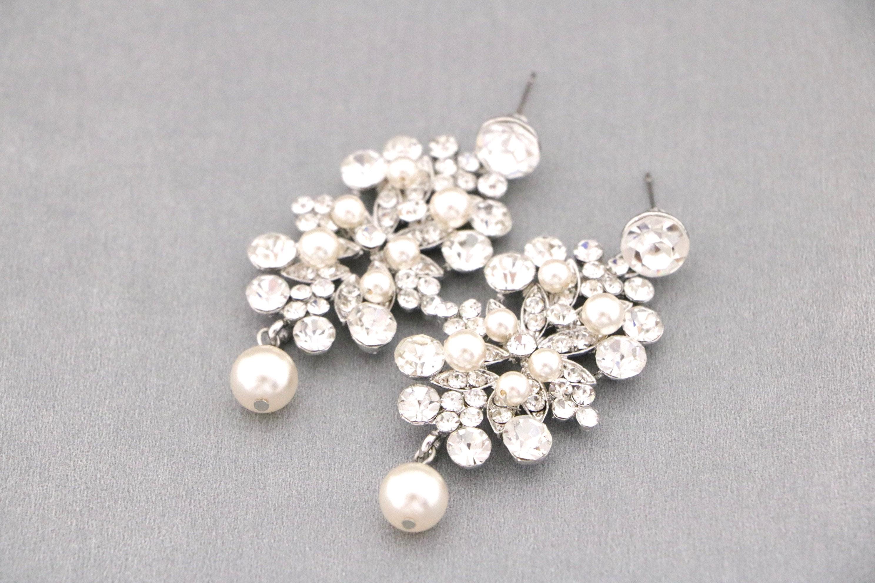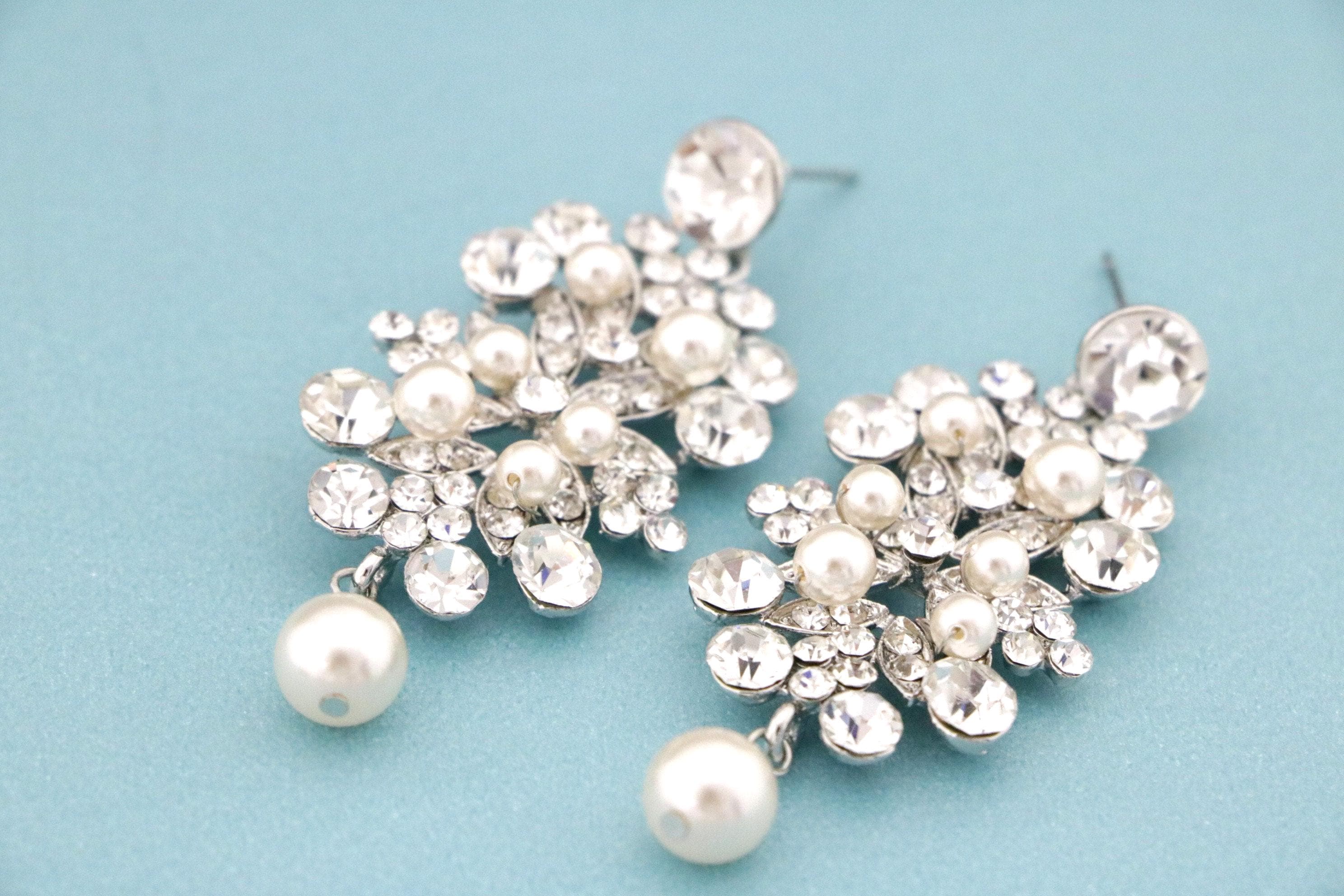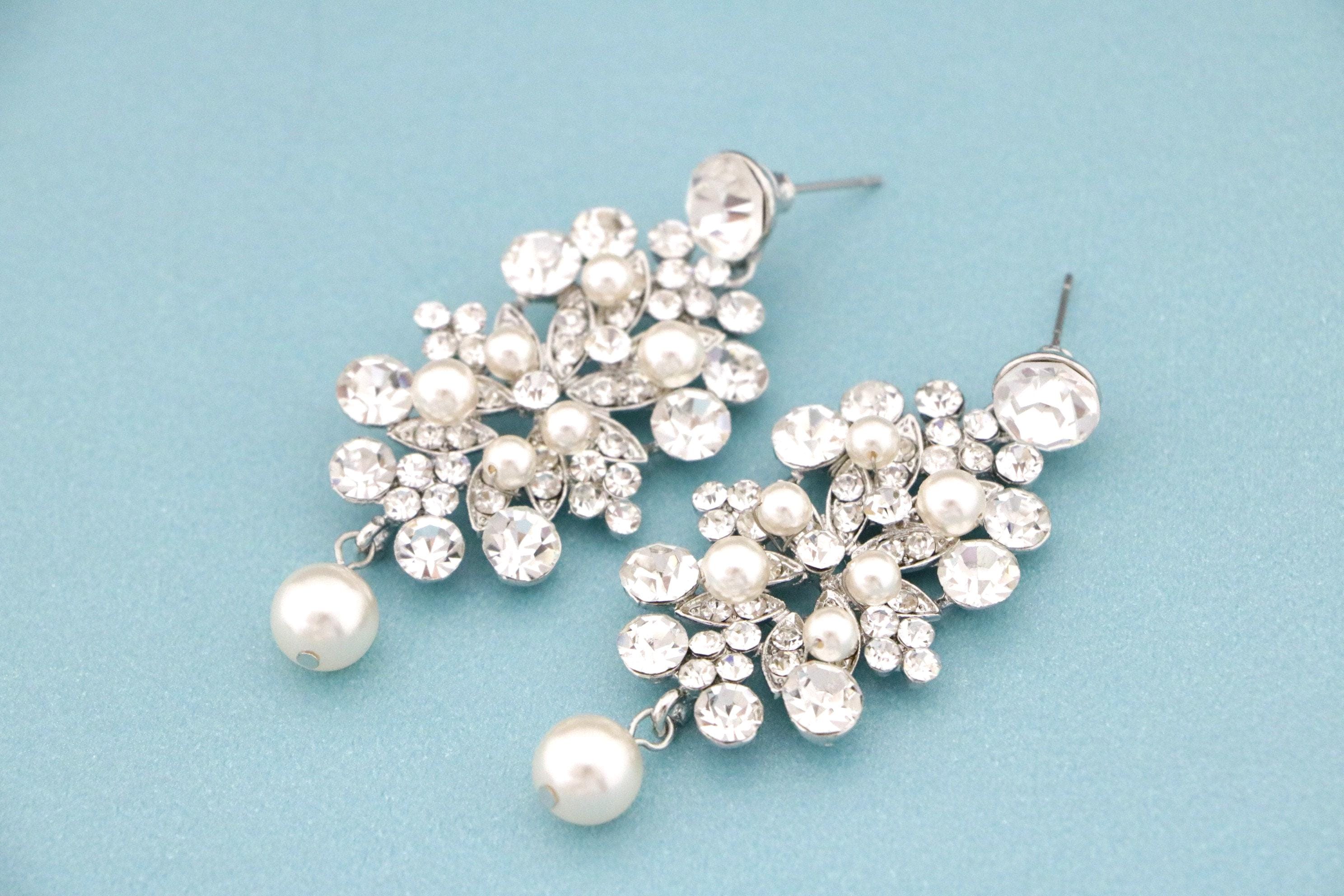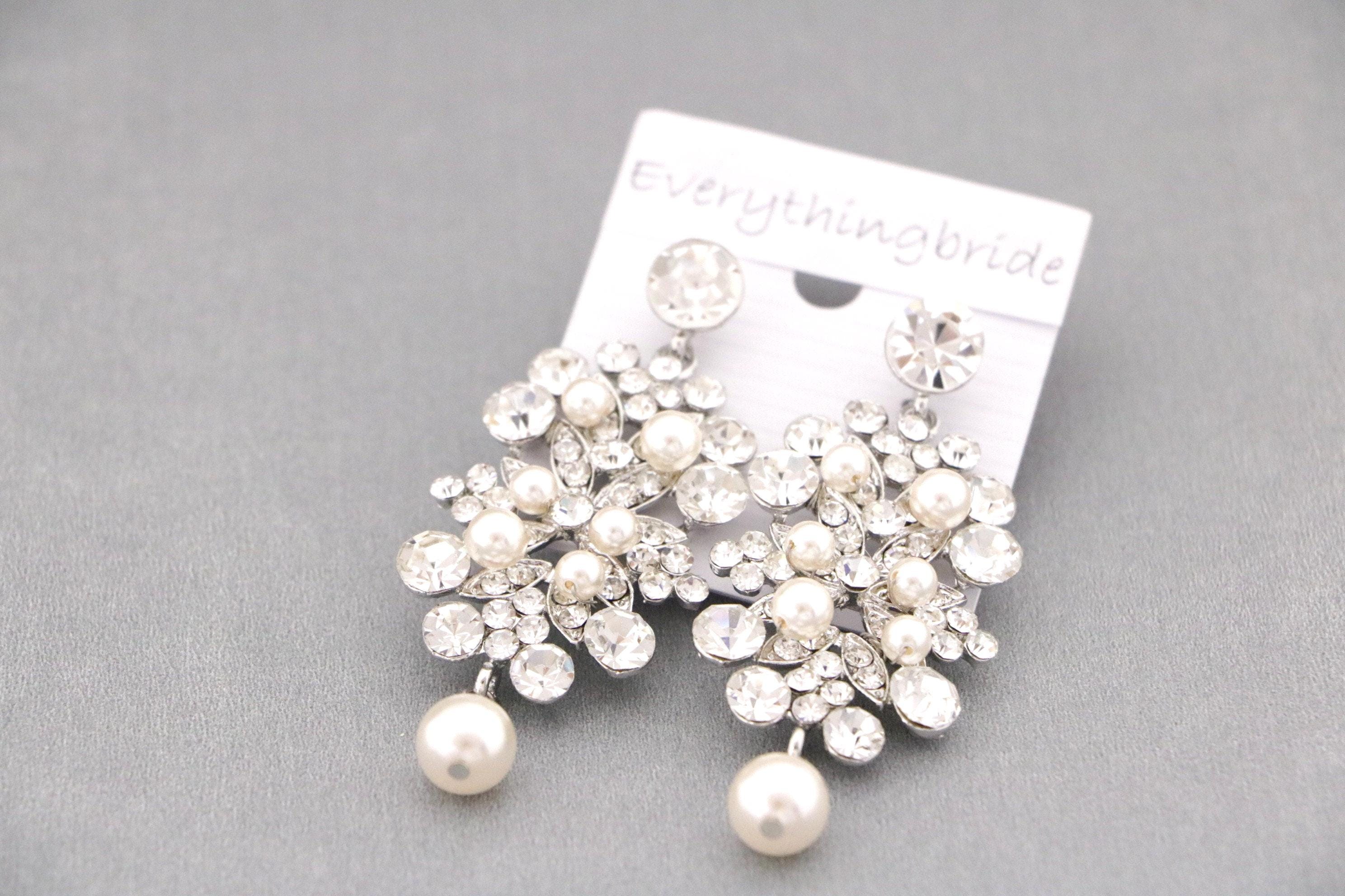This vintage inspired stunning Pearl and Rhinestone earring is beautiful addition to your wedding day.