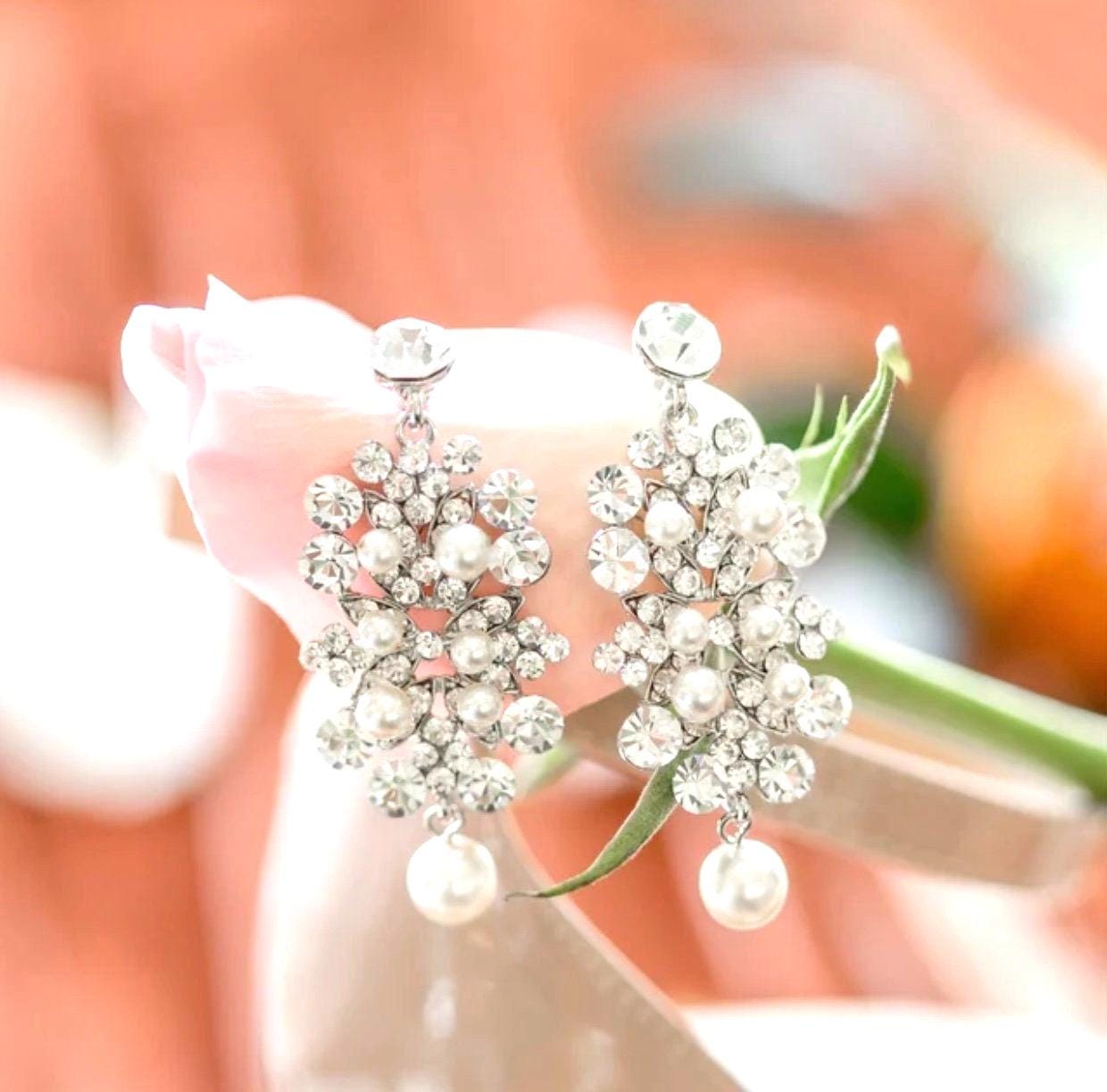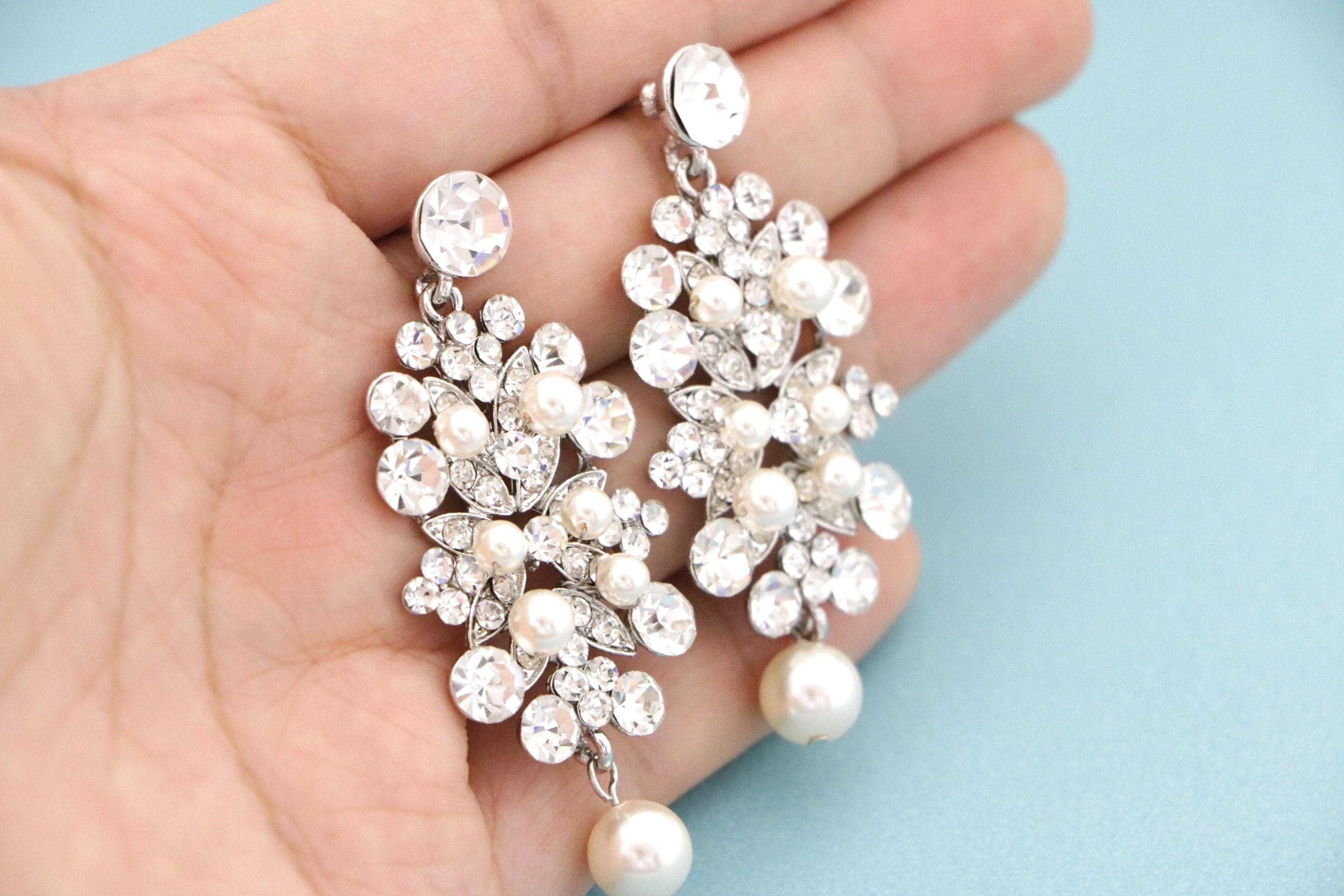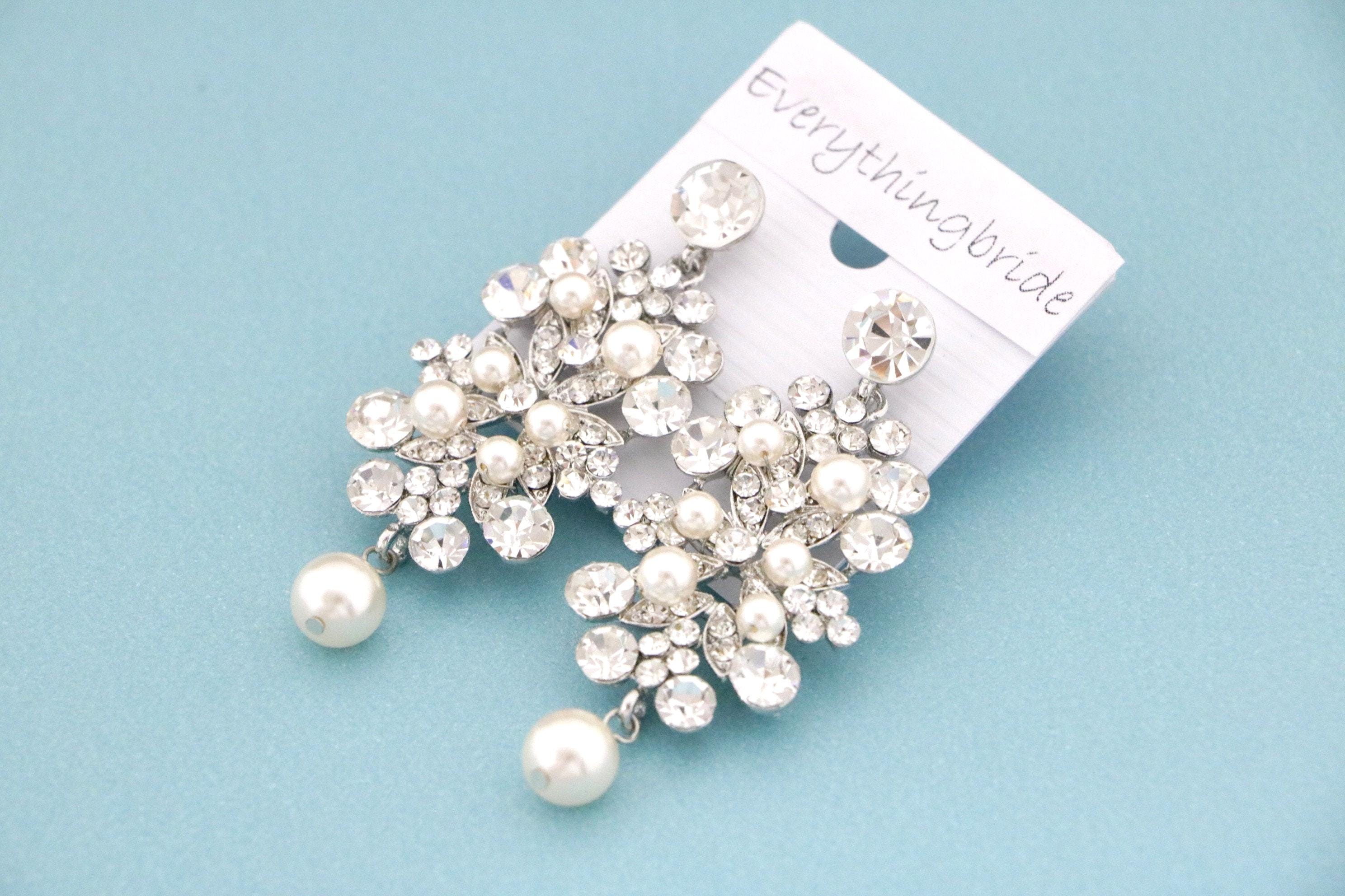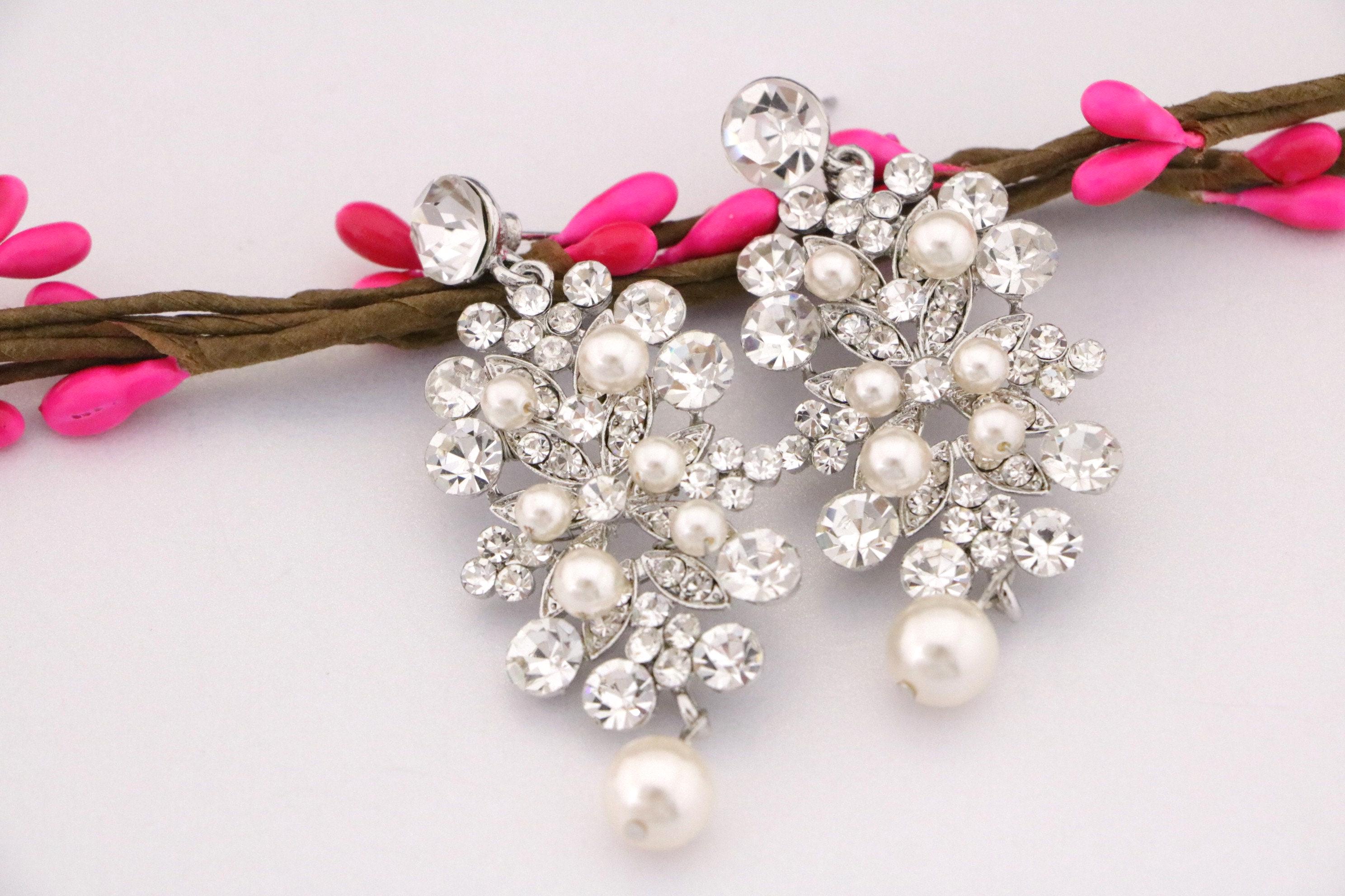 This vintage inspired stunning Pearl and Rhinestone earring is beautiful addition to your wedding day.