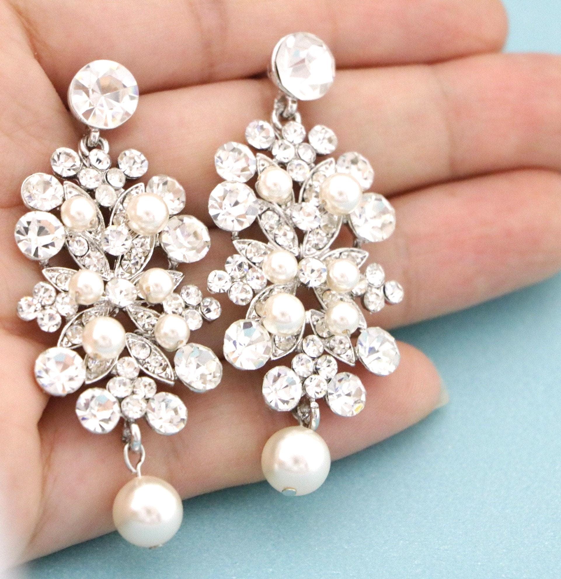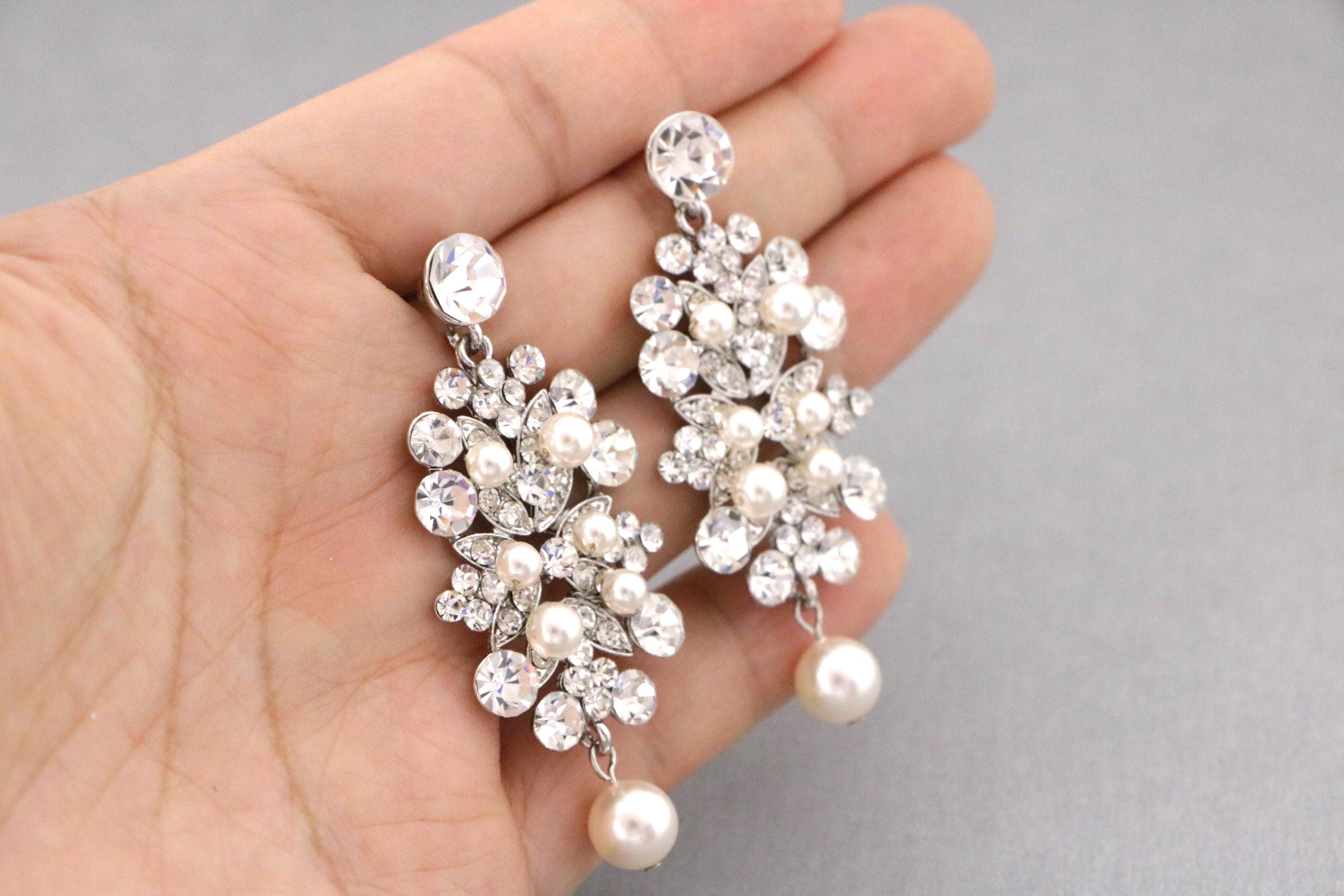 Bridal Jewelry , Swarovski white pearl and Ivory pearl, Fresh water pearl , Bridal earrings, wedding earrings, Bridesmaid earrings, wedding jewelry, Victorian earrings, pearl & crystal earrings, chandelier earrings