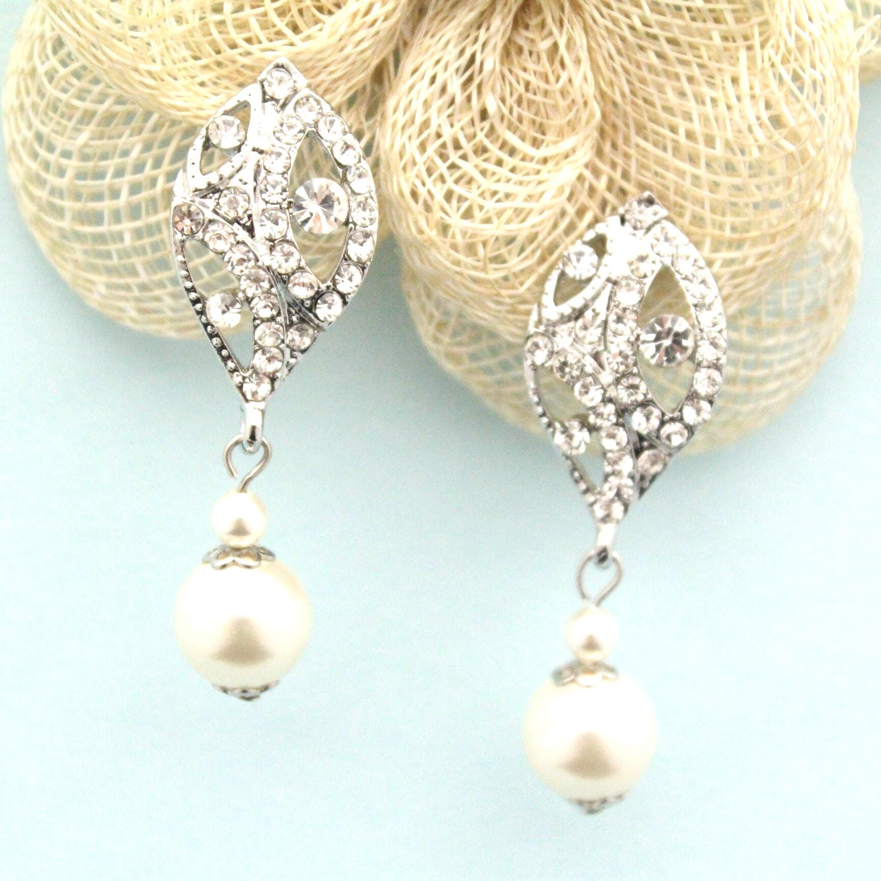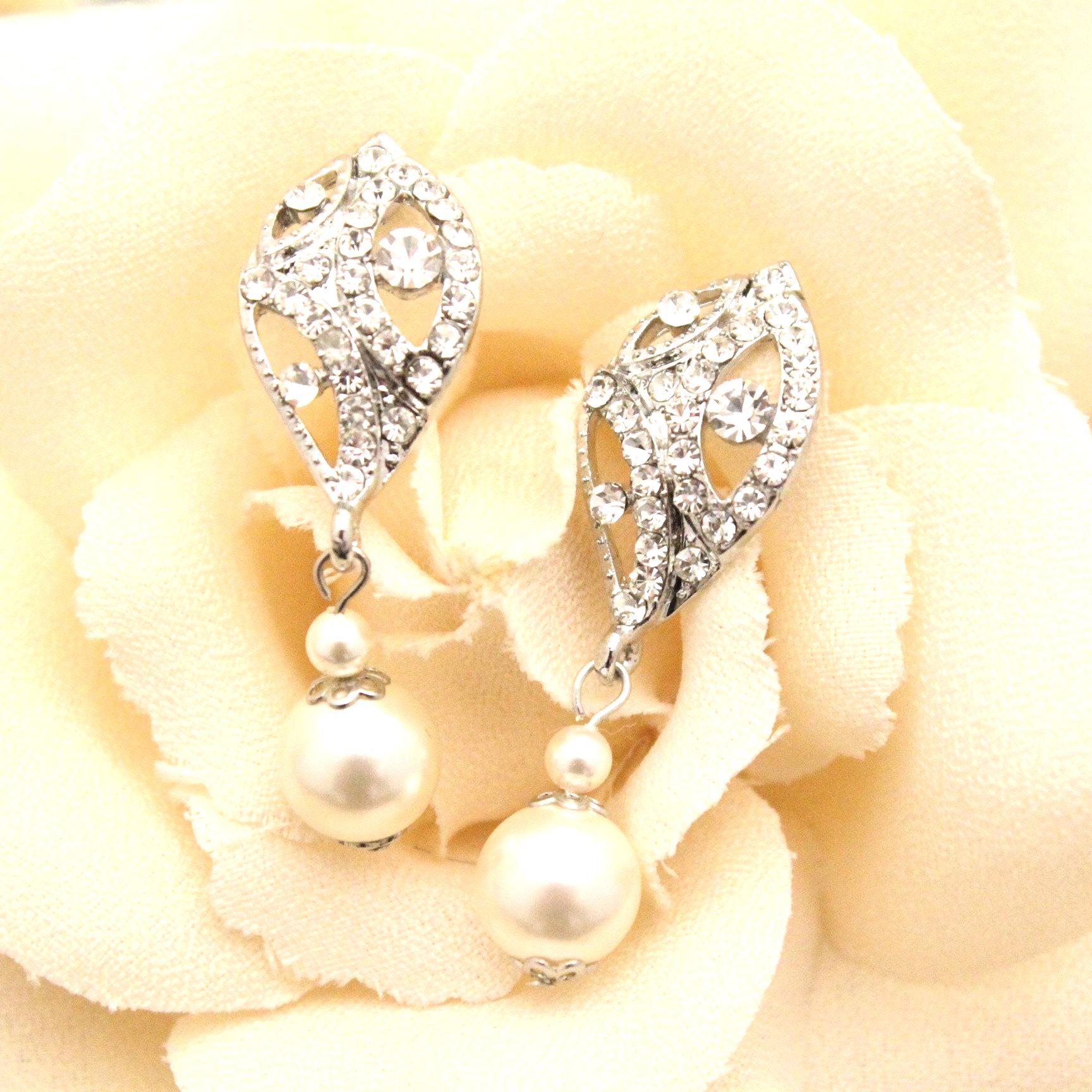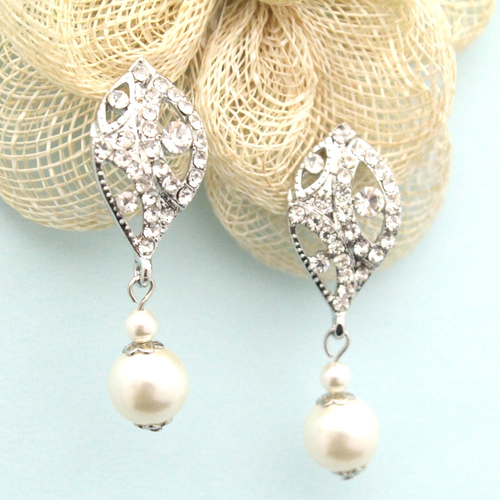 This vintage inspired stunning Pearl and Rhinestone earring is beautiful addition to your wedding day.