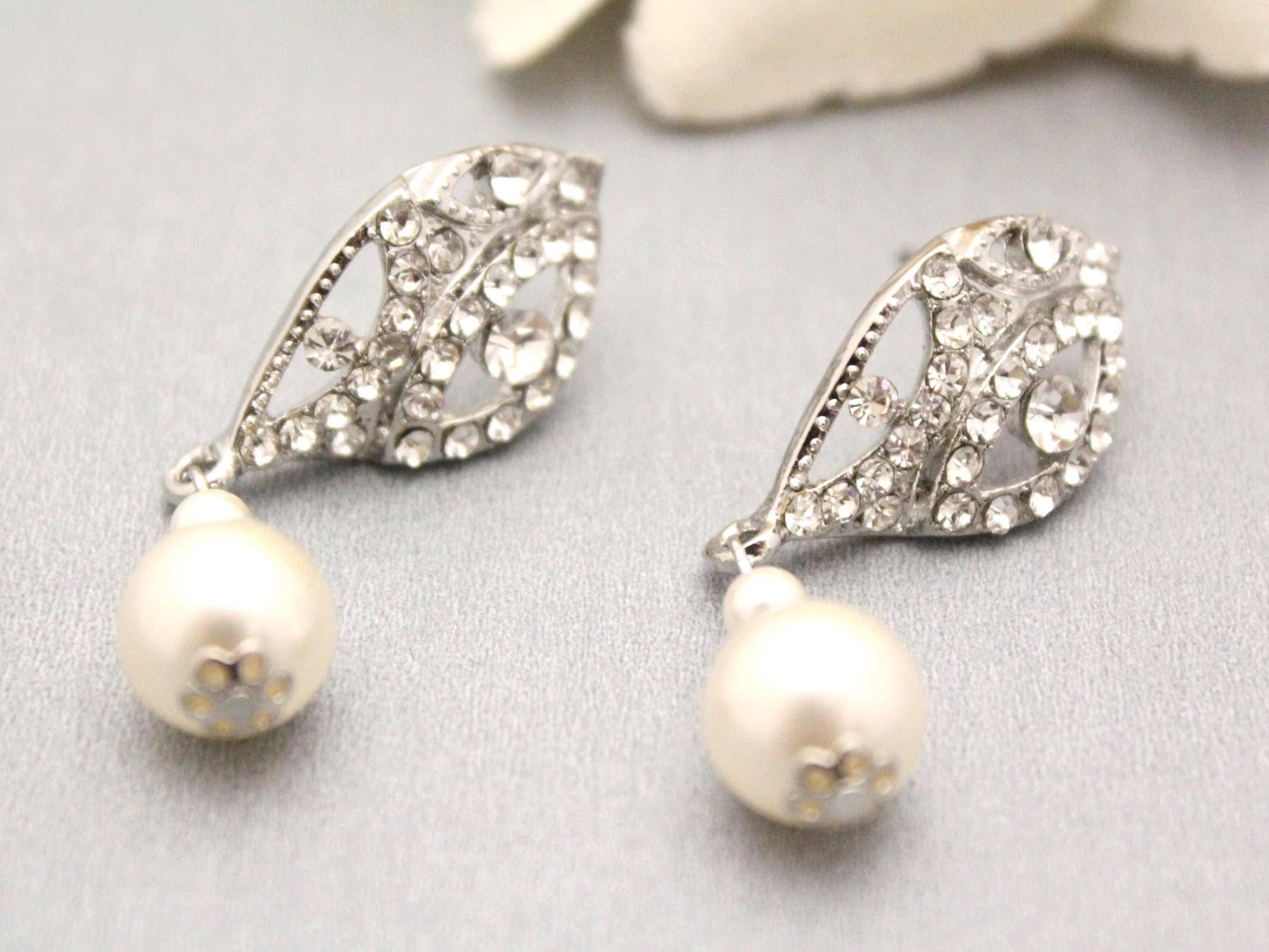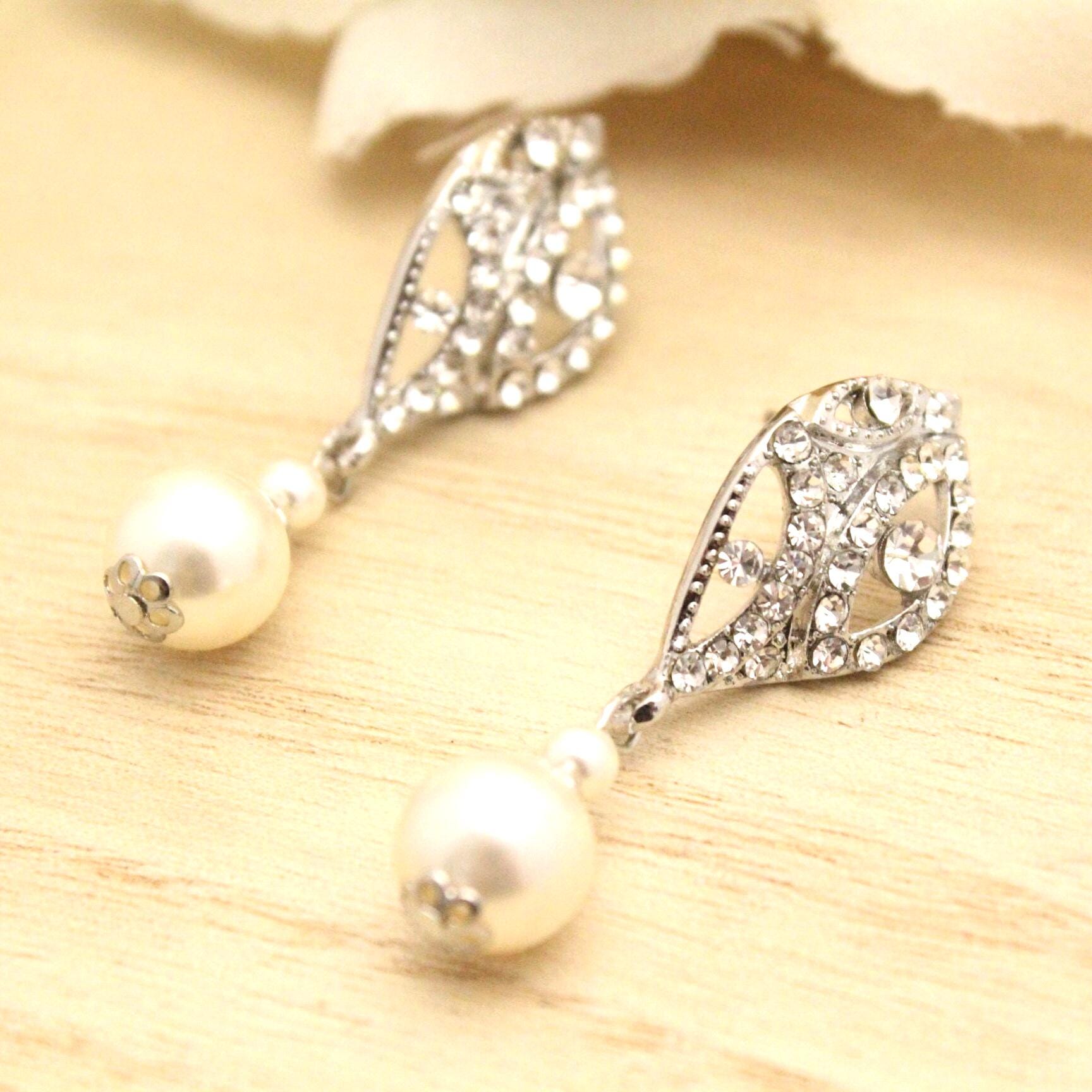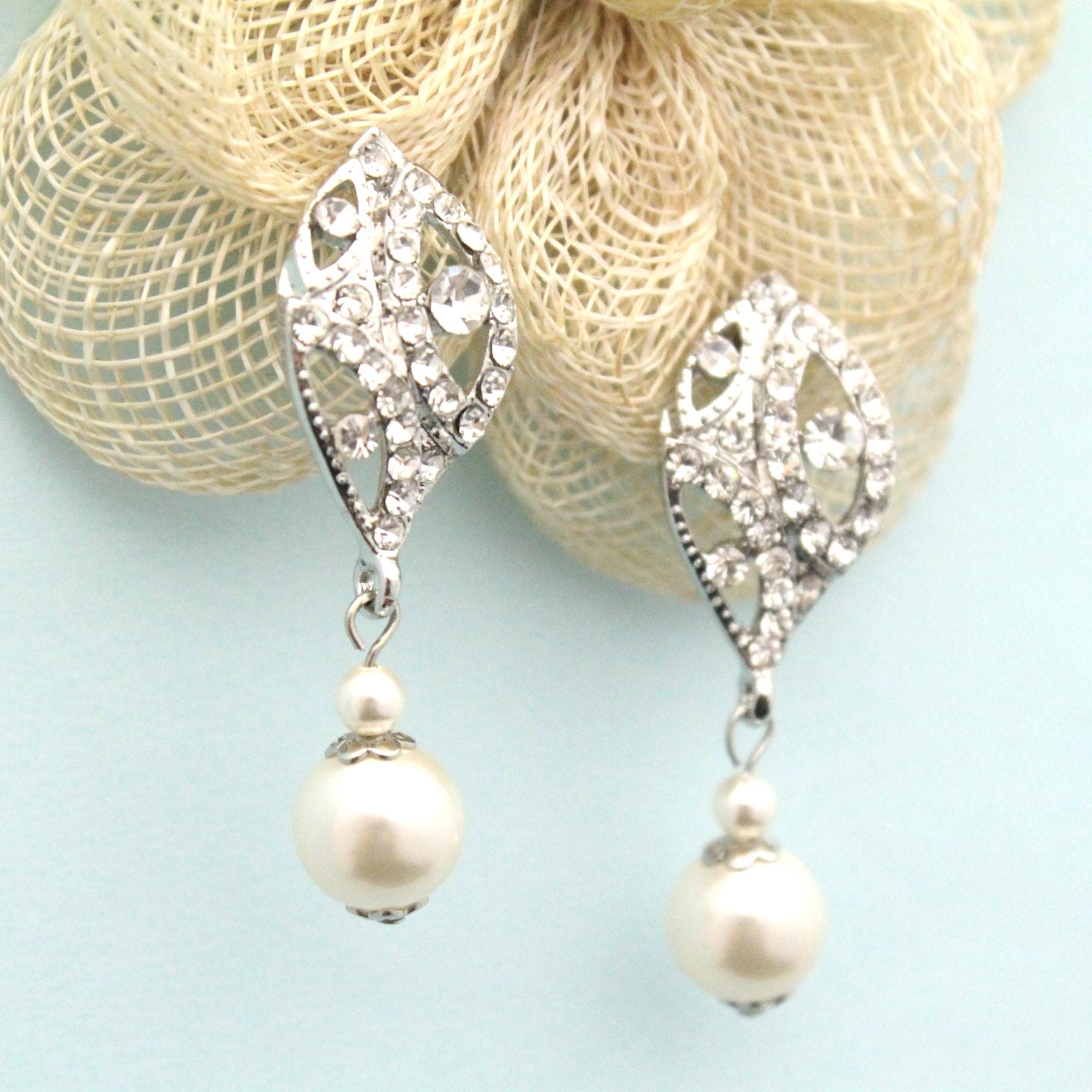 This vintage inspired stunning Pearl and Rhinestone earring is beautiful addition to your wedding day.