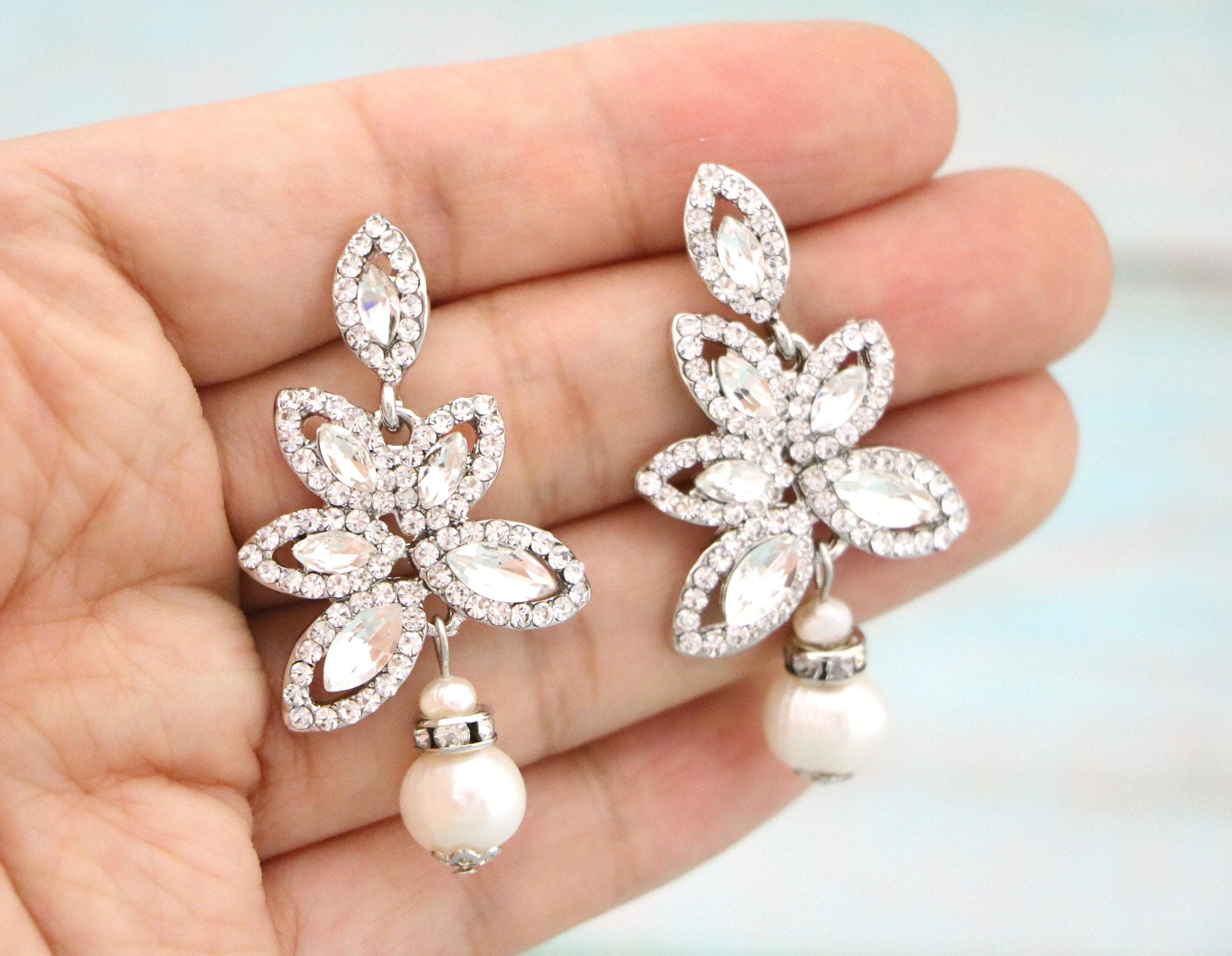 This vintage inspired stunning Pearl and Rhinestone earring is beautiful addition to your wedding day.
