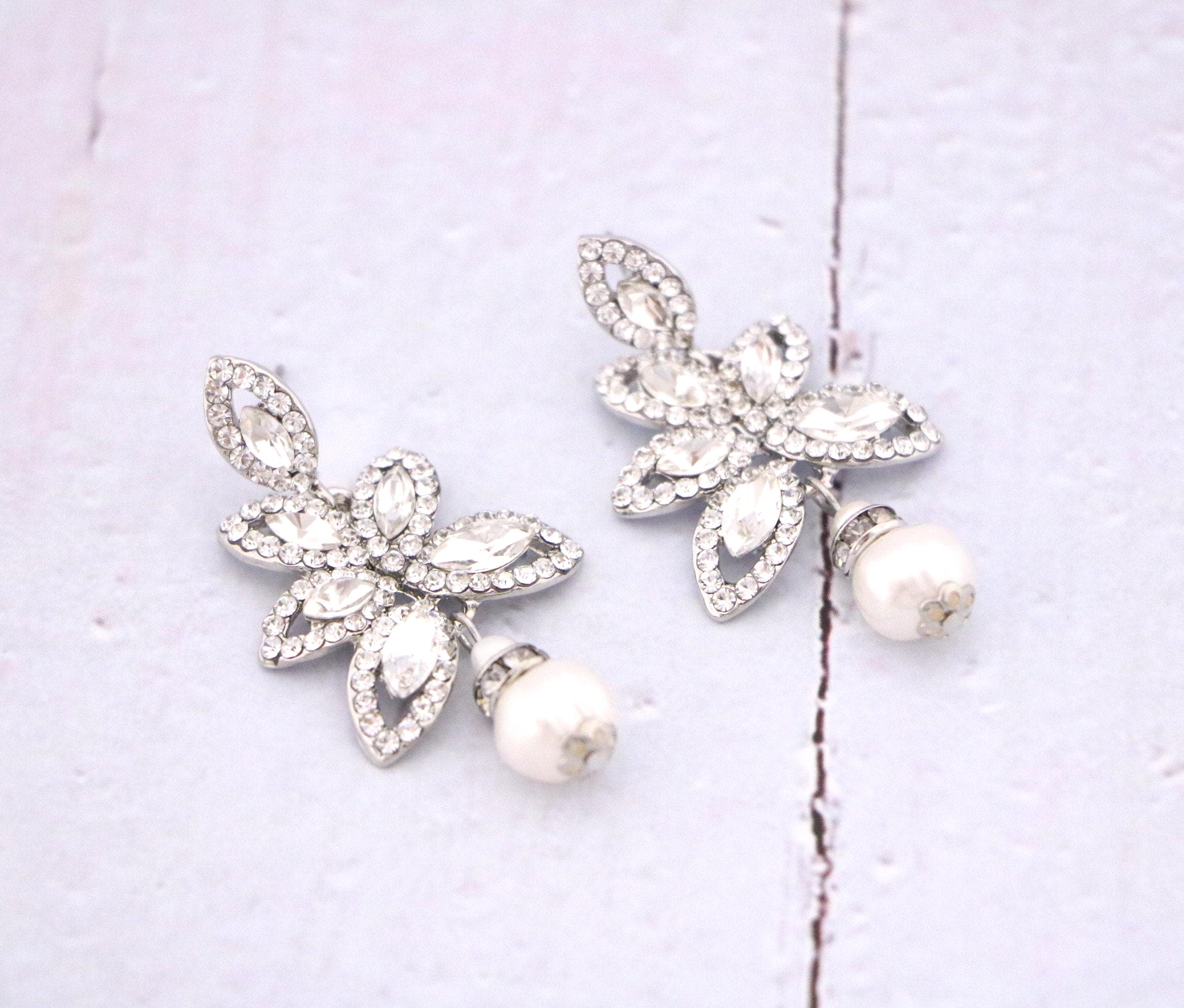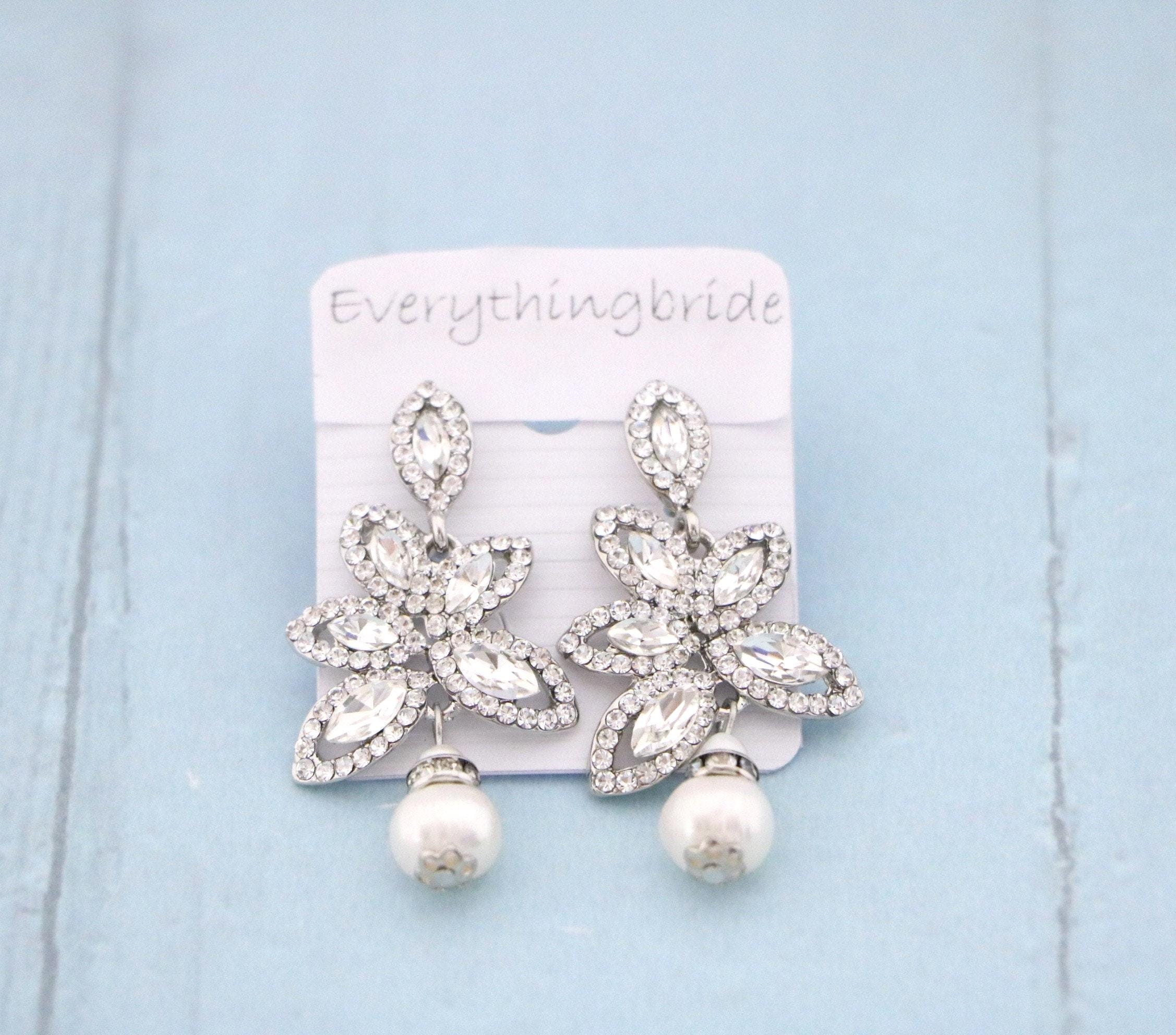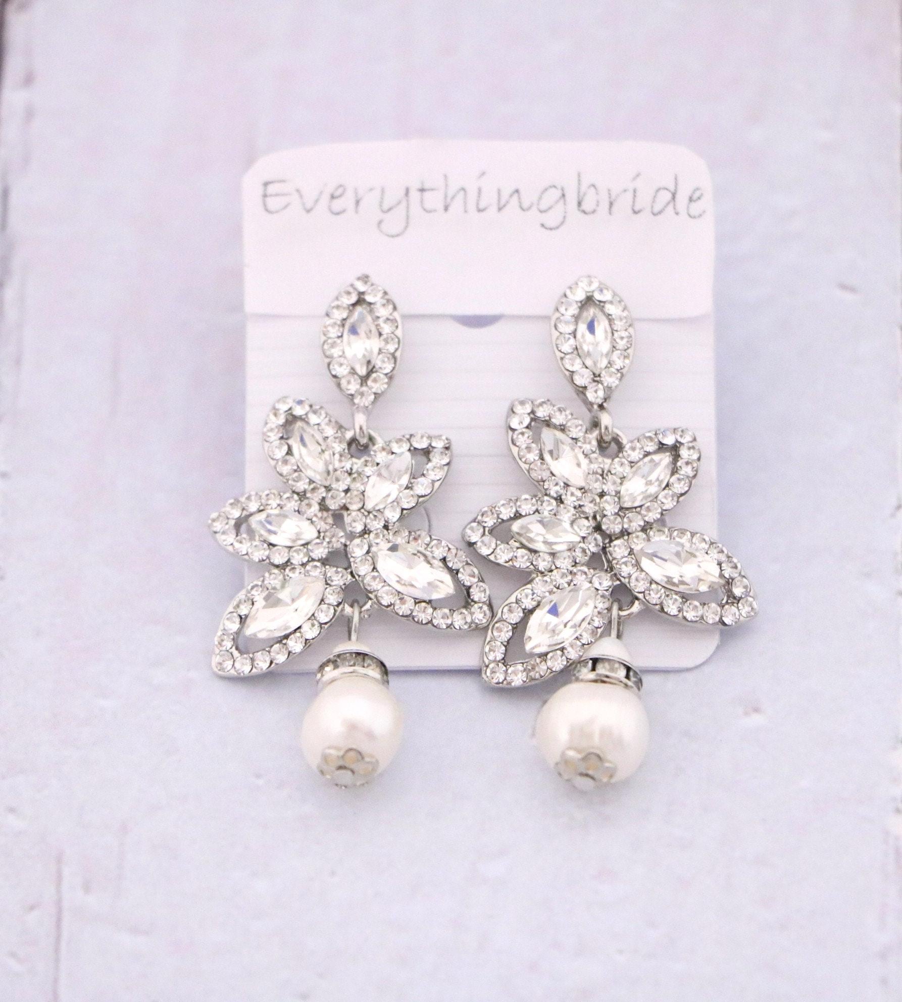 This vintage inspired stunning Pearl and Rhinestone earring is beautiful addition to your wedding day.