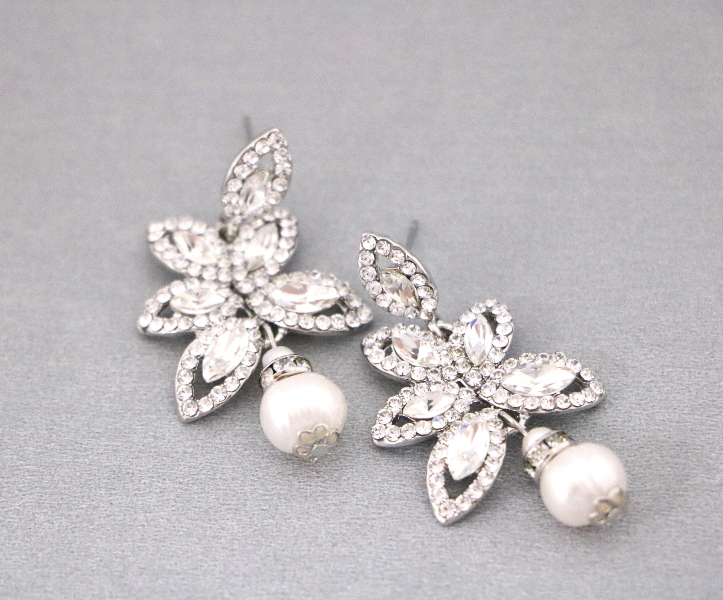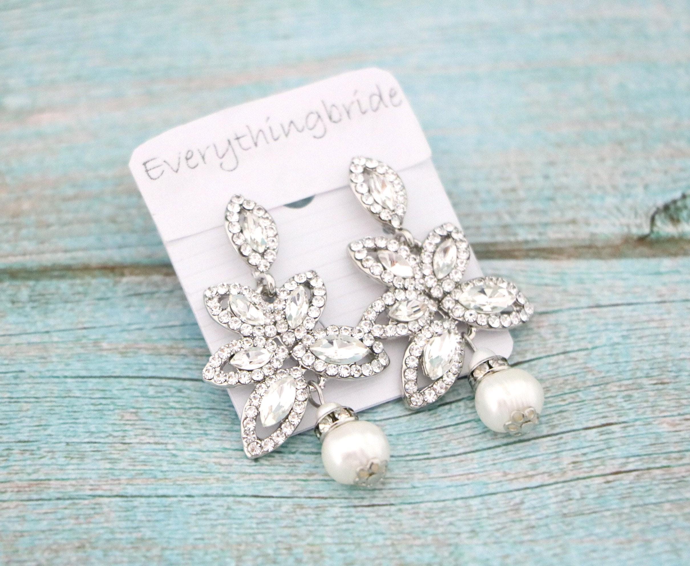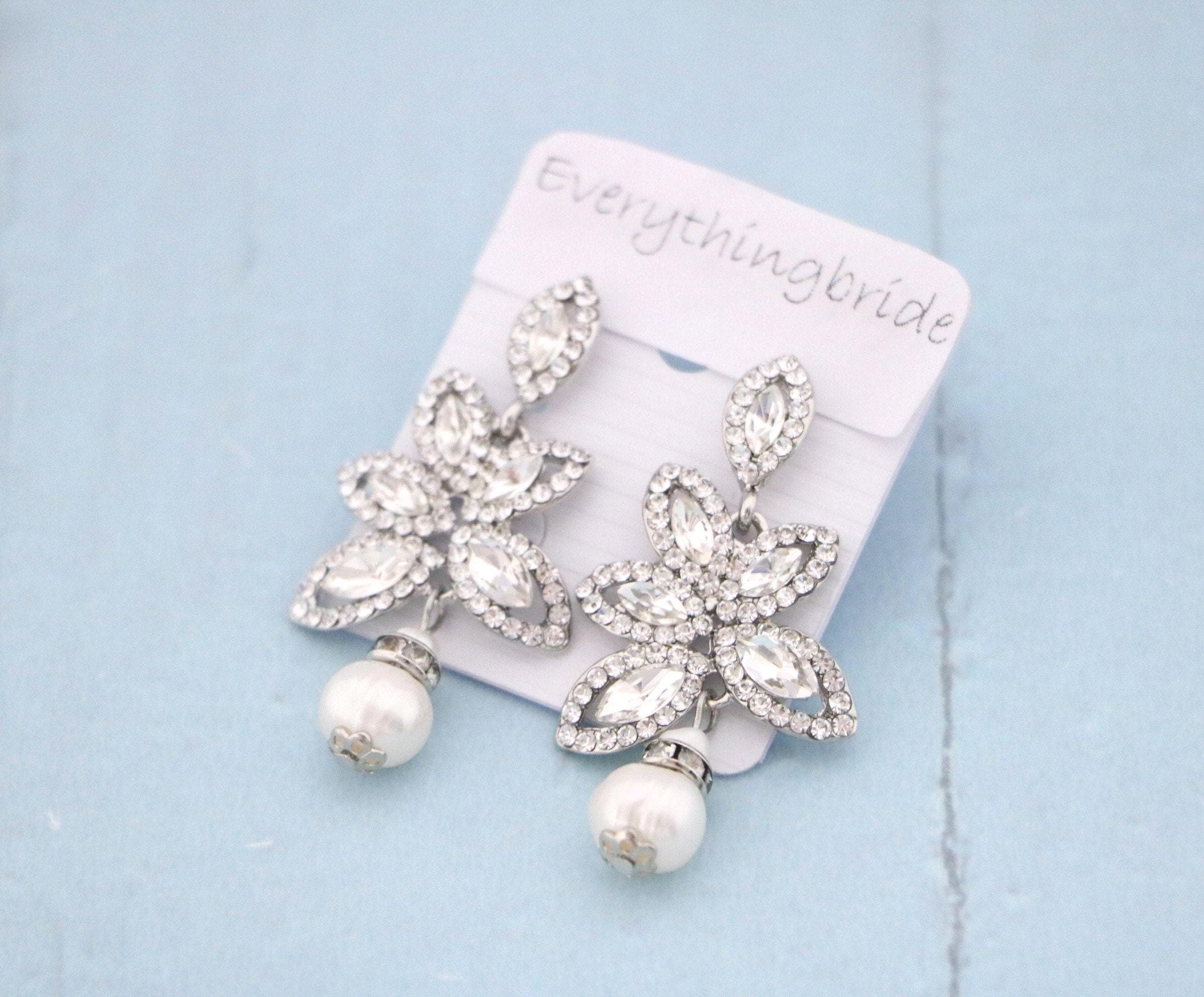This vintage inspired stunning Pearl and Rhinestone earring is beautiful addition to your wedding day.