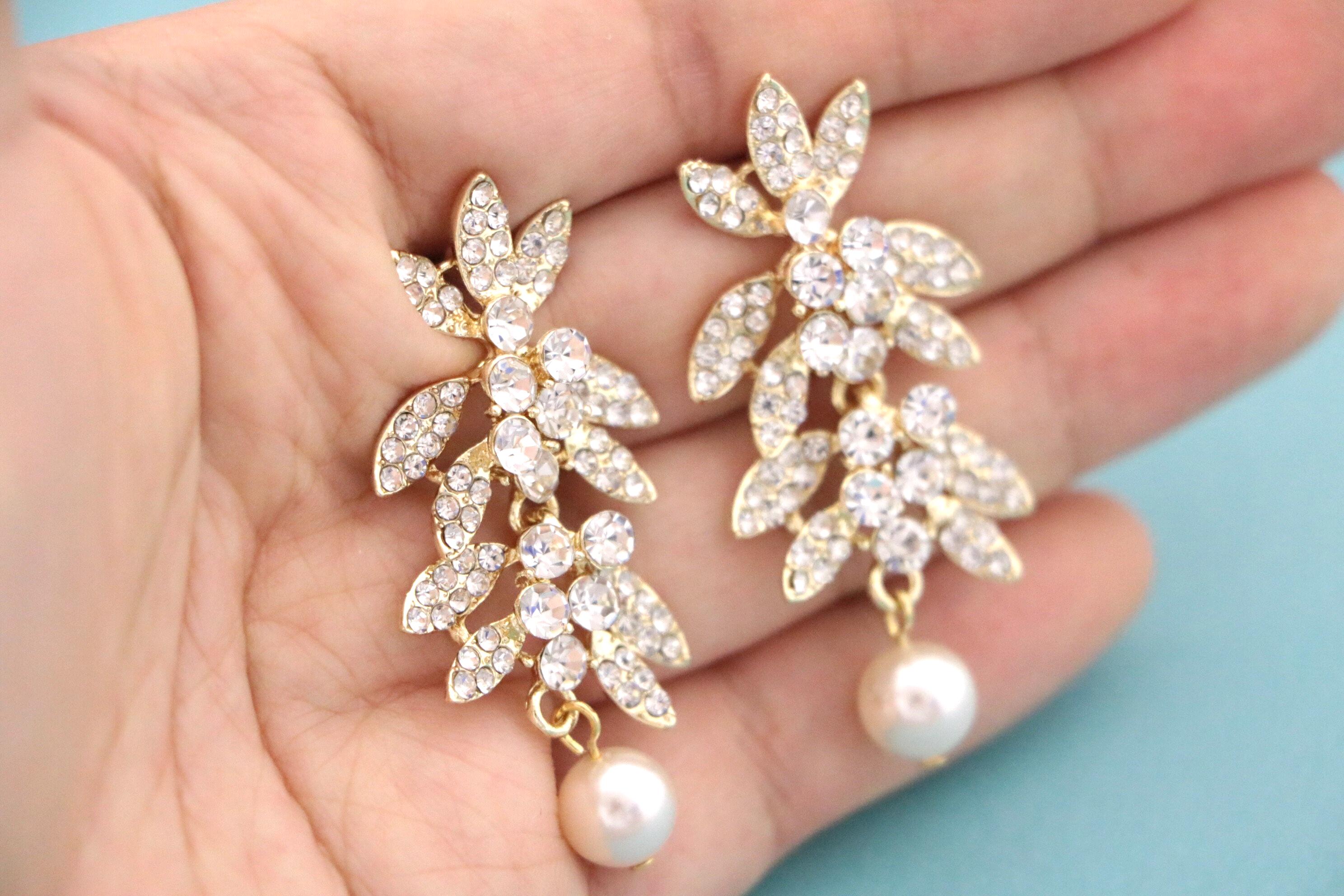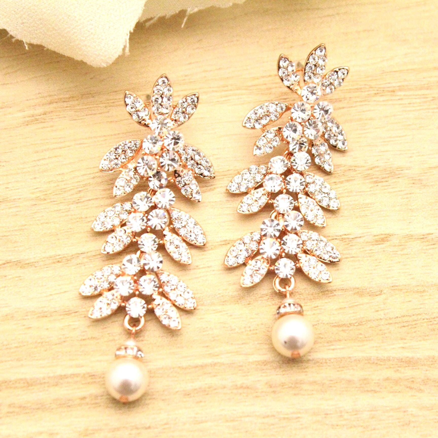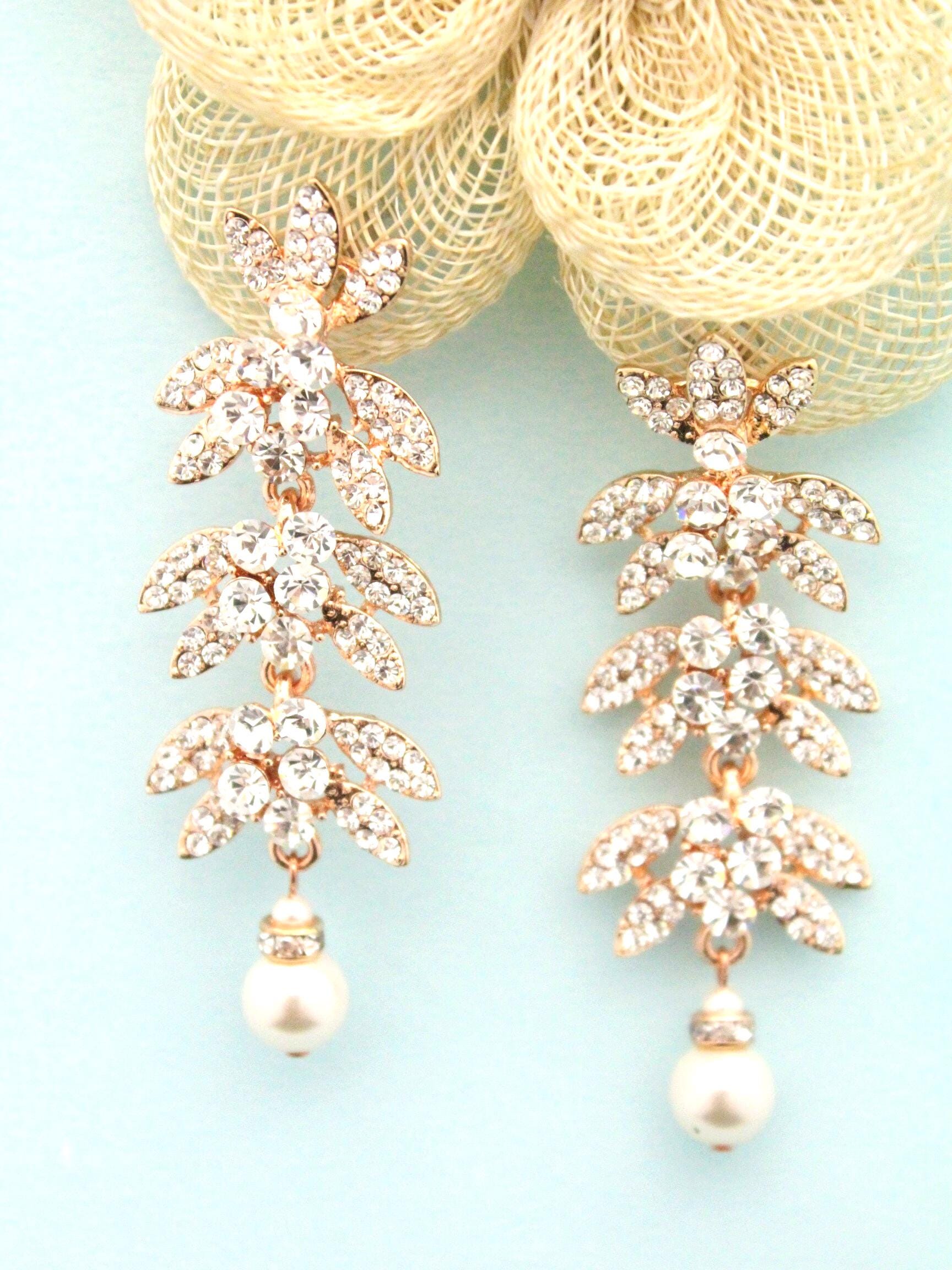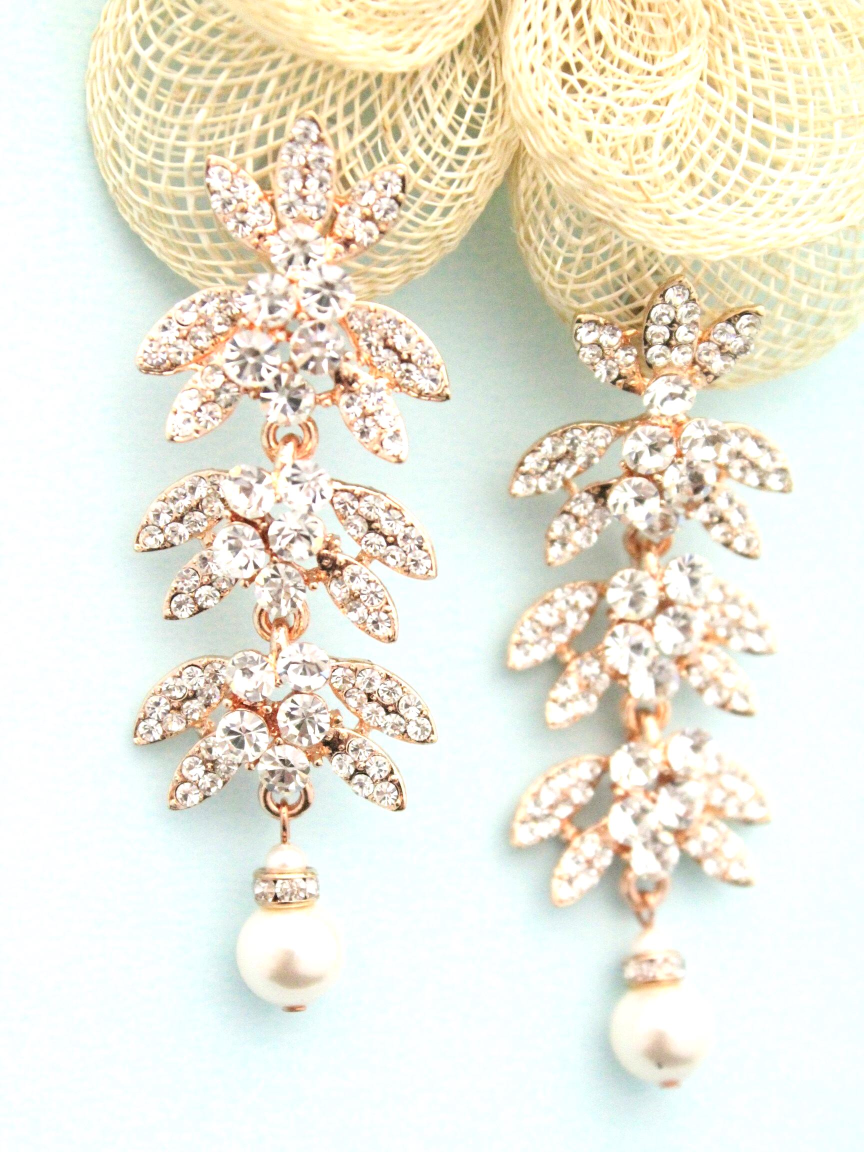 Rose Gold Bridal earrings Bridal jewelry Rose Gold Chandelier earrings Rose Gold Crystal earrings Wedding earrings Pearl drop earrings