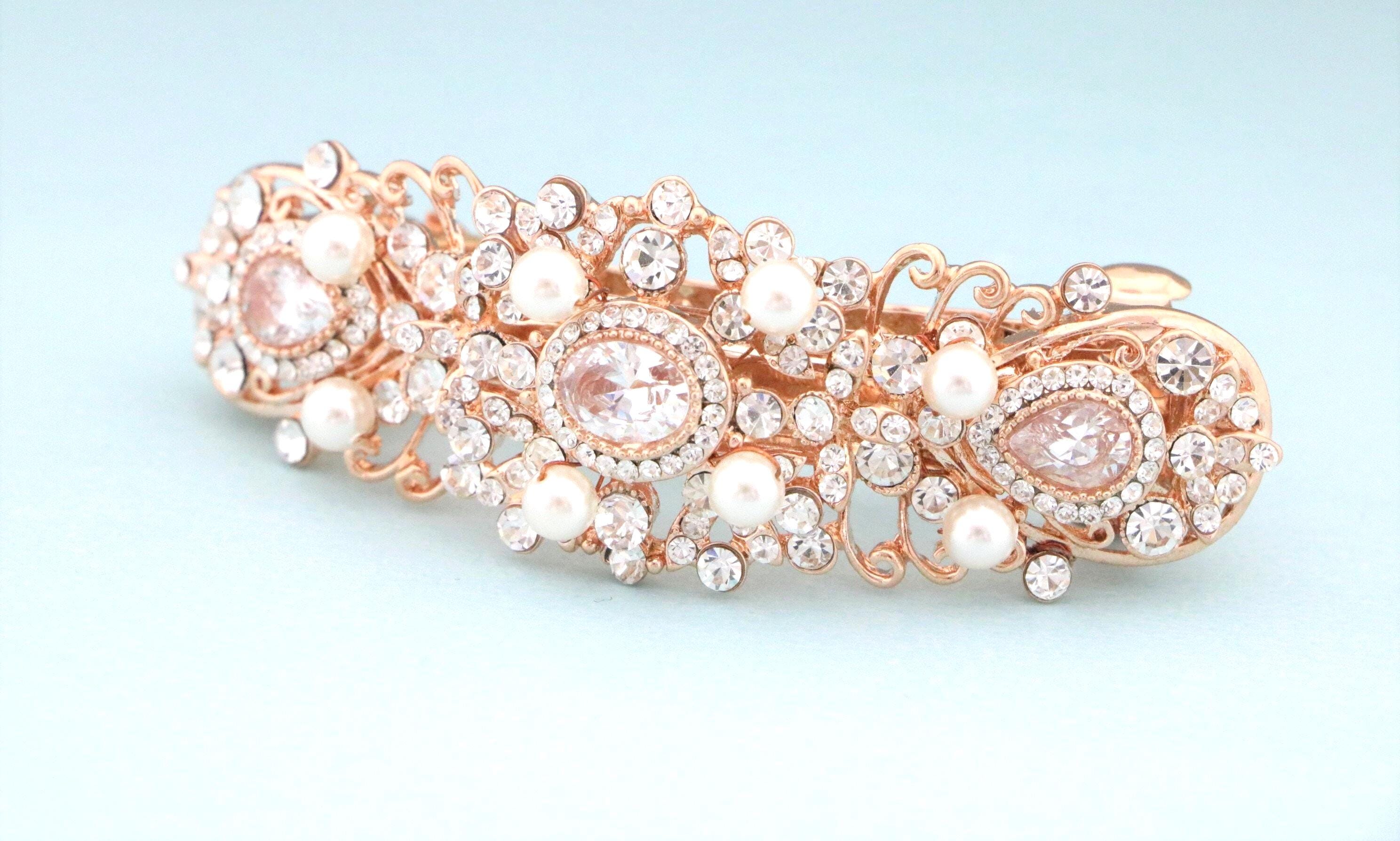 pearl rhinestone hair barrette flower branch event wedding hair accessory
