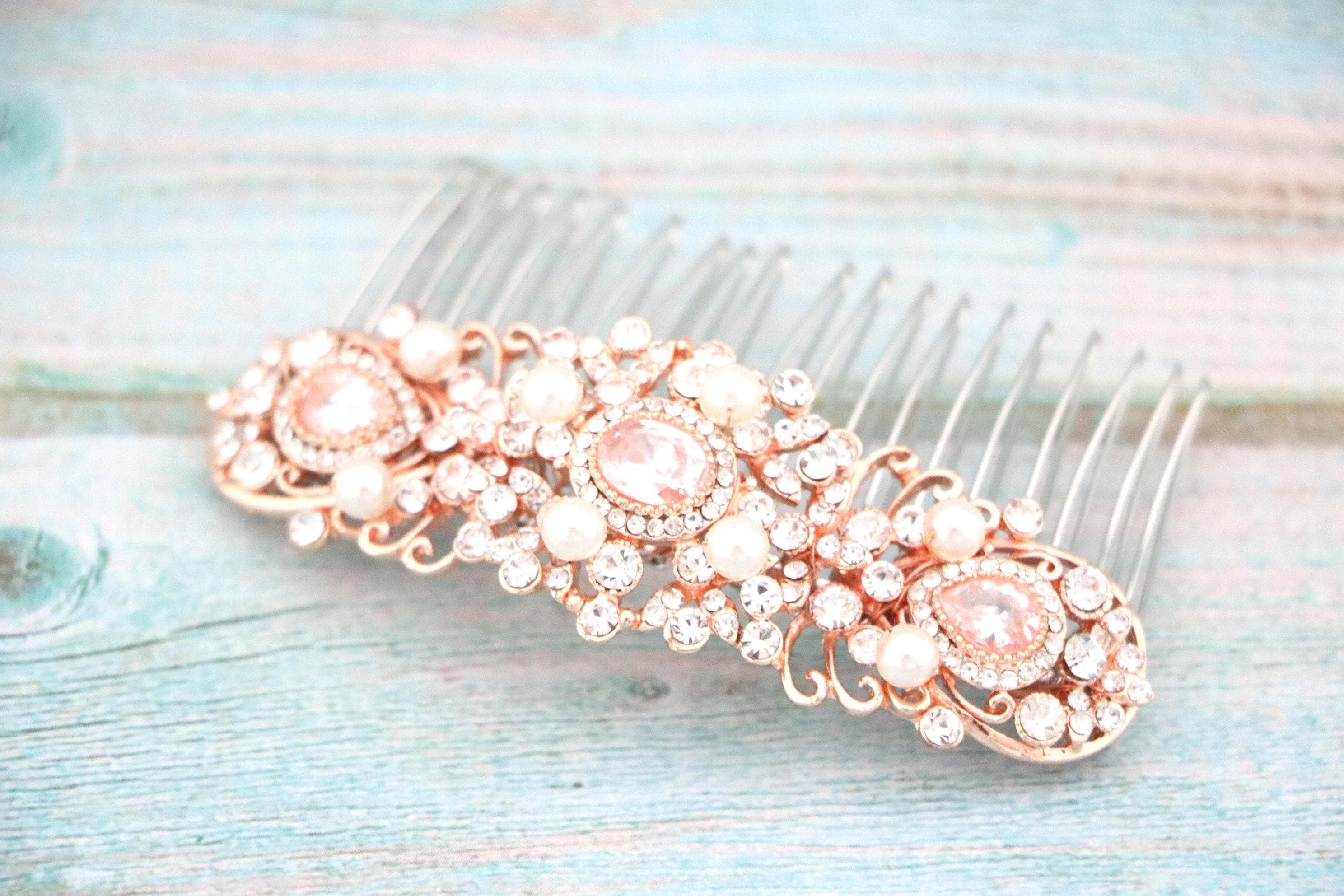 This sparkle rhinestone hair comb features a very beautiful vintage style rhinestone piece and Swarovski ivory pearls. Rhinestone piece and pearls are set it on a metal barrette or on a metal hair comb. The rhinestone part measures approximately 3.75 X 1.25 inches.