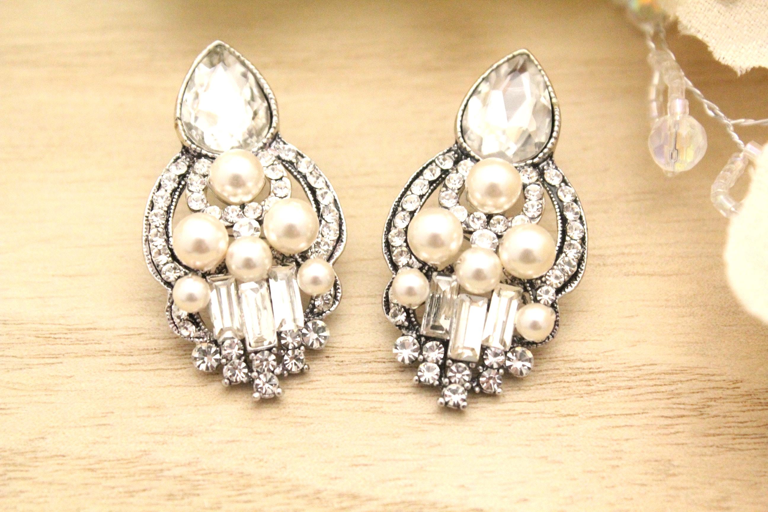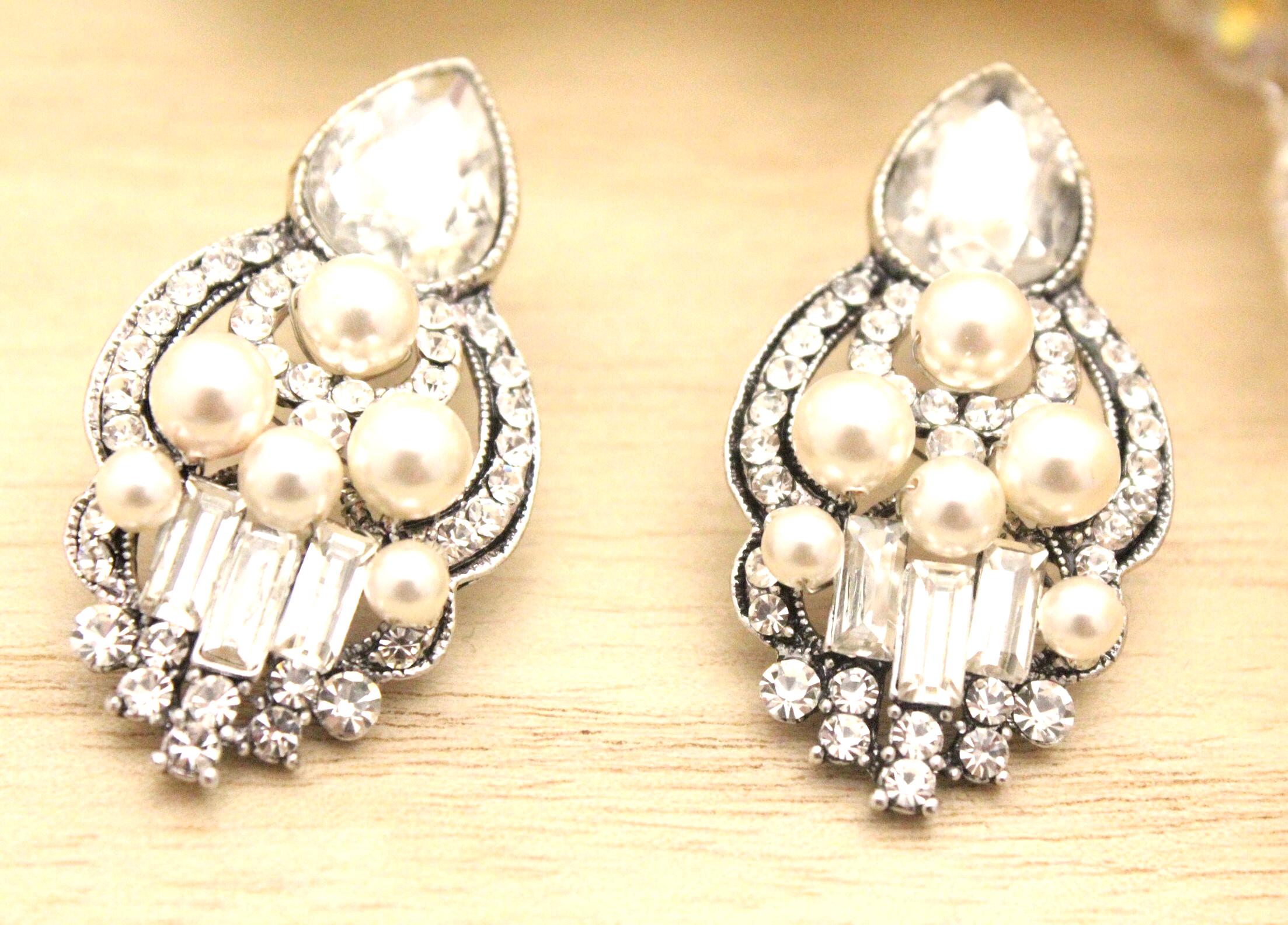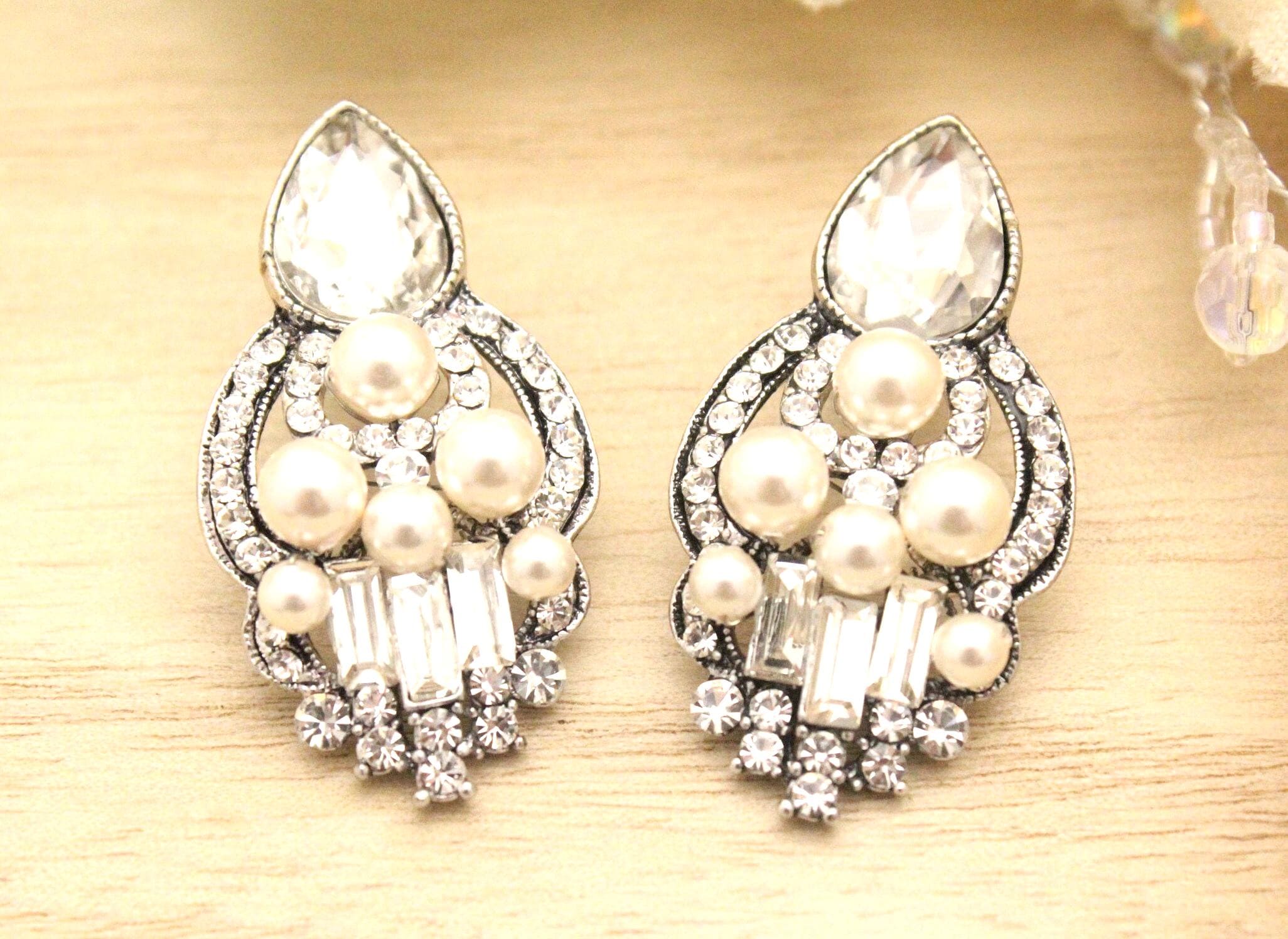 This vintage inspired stunning Pearl and Rhinestone earring is beautiful addition to your wedding day.