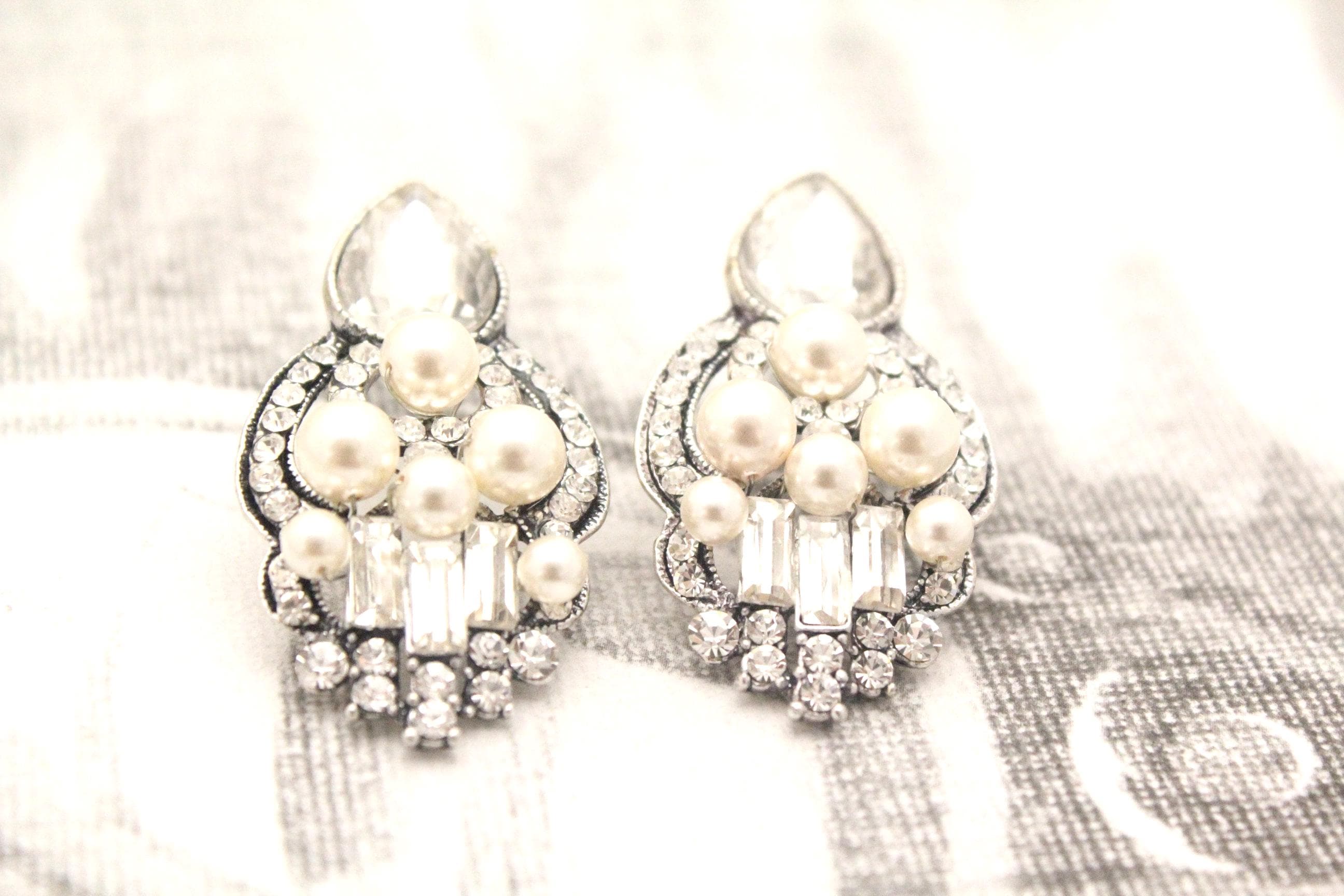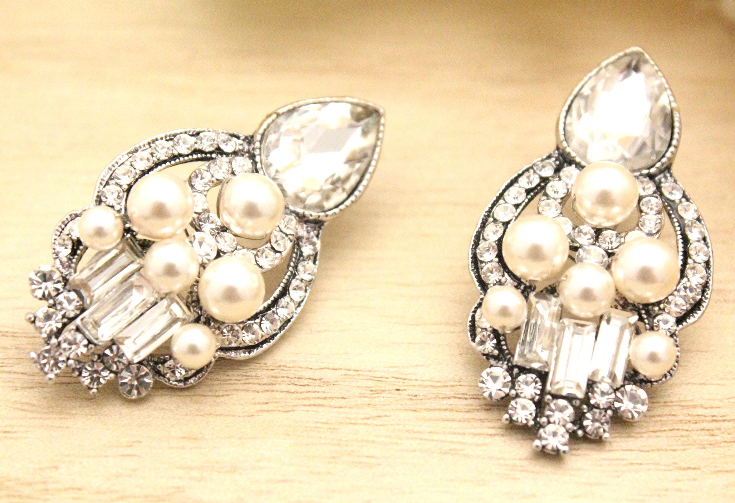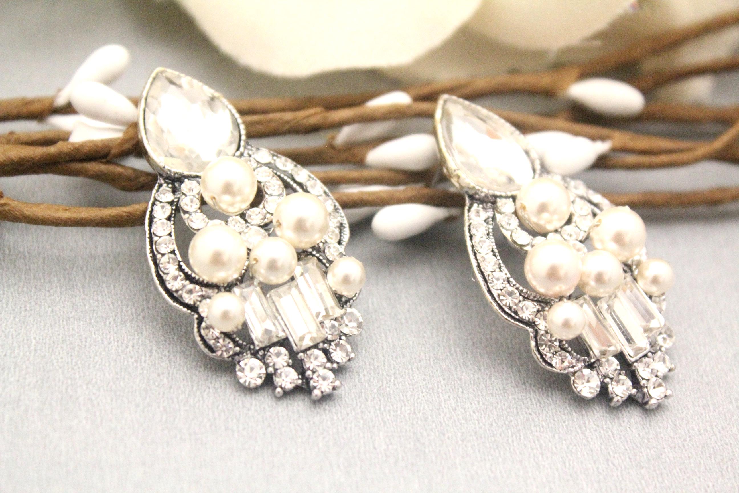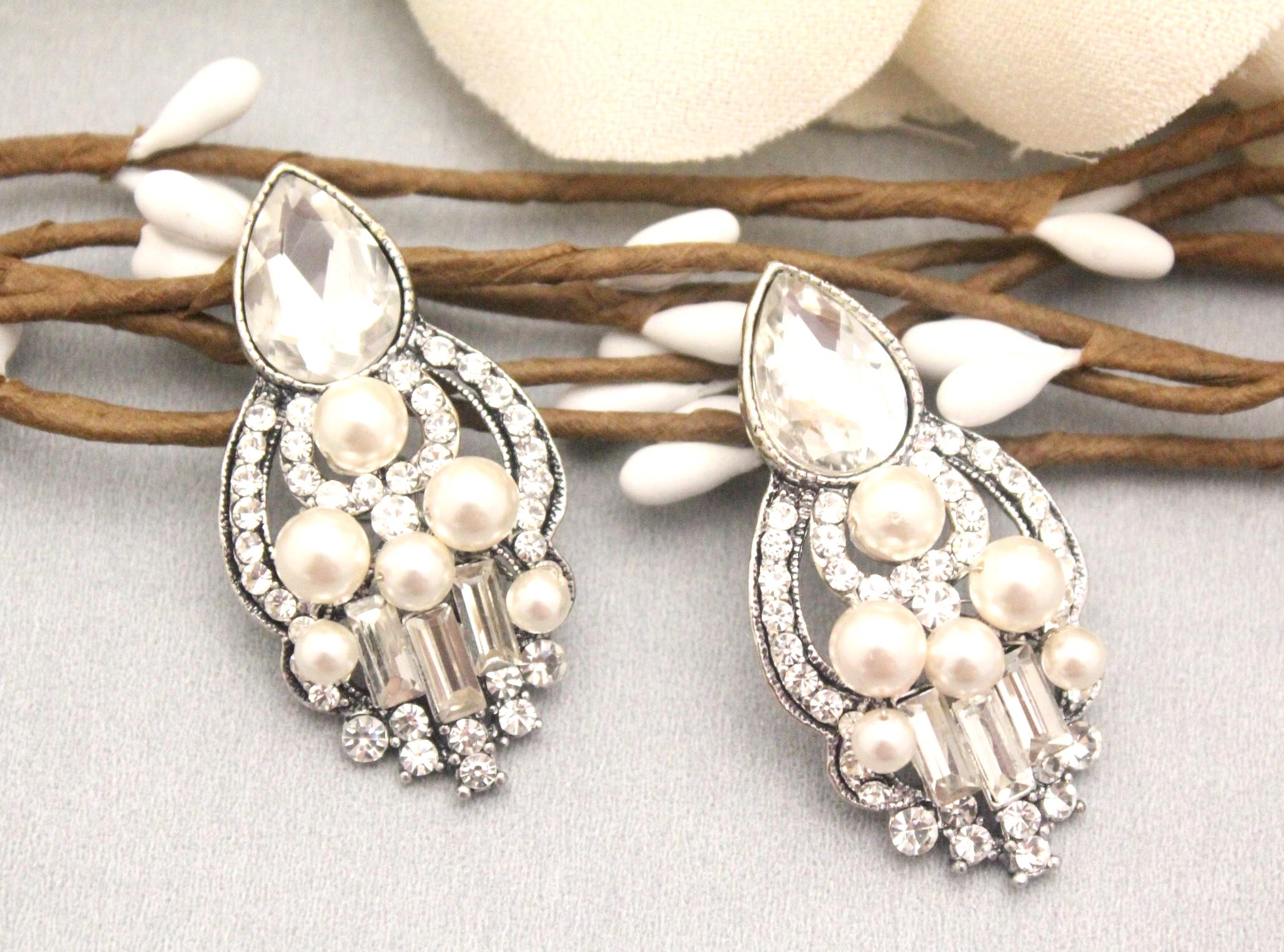 This vintage inspired stunning Pearl and Rhinestone earring is beautiful addition to your wedding day.