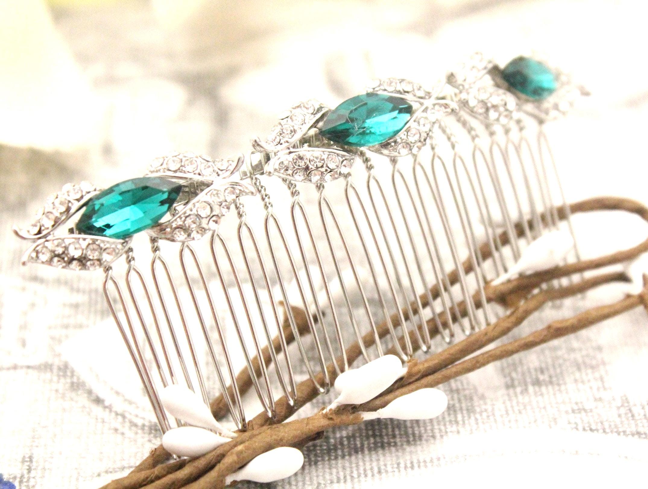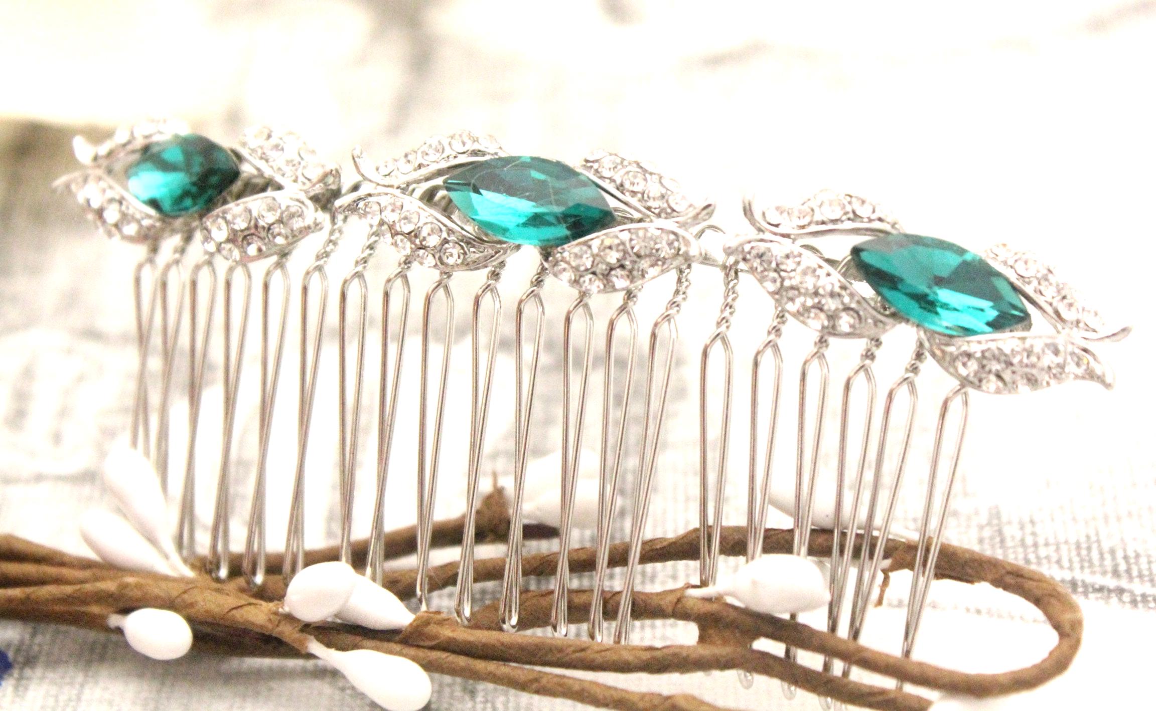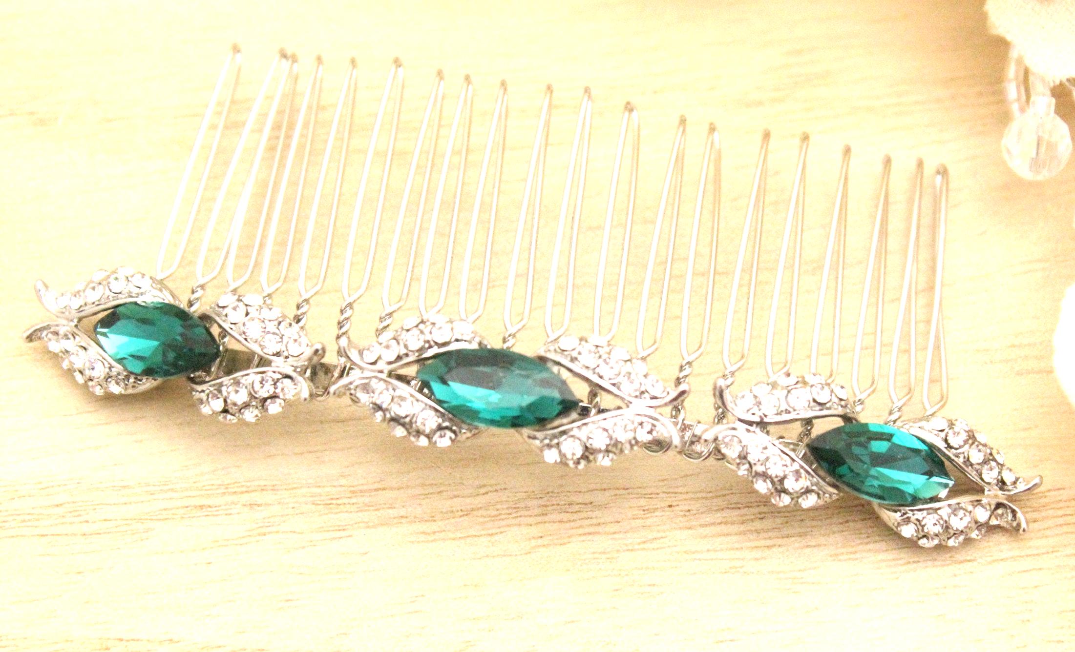 Green Crystal Comb, wedding hair comb, crystal rhinestone hair comb hair comb wedding headpieces, Emerald Green Crystal Comb