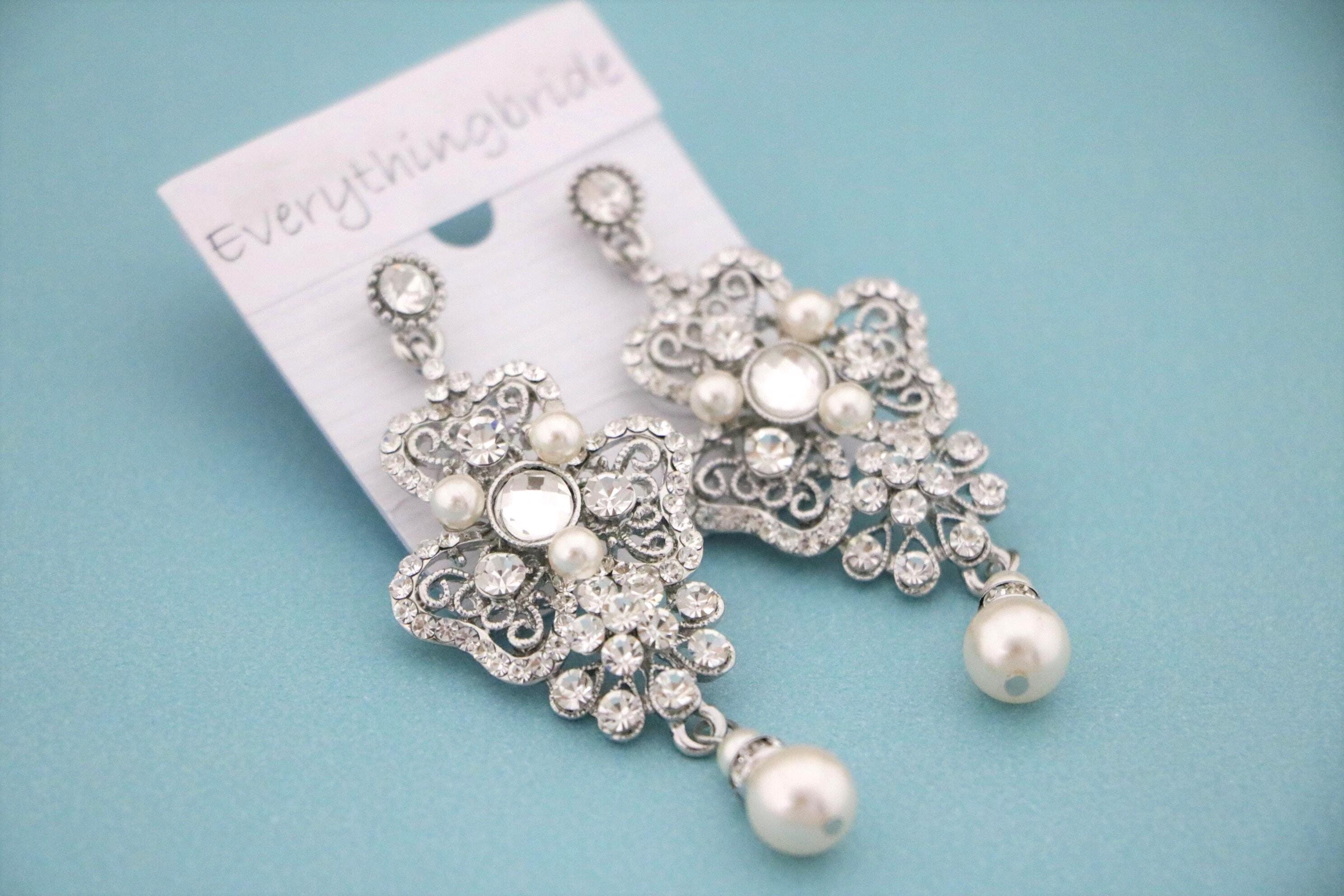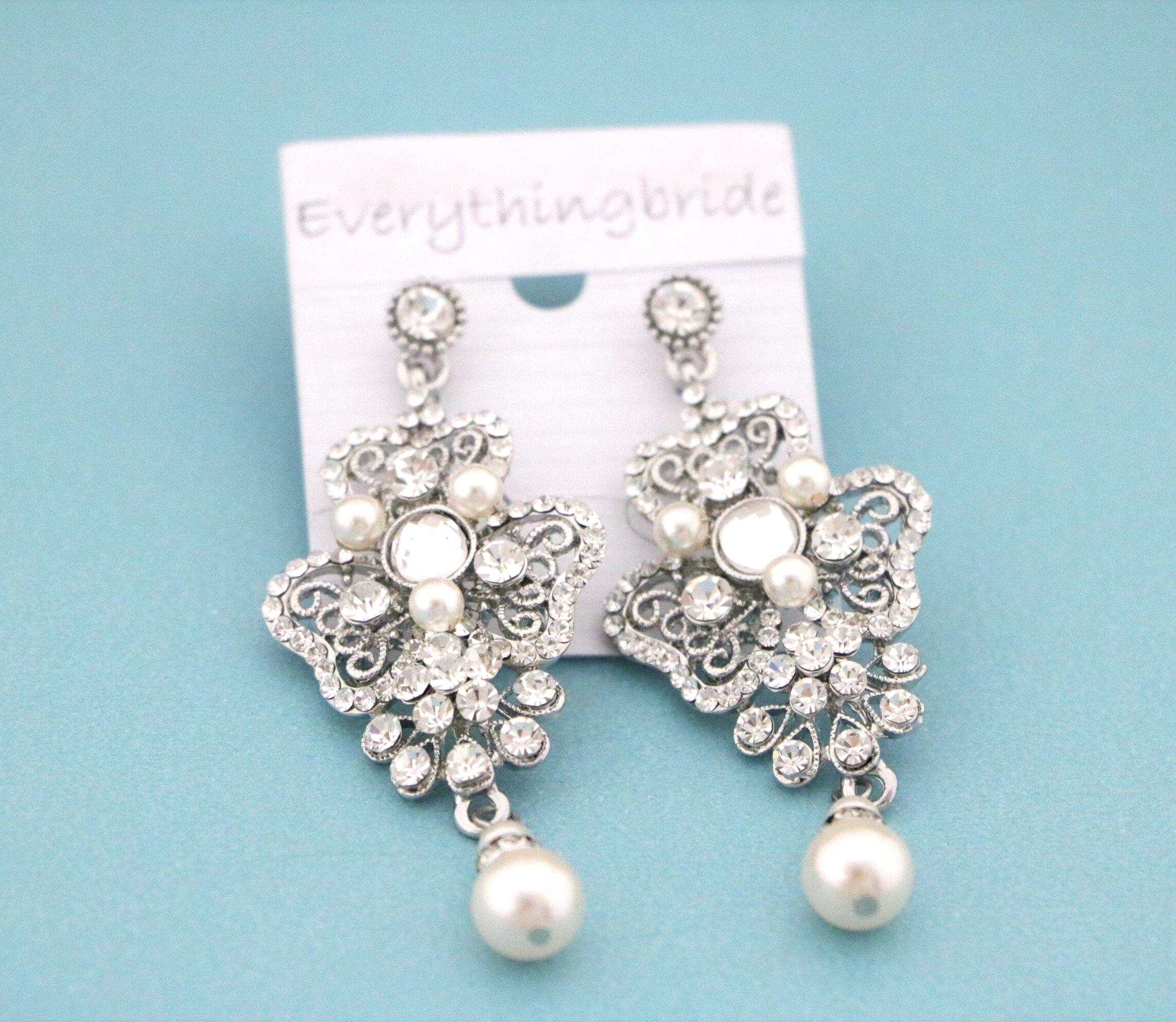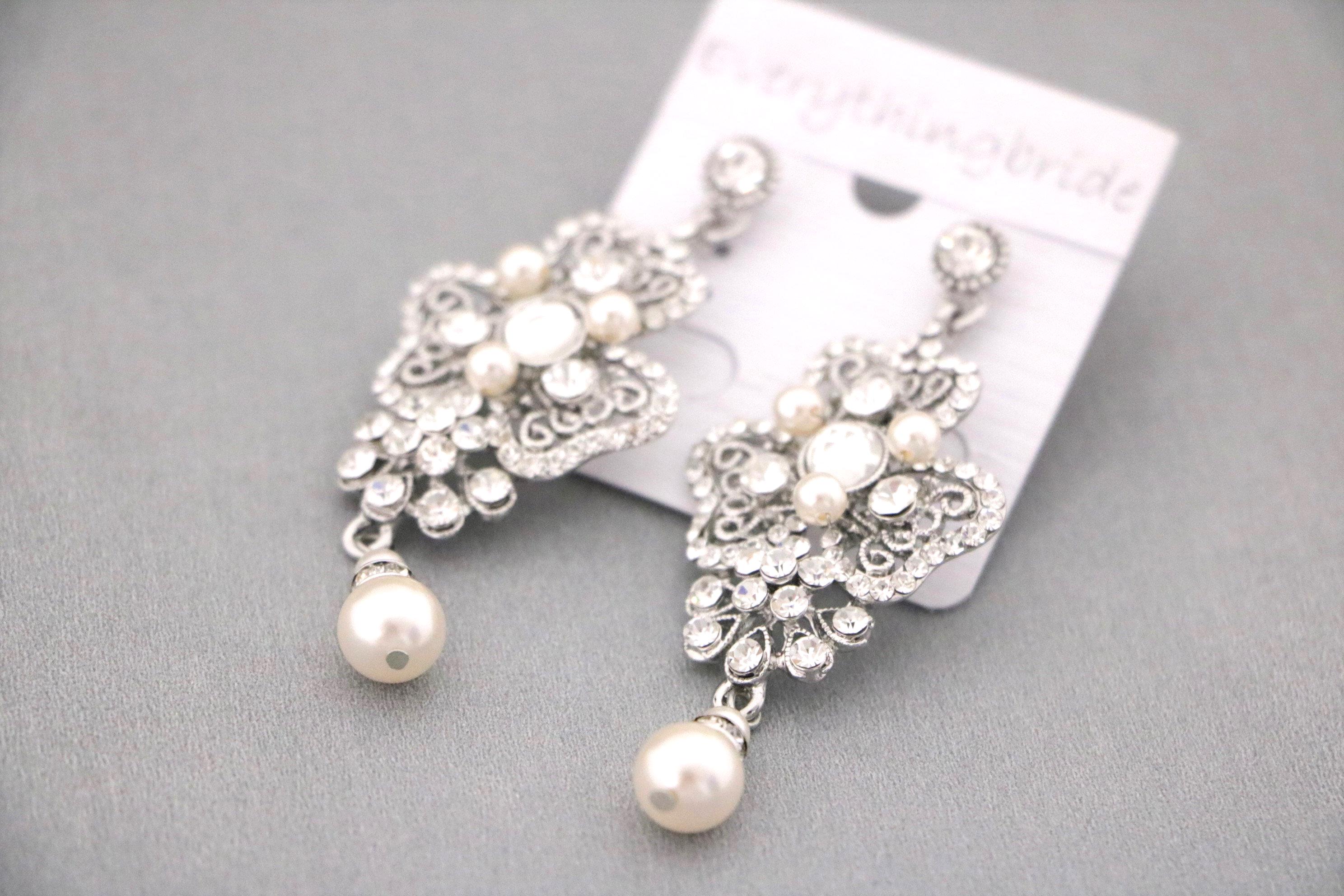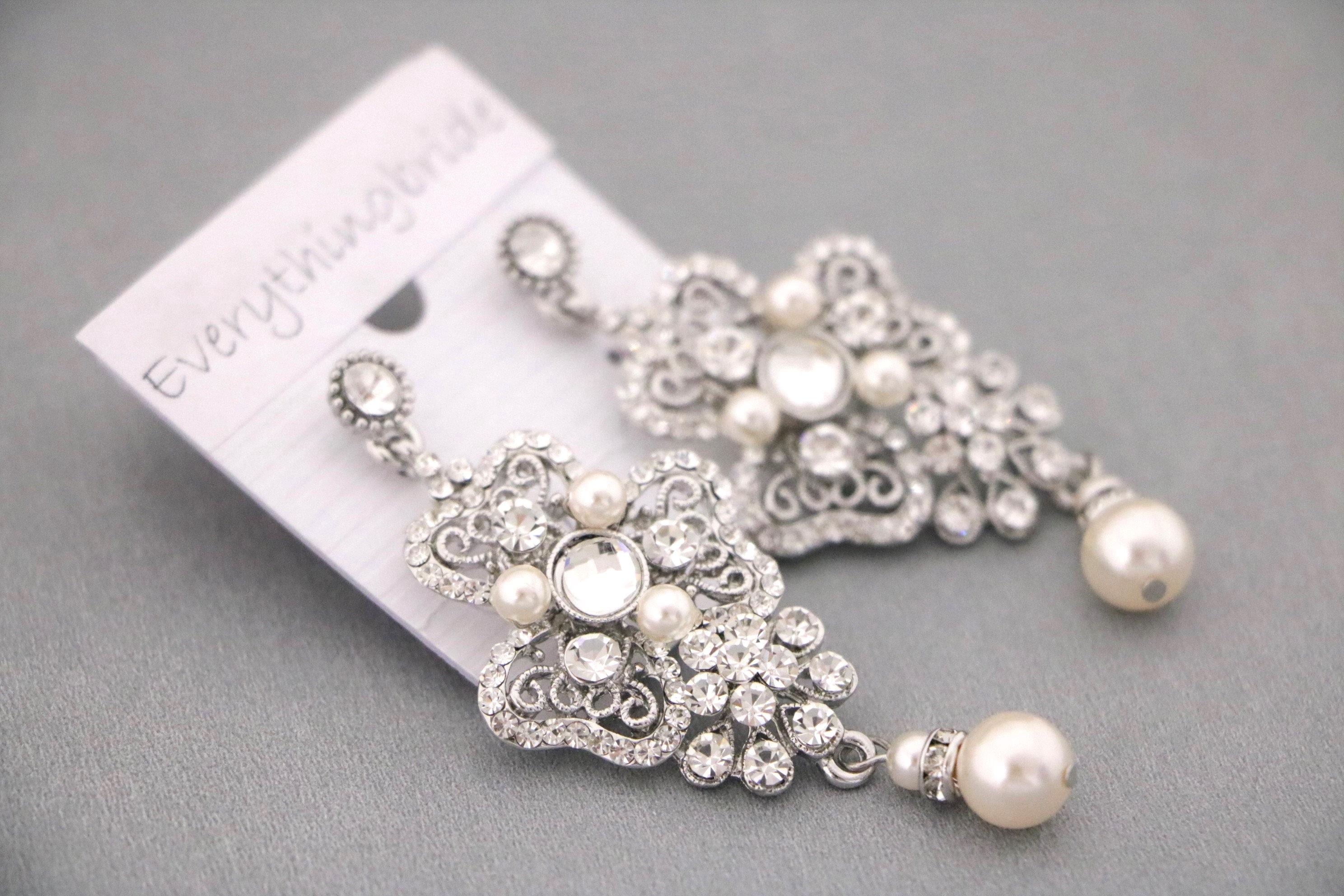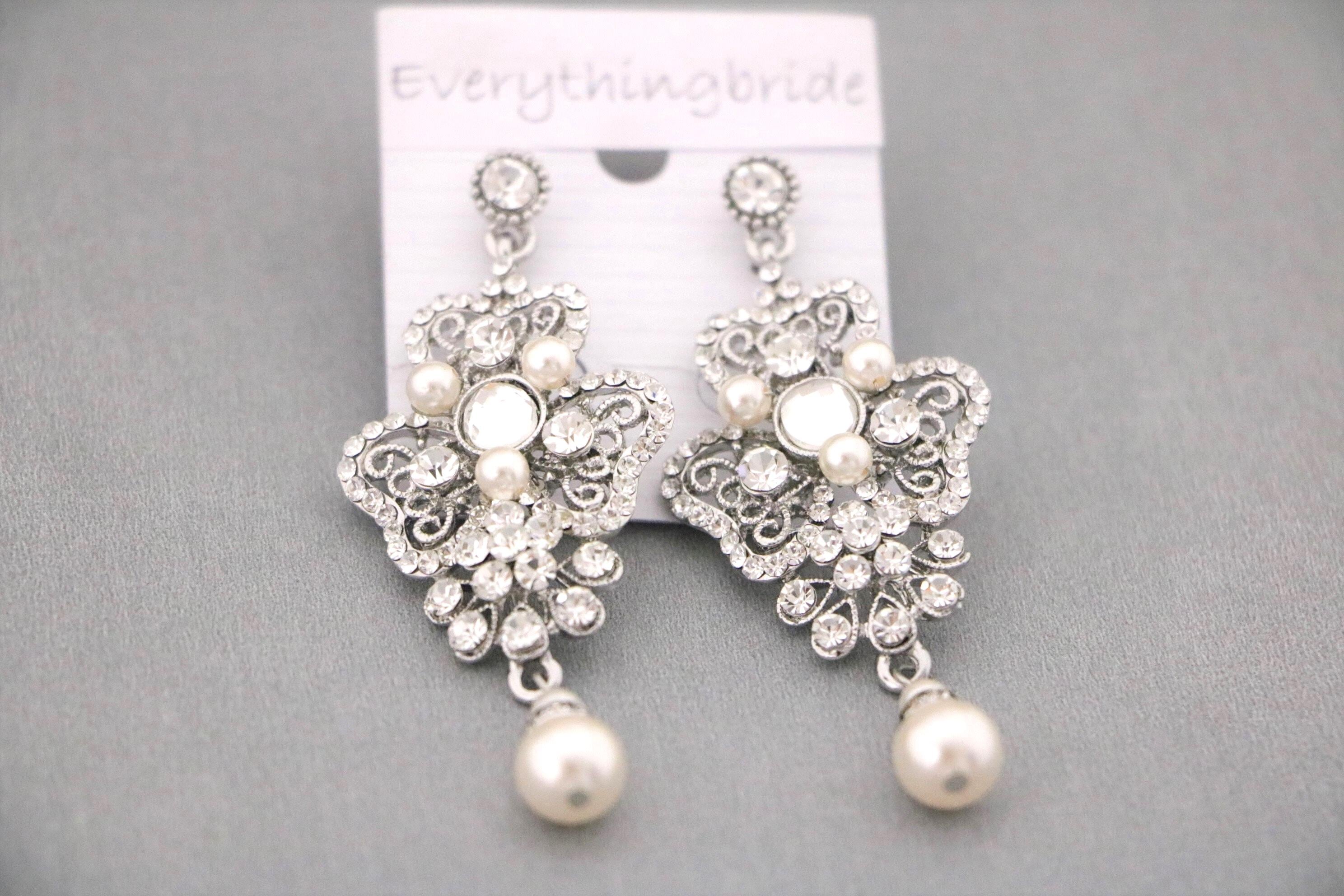 This vintage inspired stunning Pearl and Rhinestone earring is beautiful addition to your wedding day.