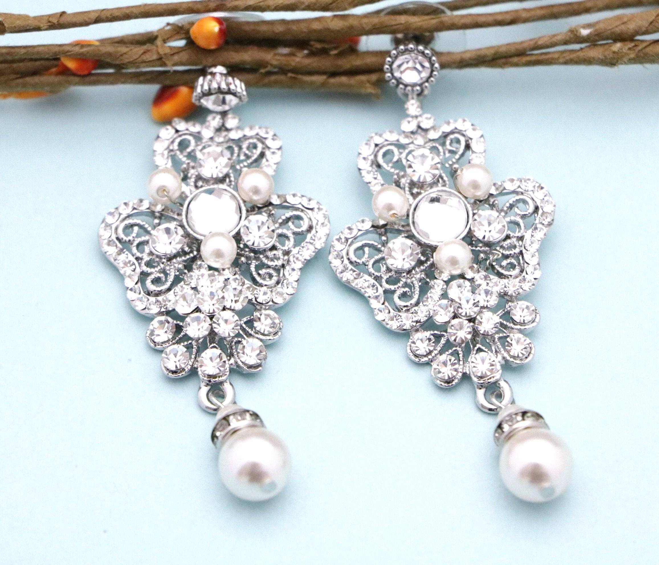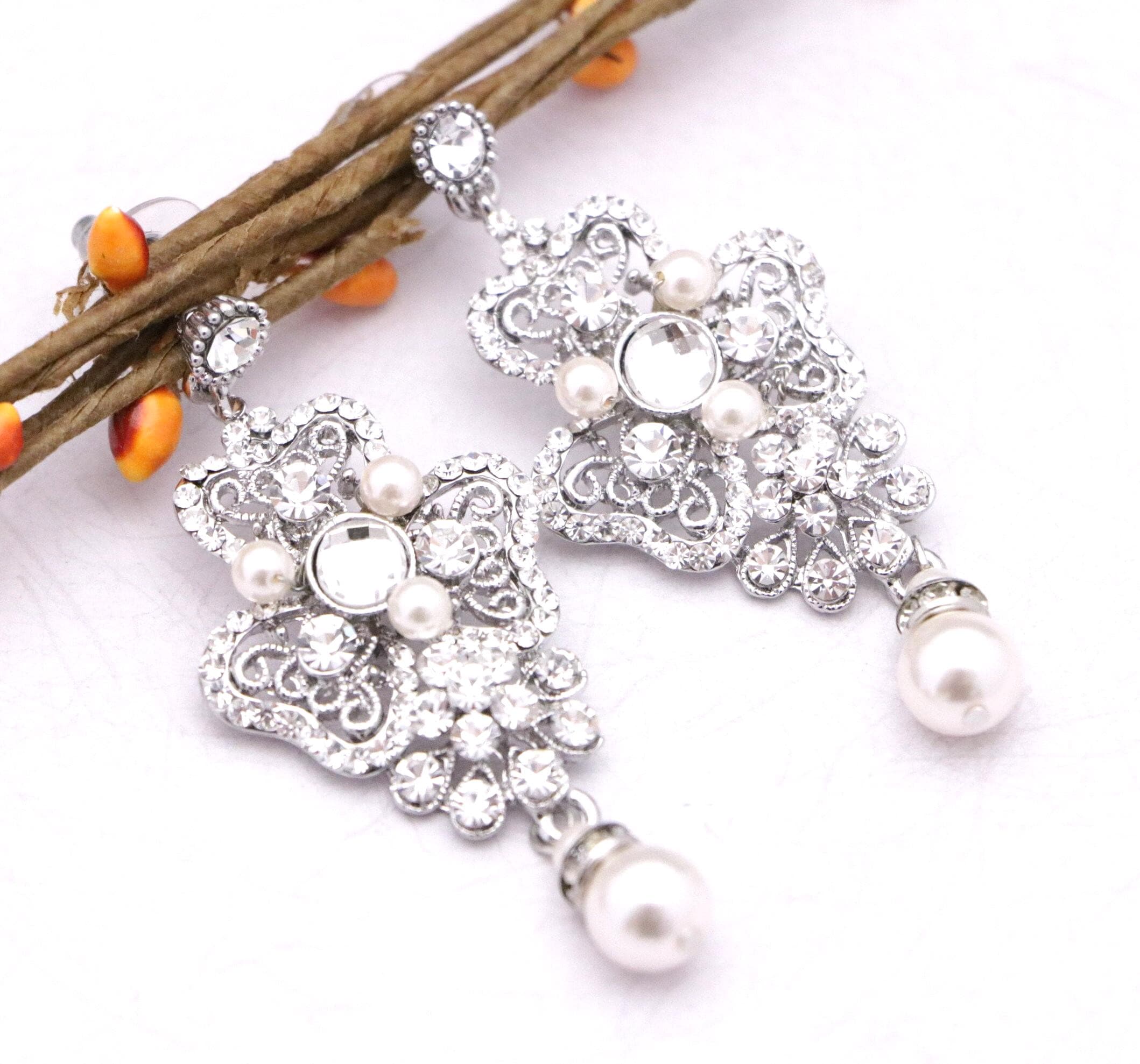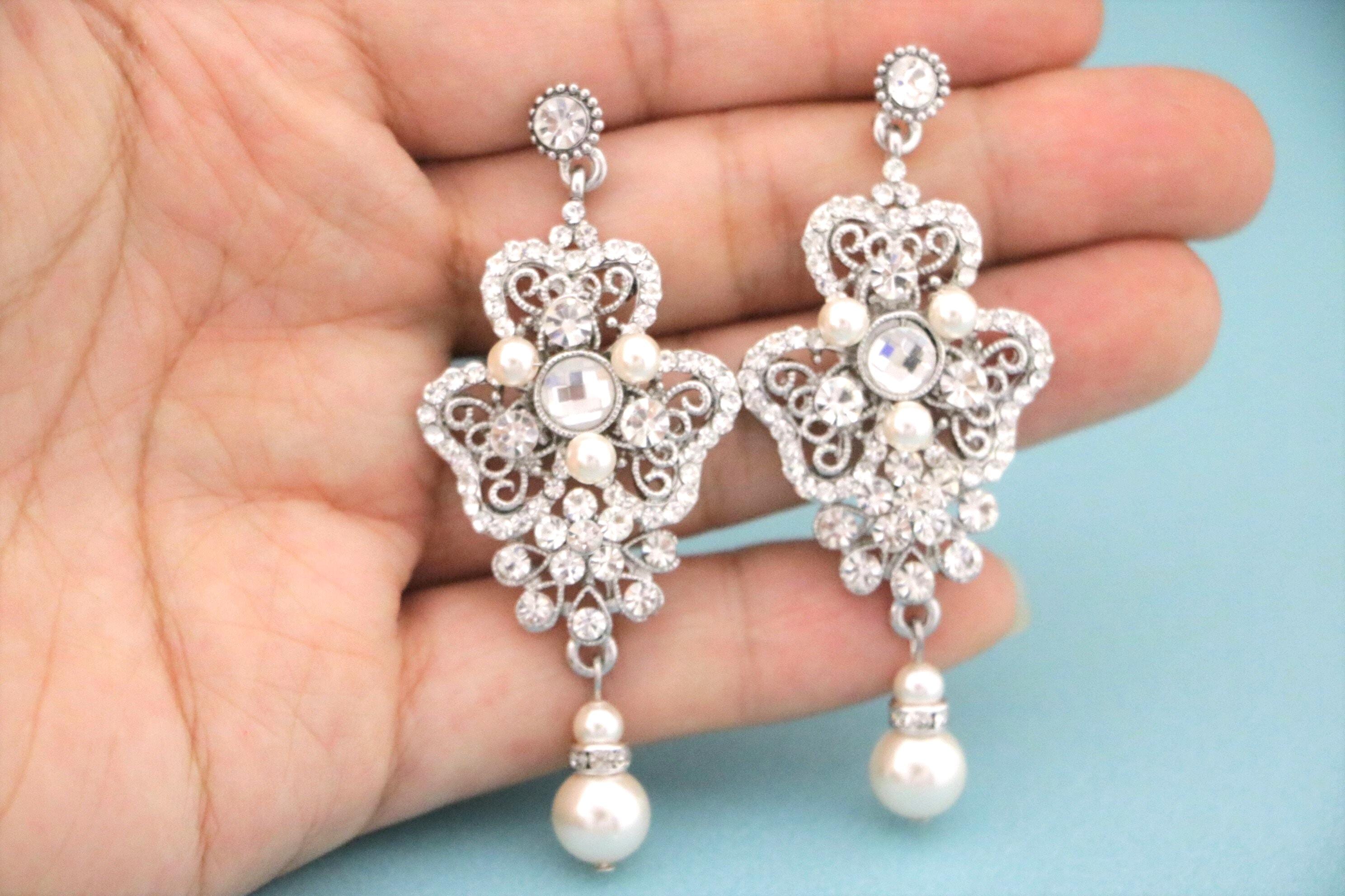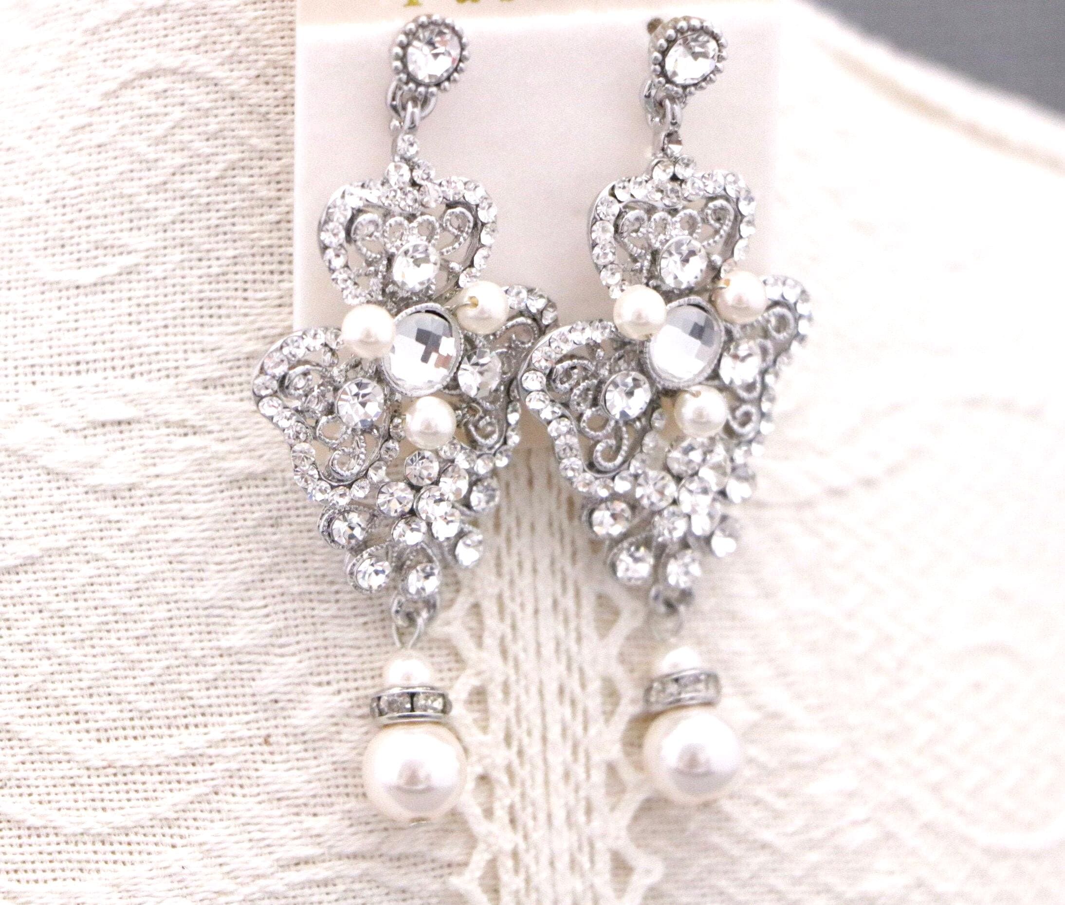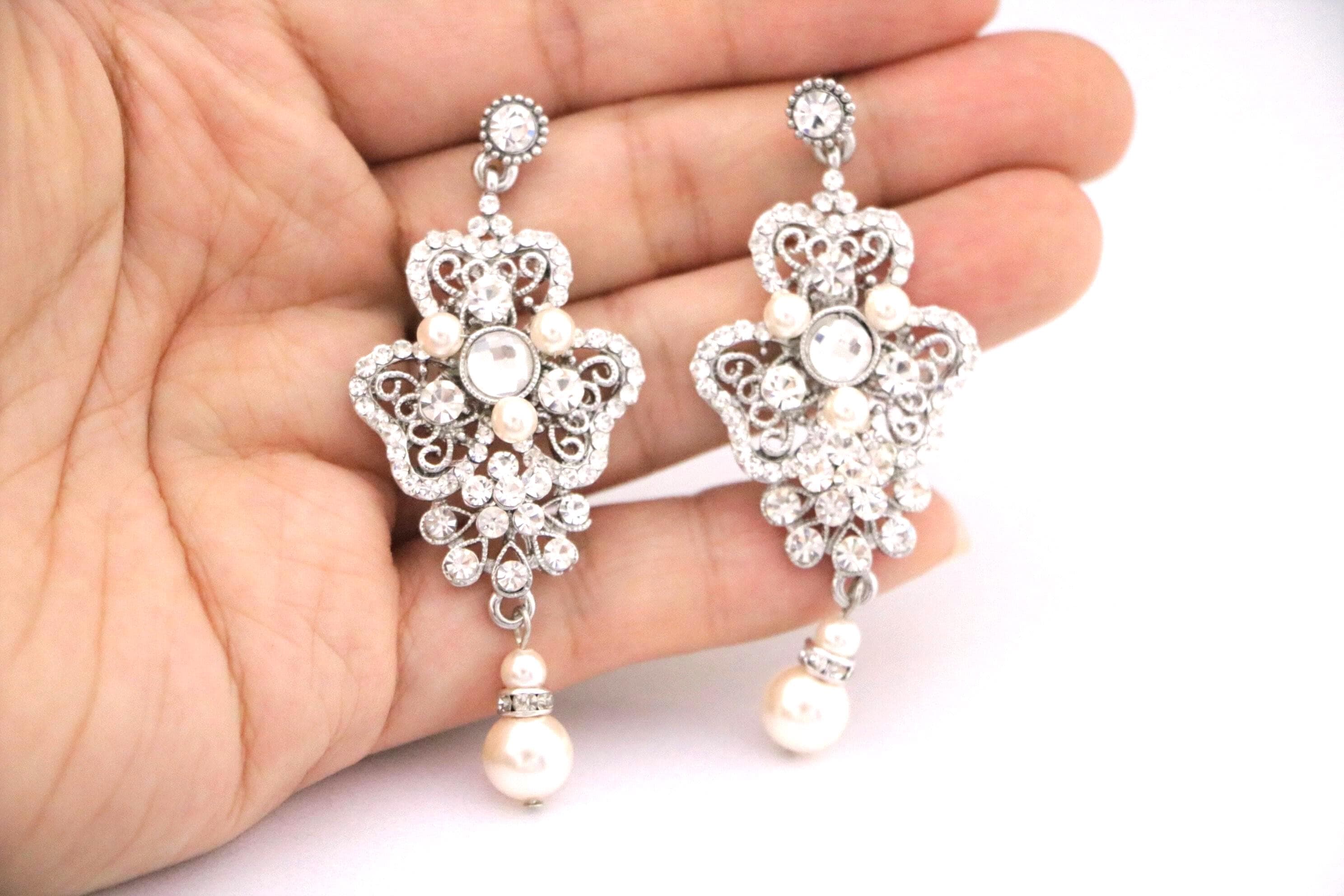 This vintage inspired stunning Pearl and Rhinestone earring is beautiful addition to your wedding day.