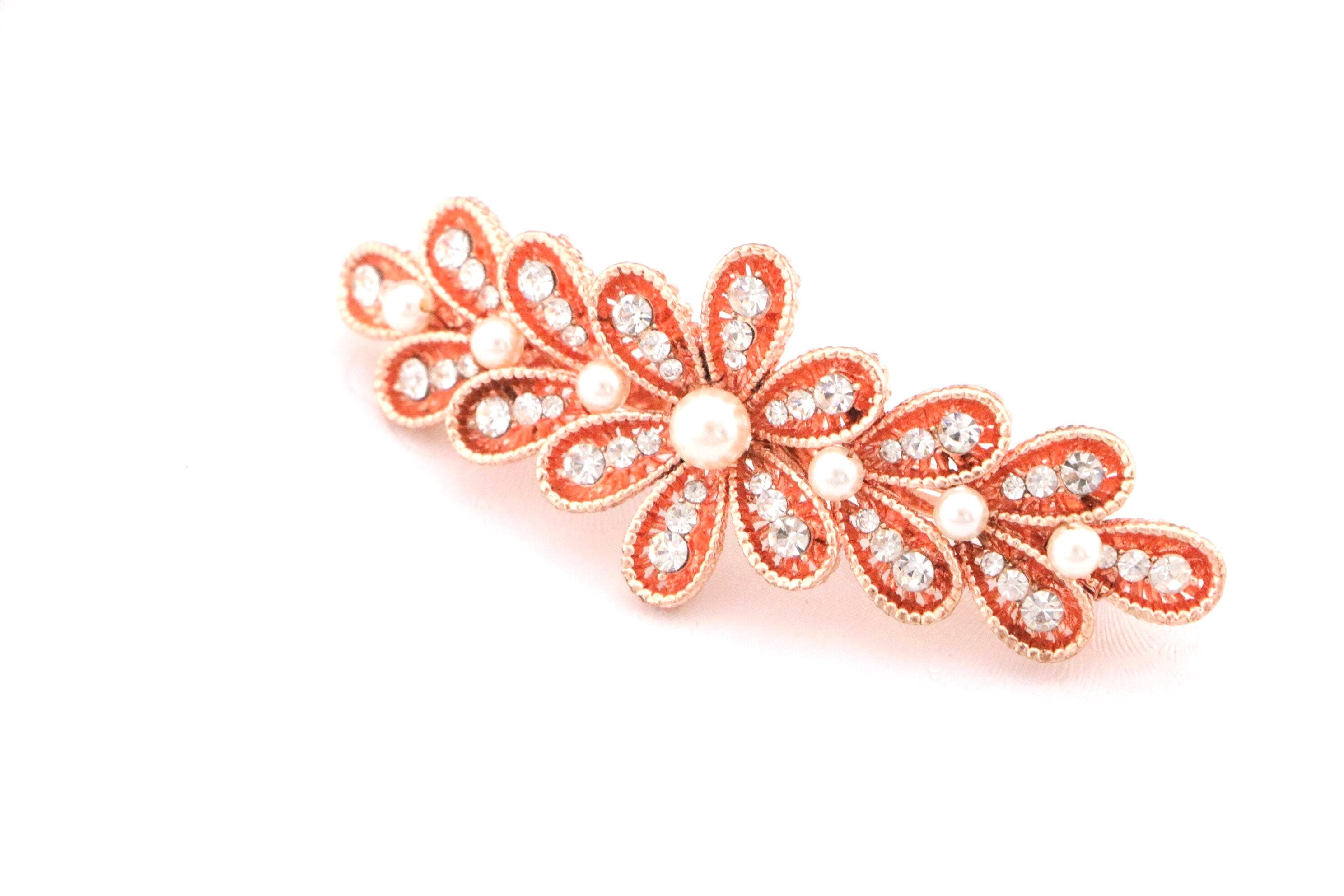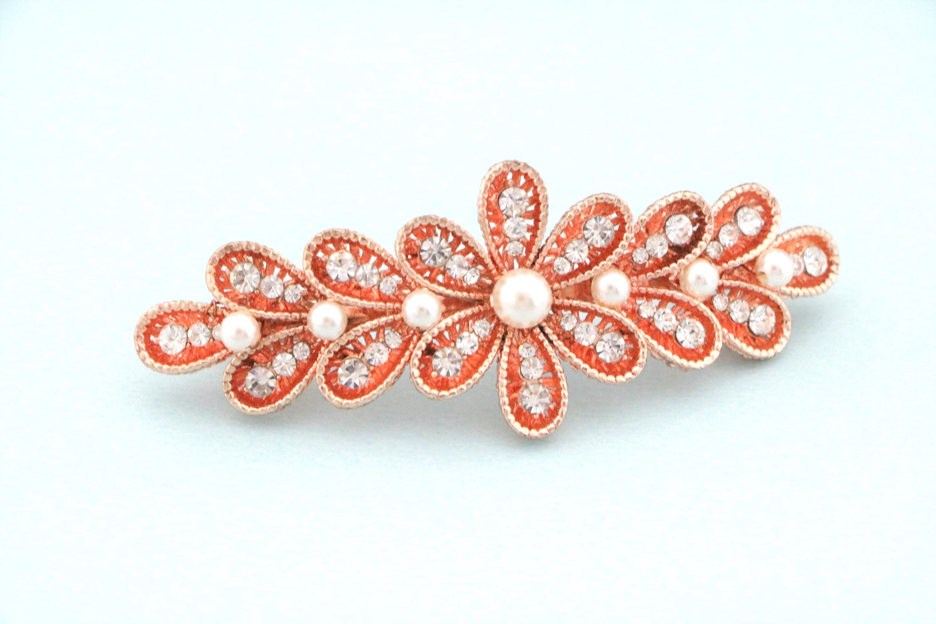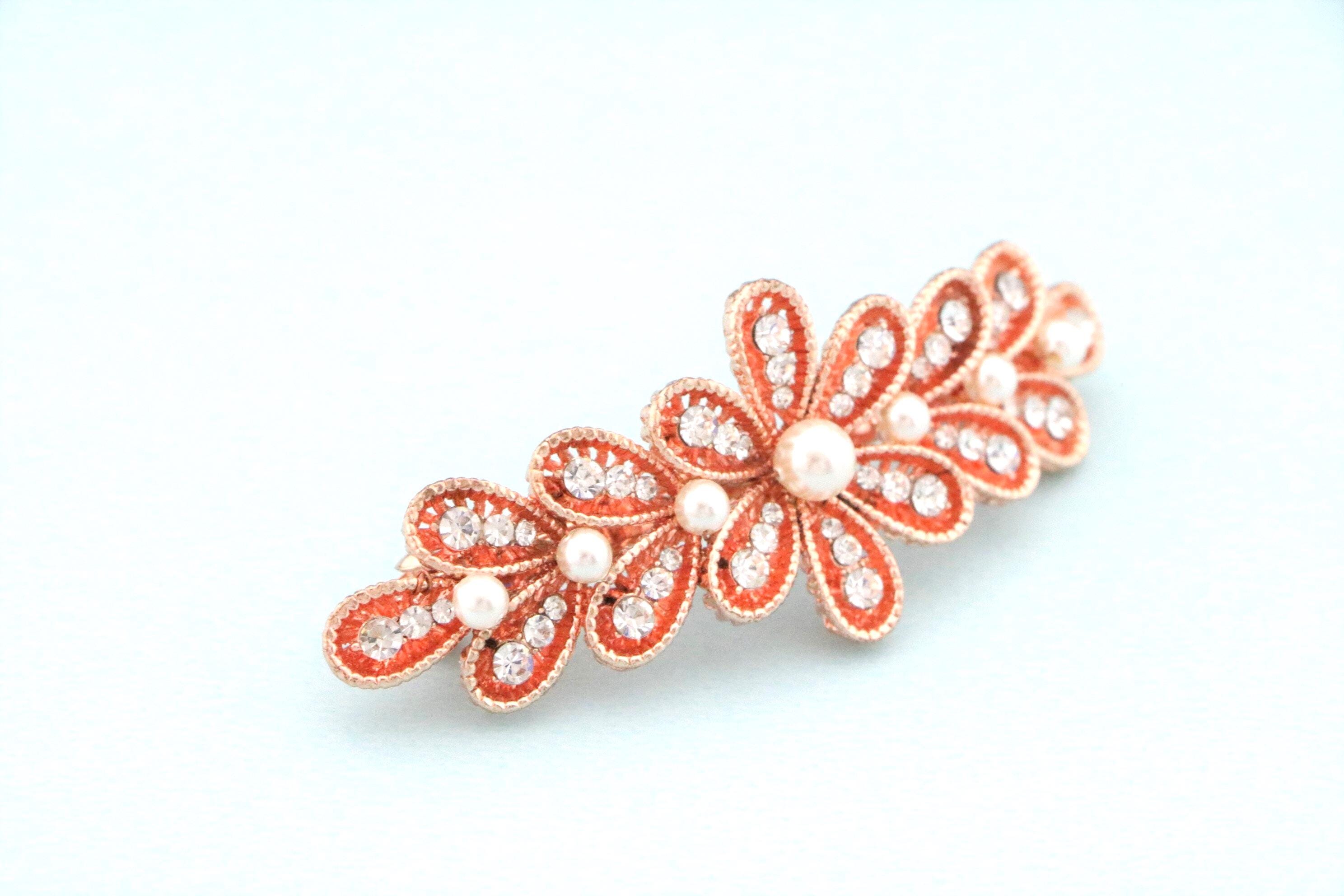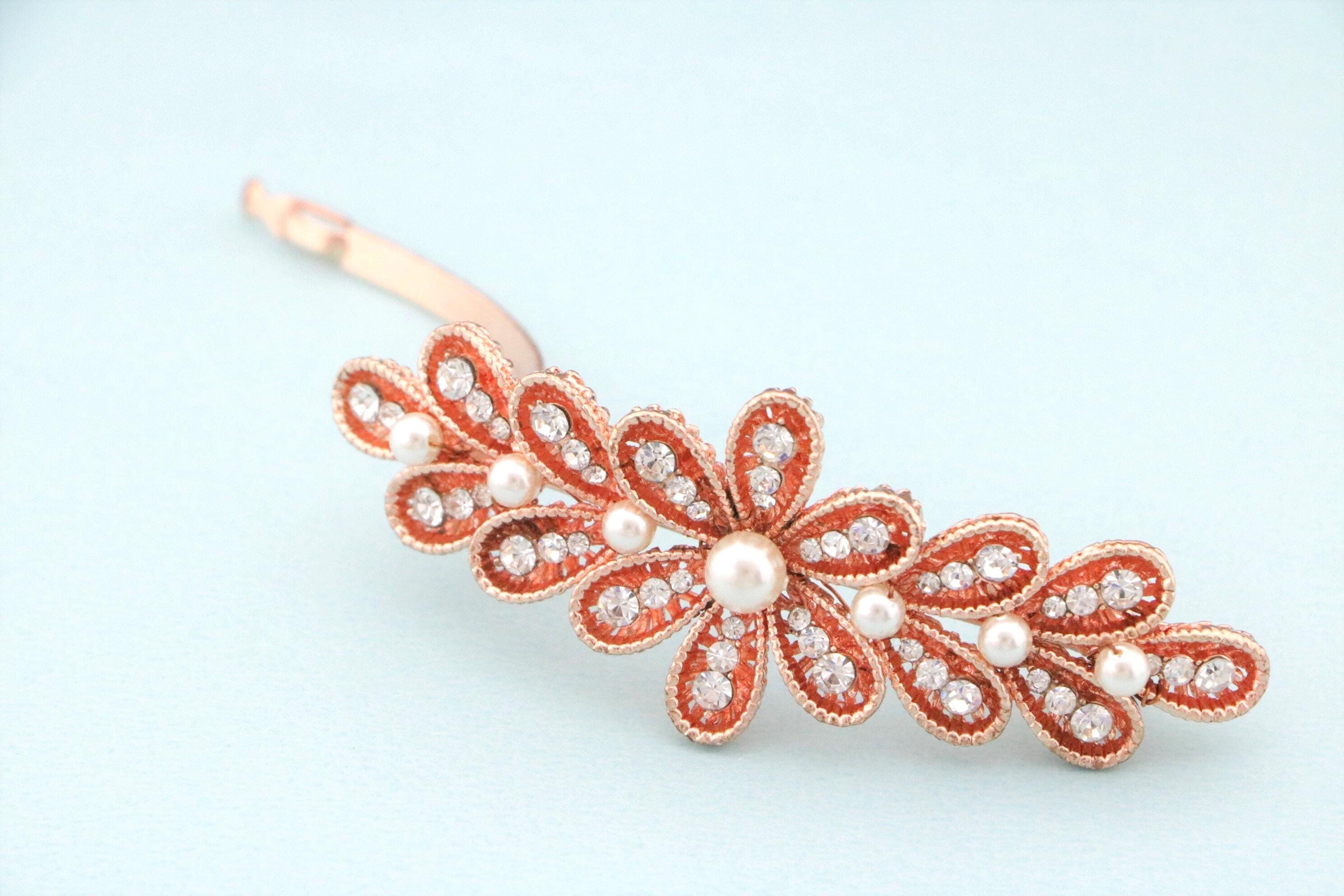 Rose Gold Hair Barrette, Rose Gold Crystal Hair Clip for Bride, Wedding Day Hair Barrette, Rose Gold Floral Hair Clip, Crystal and Pearl Hair Clip