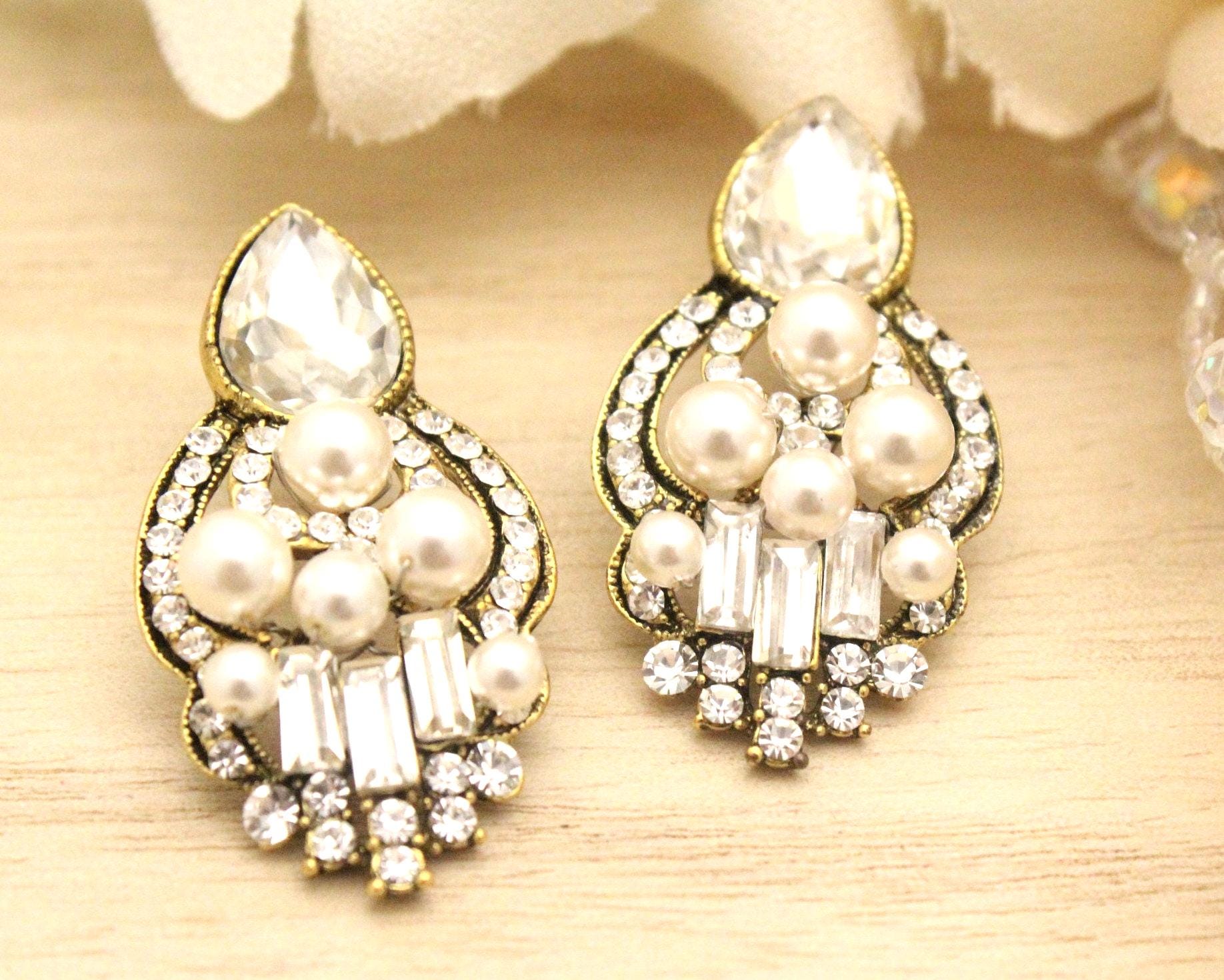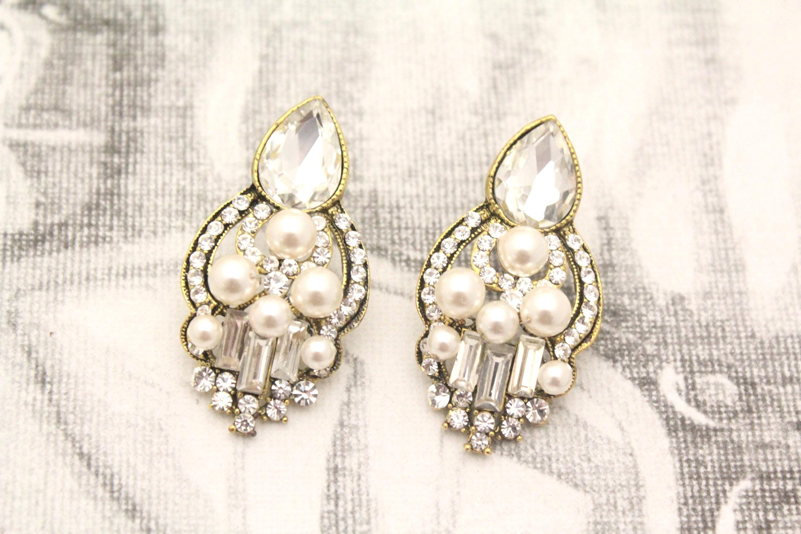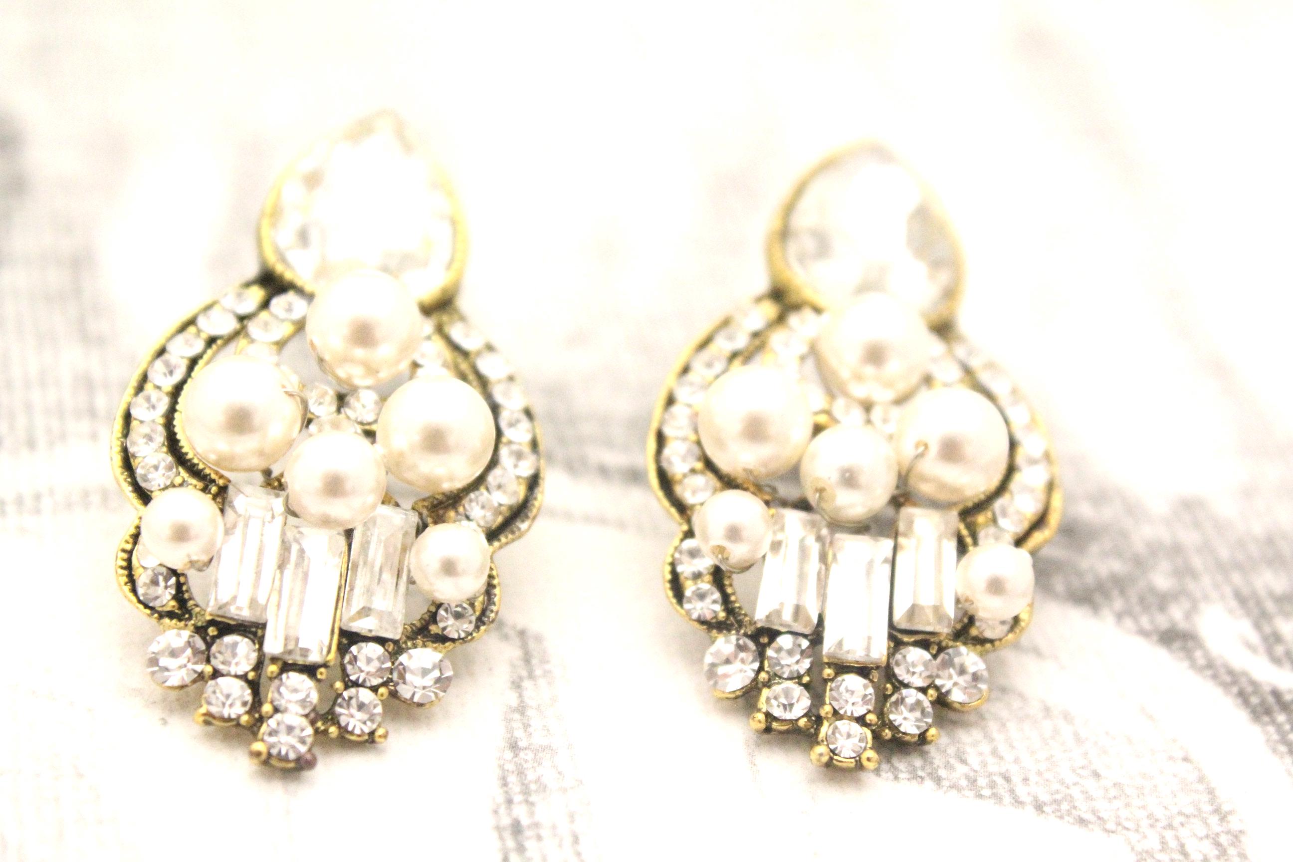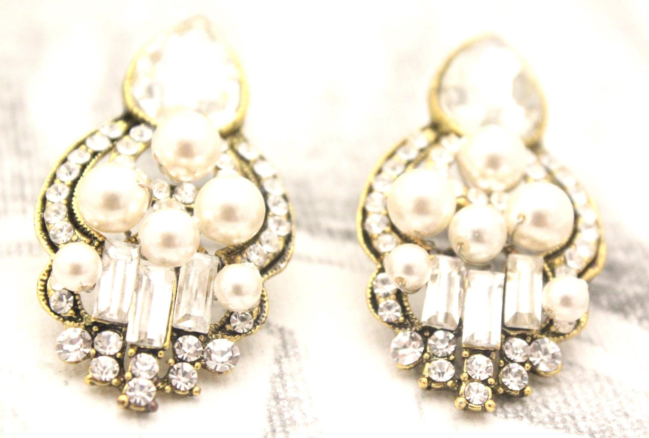 This vintage inspired stunning Pearl and Rhinestone earring is beautiful addition to your wedding day.