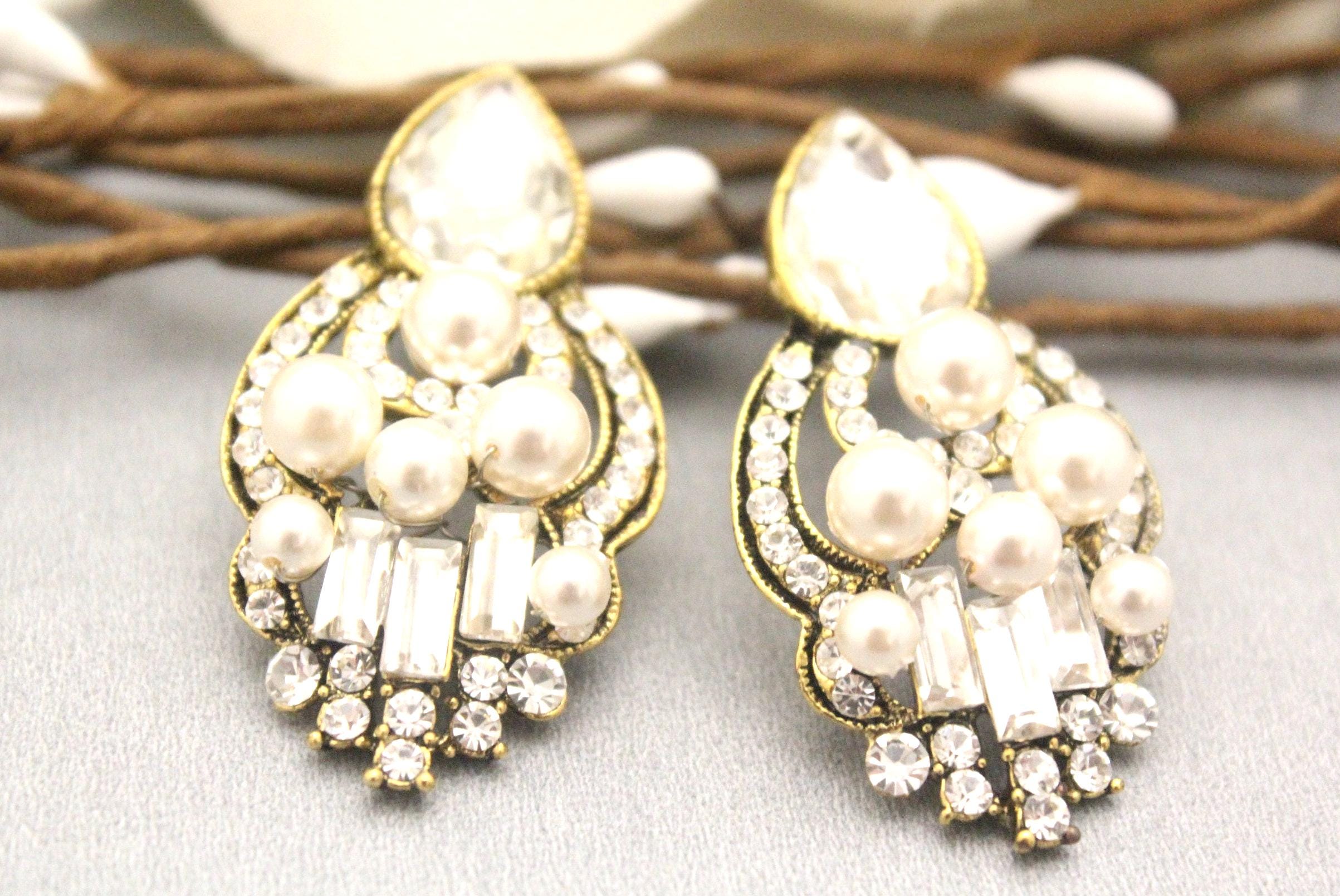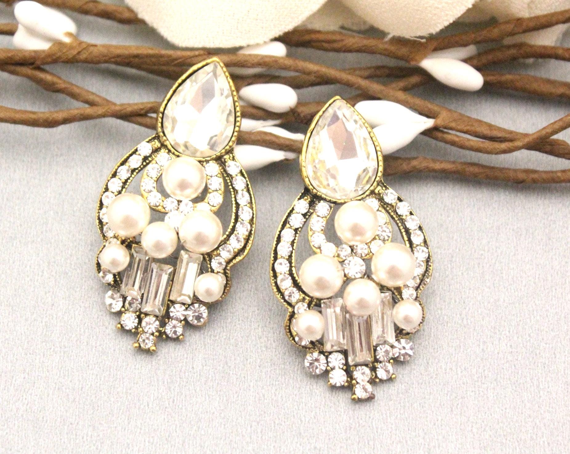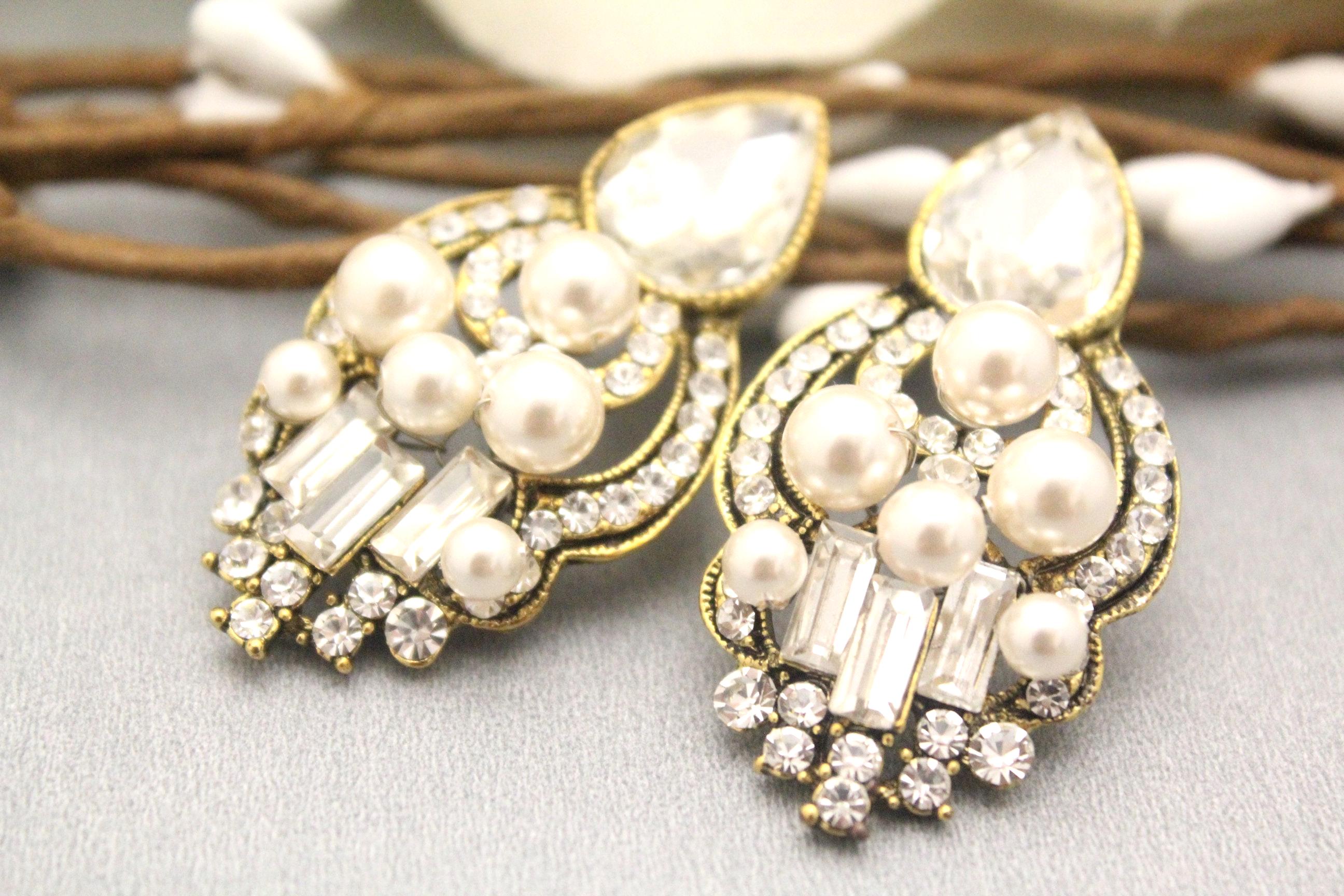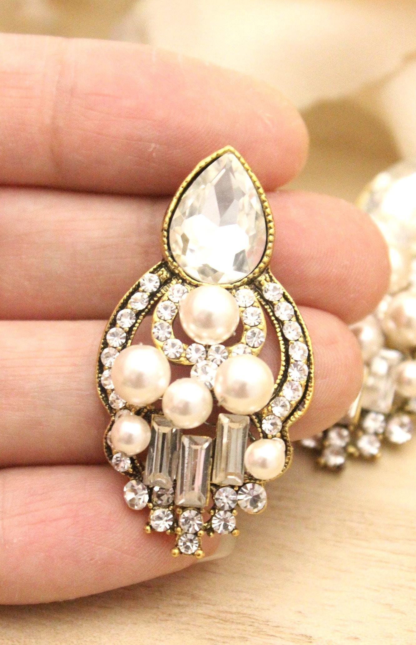 This vintage inspired stunning Pearl and Rhinestone earring is beautiful addition to your wedding day.