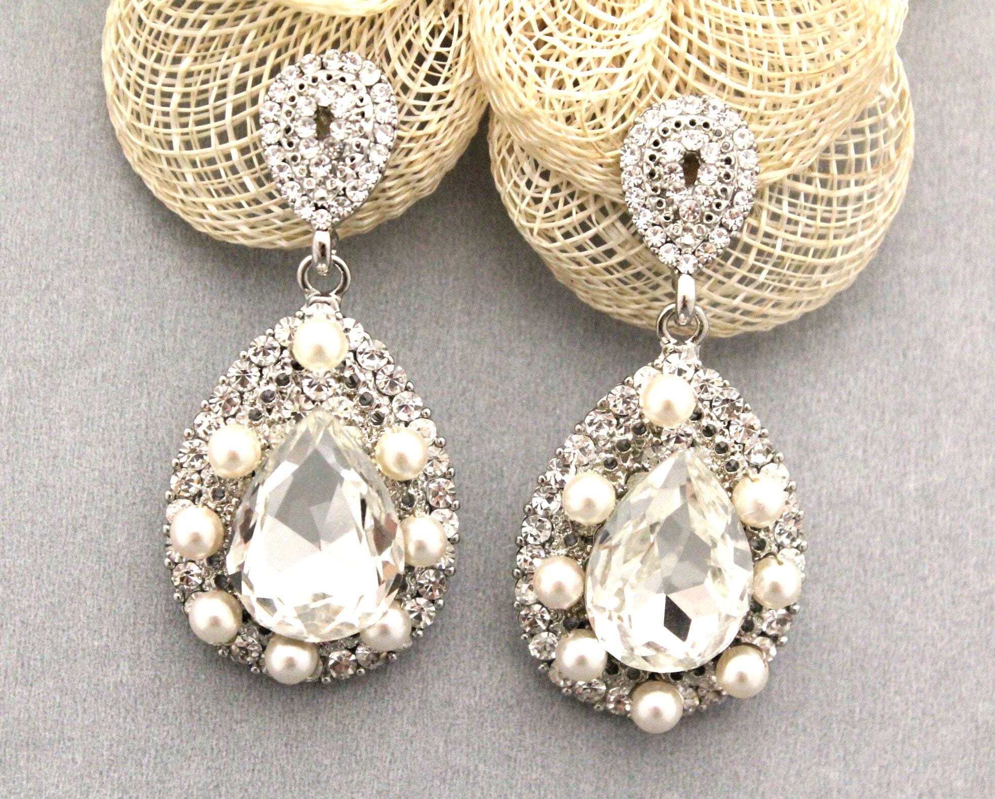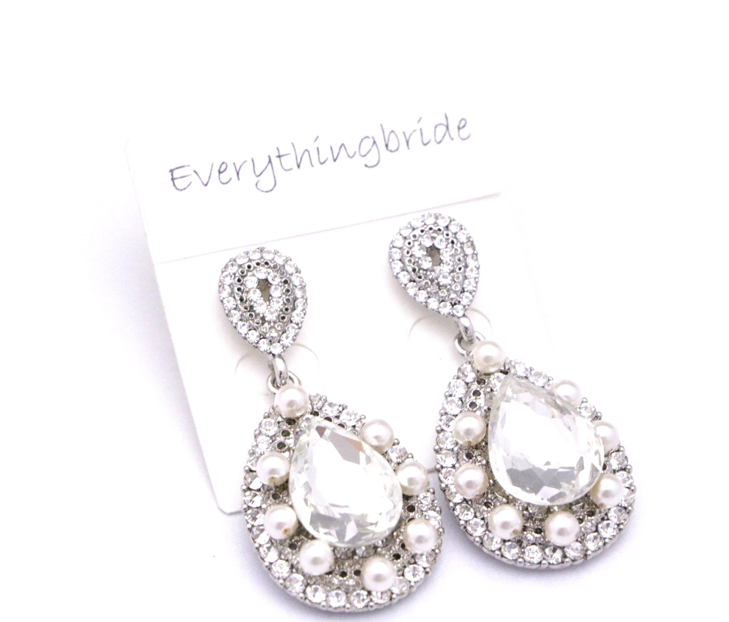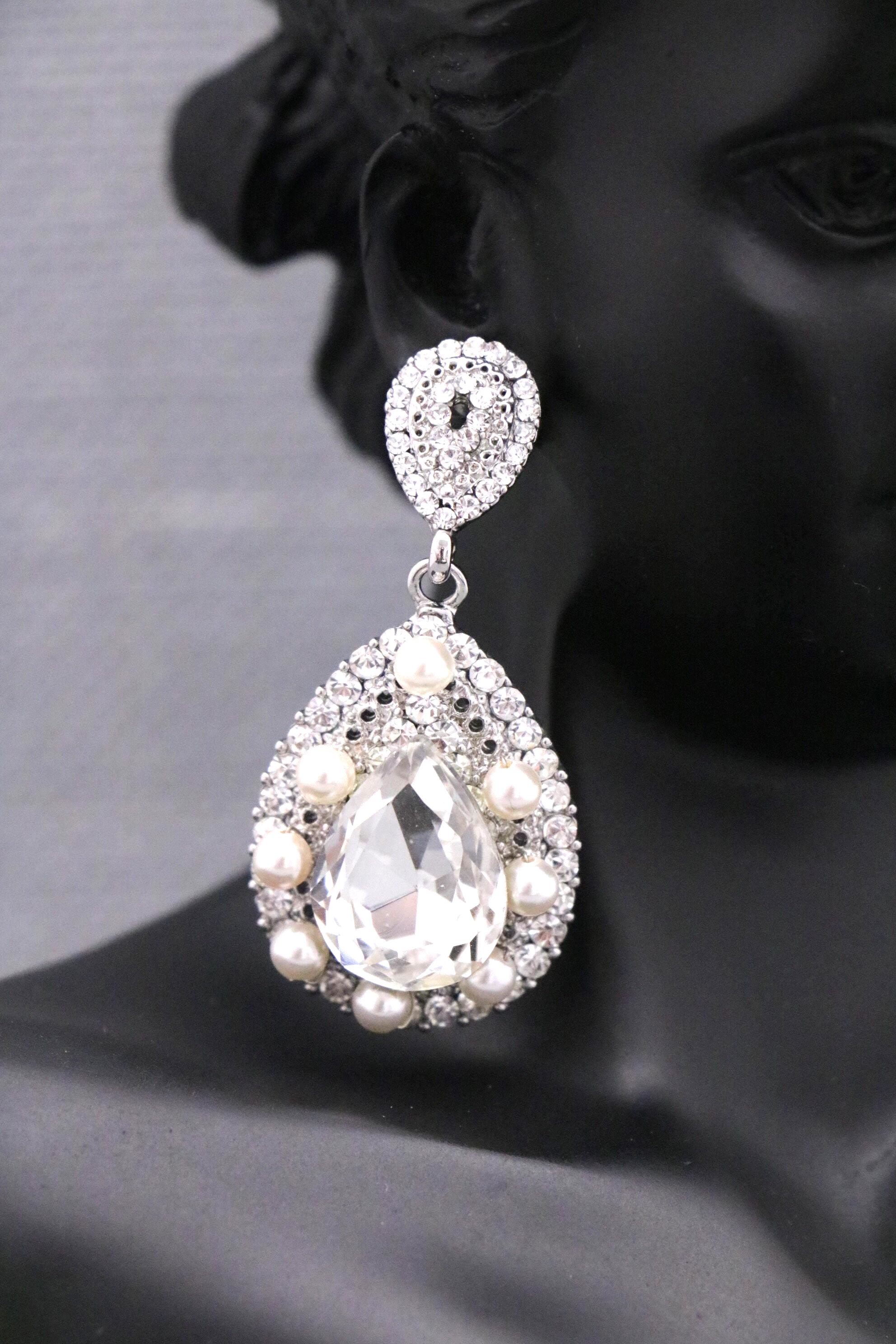 This vintage inspired stunning Pearl and Rhinestone earring is beautiful addition to your wedding day.