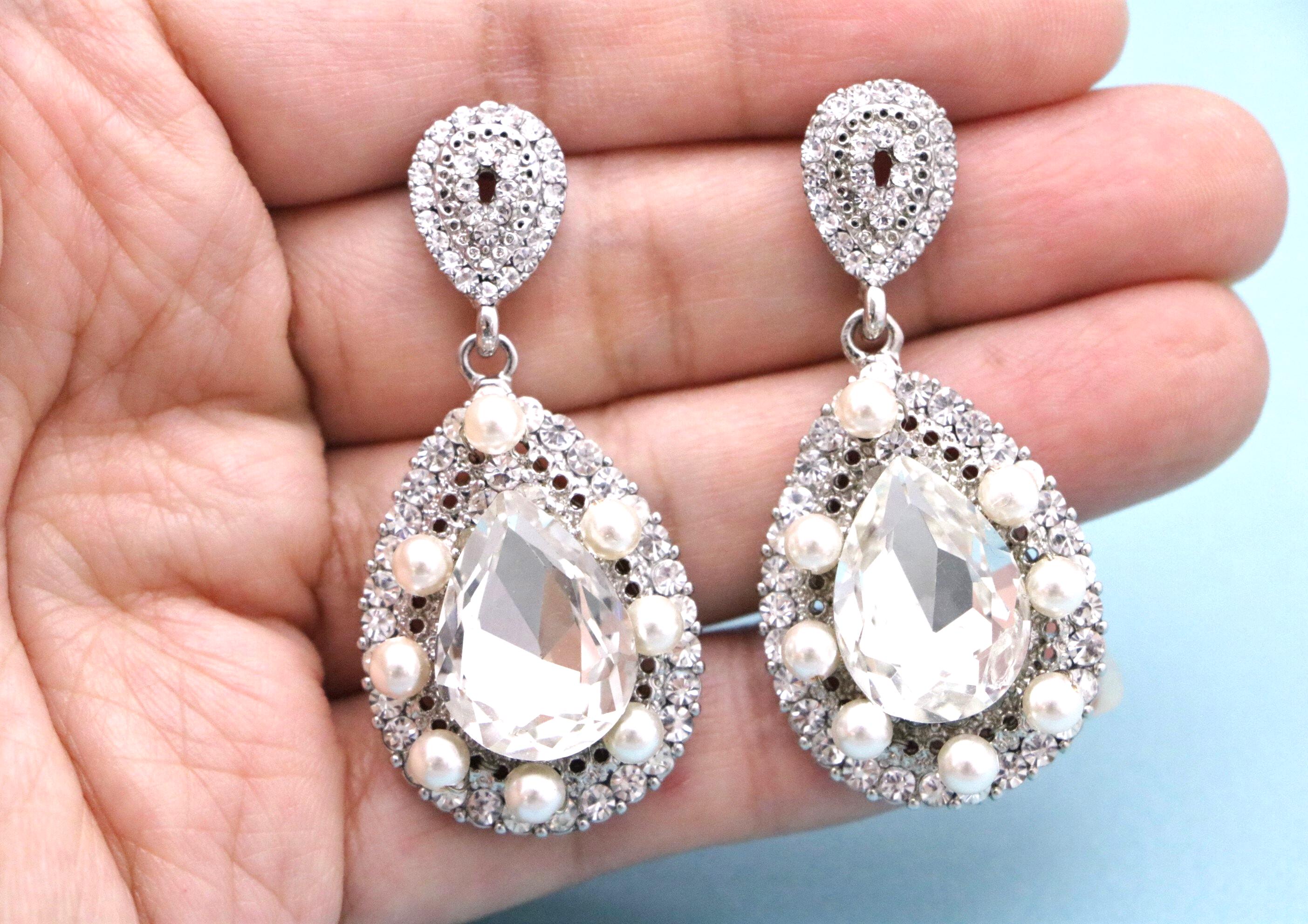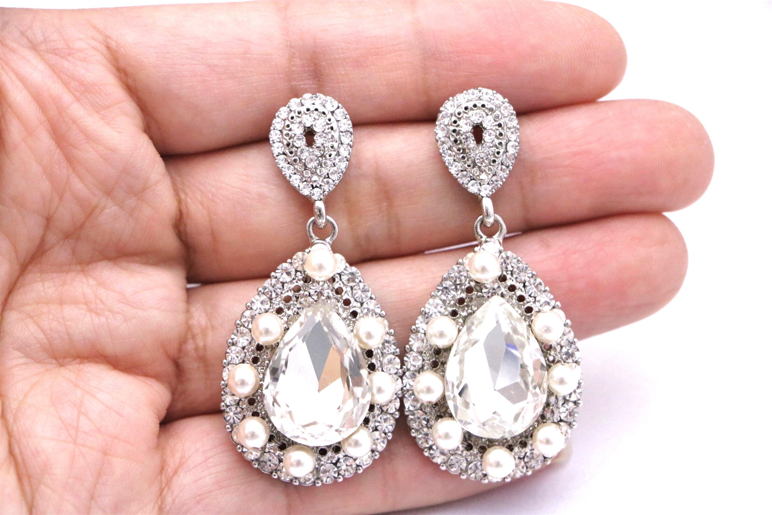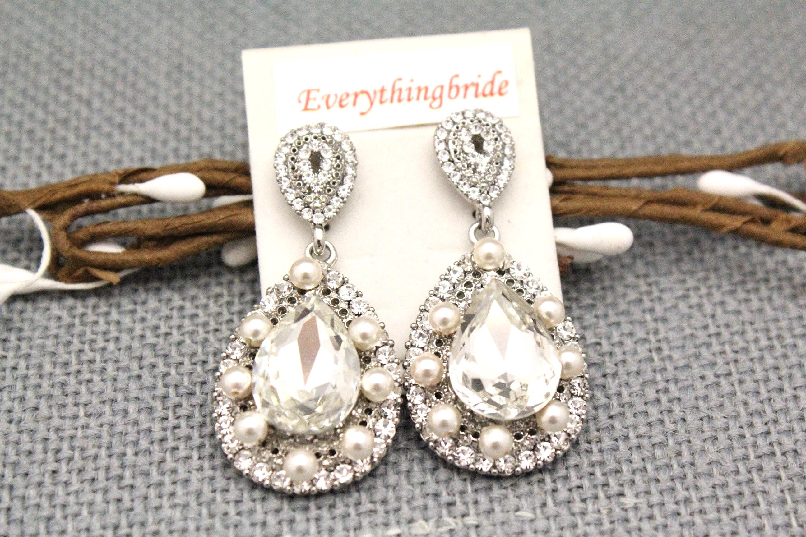 This vintage inspired stunning Pearl and Rhinestone earring is beautiful addition to your wedding day.