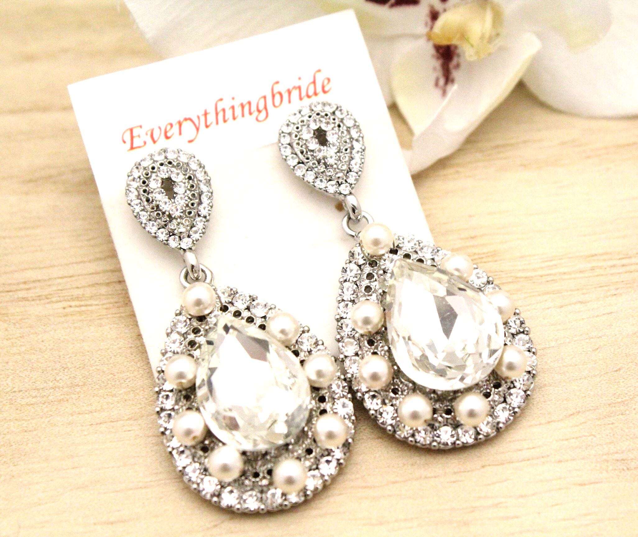 Floral Bridal Earrings,Crystal Wedding Earrings,Floral Jewelry,Crystal Jewelry,Rhinestone Earrings,Dangle Earrings, Bridal