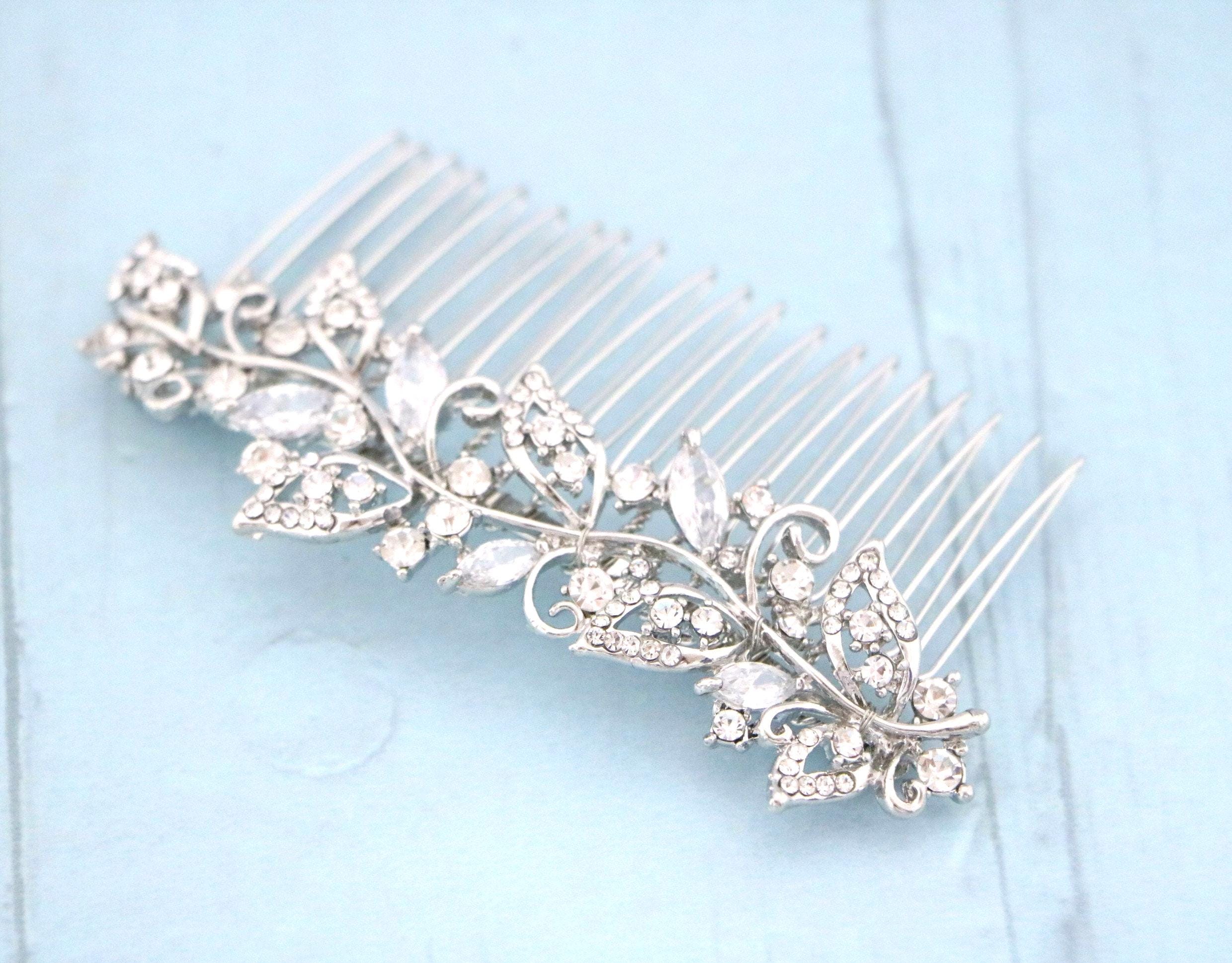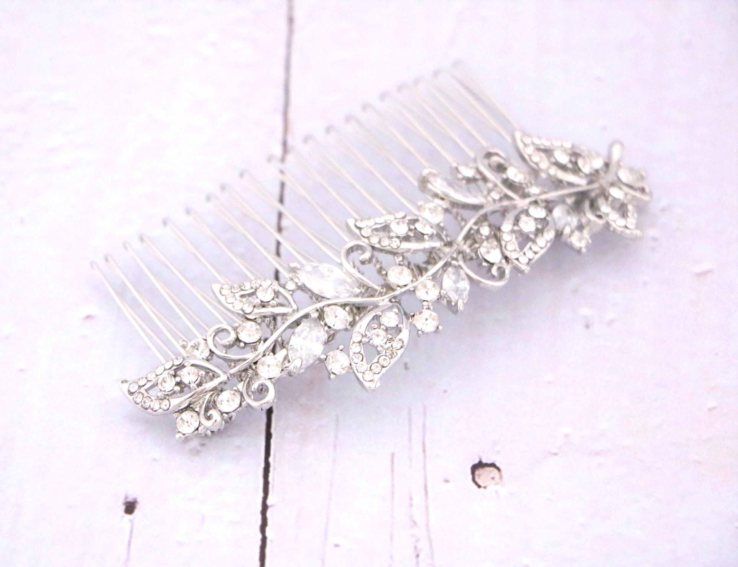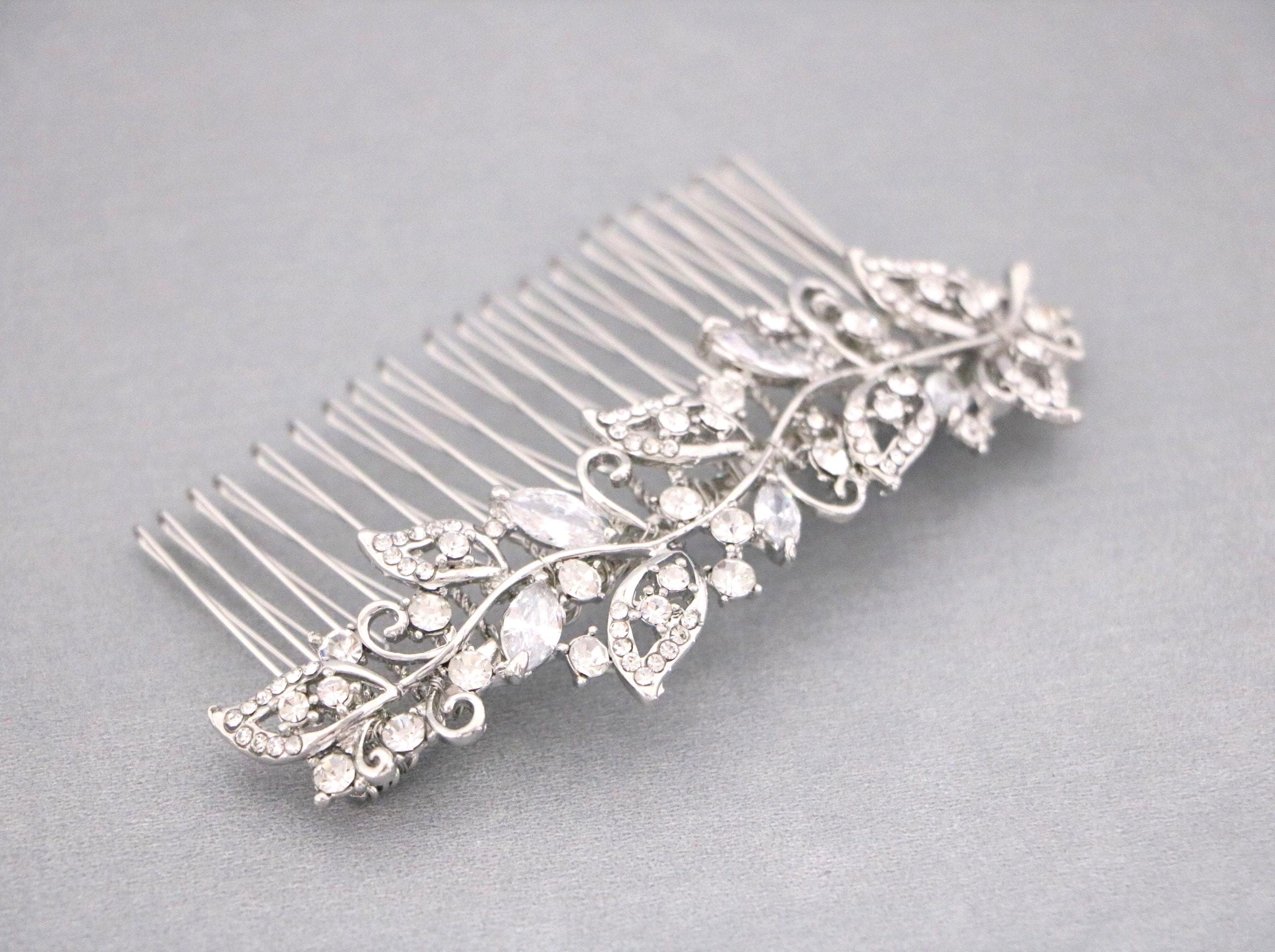 Crystal Hair Comb, Silver Wedding Hair Comb, Bridal Rhinestones Comb, Leaf Hair Comb, Bridesmaids Hair Piece, Wedding Hair Accessory